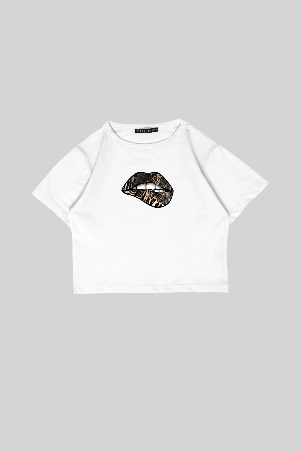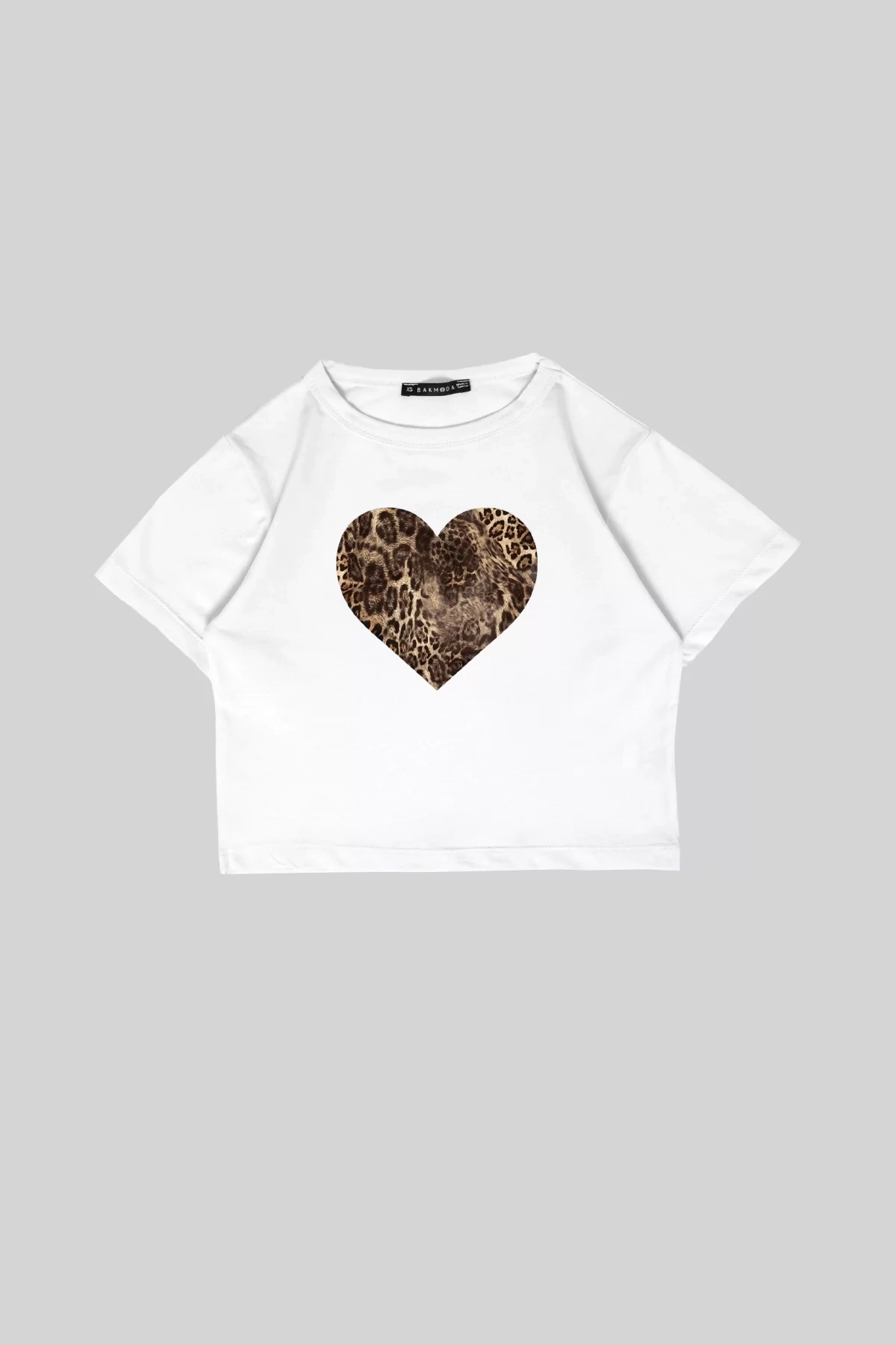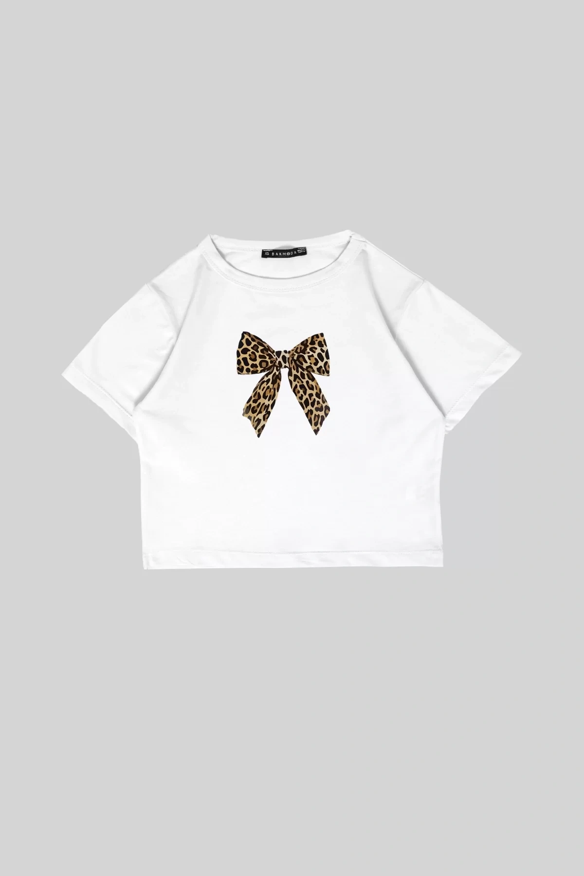 Fiyonk Leopar Baskılı Beyaz Crop Top