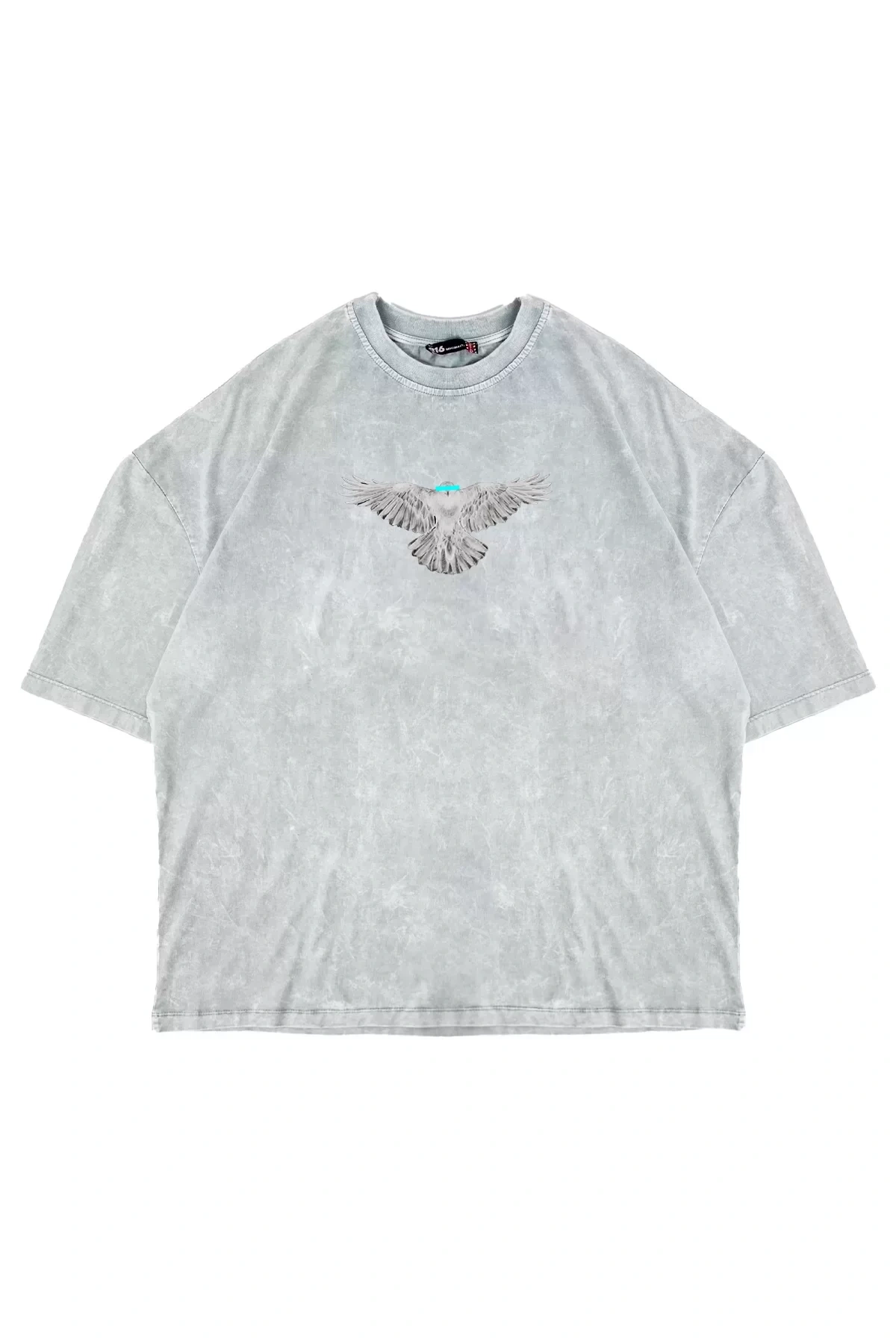 Defensive Crow Baskılı Premium Oversize Unisex Yıkamalı Beyaz Tshirt