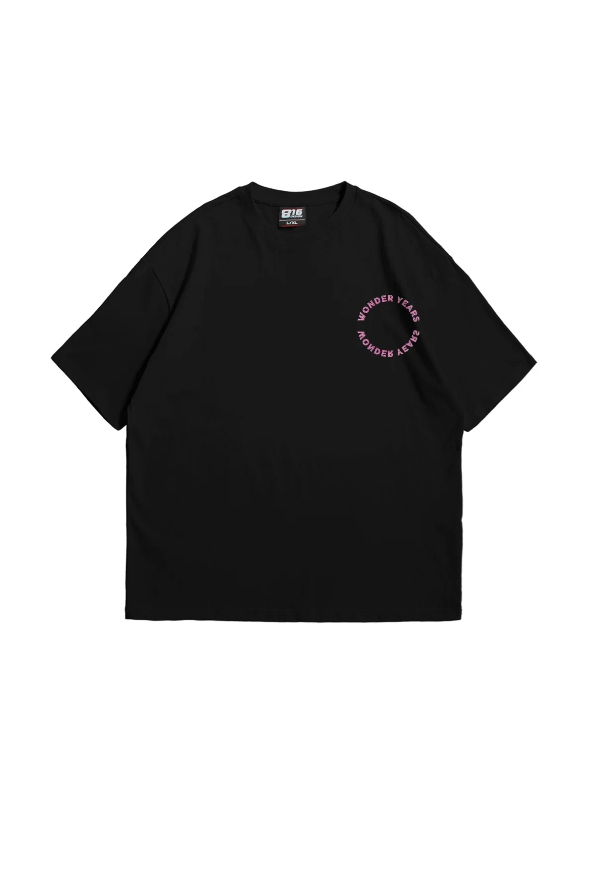Wonder Years Baskılı Premium Oversize Unisex Yıkamalı Siyah Tshirt