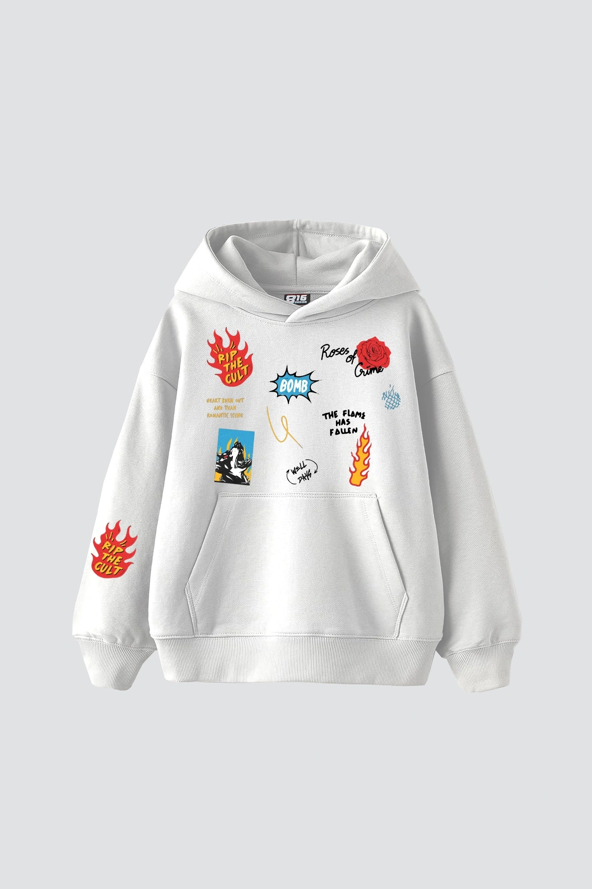 Karma Cult Baskılı Oversize Unisex Premium Beyaz Hoodie