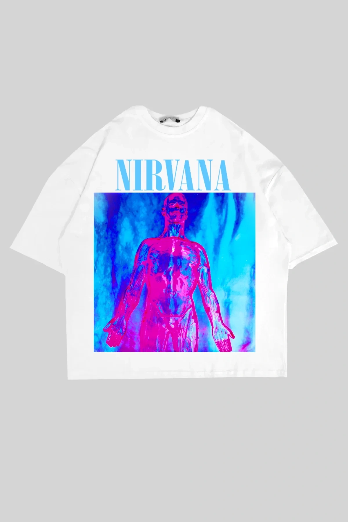 Nirvana Sliver Baskılı Beyaz Oversize Unisex Tshirt
