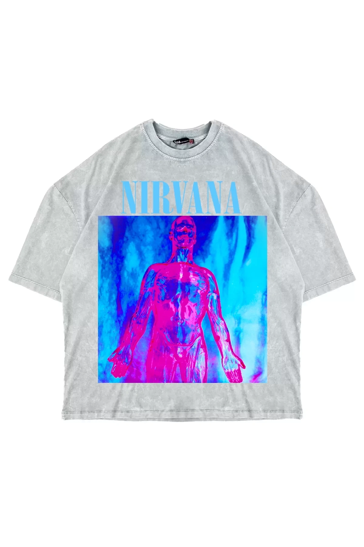 Nirvana Sliver Baskılı Yıkamalı Beyaz Oversize Unisex Tshirt
