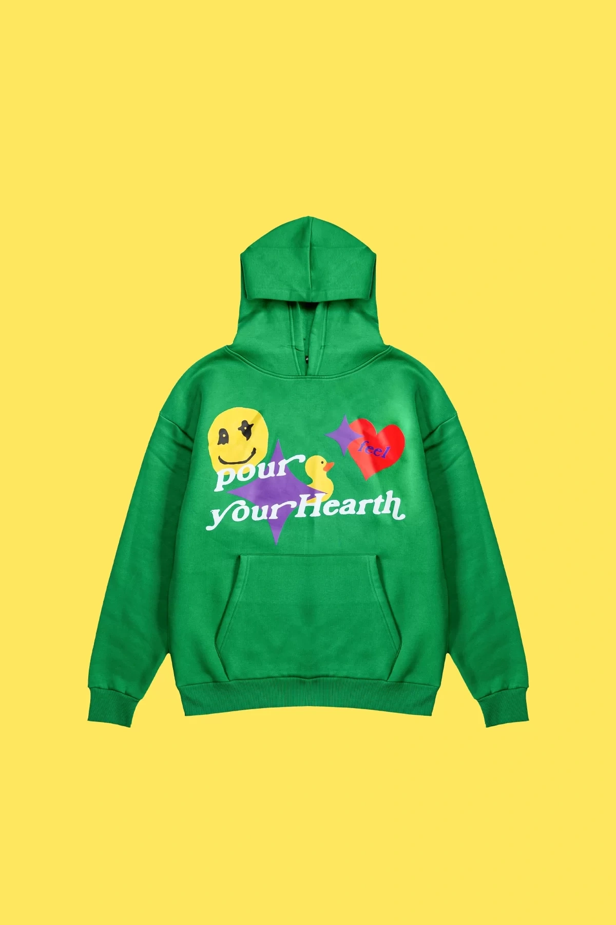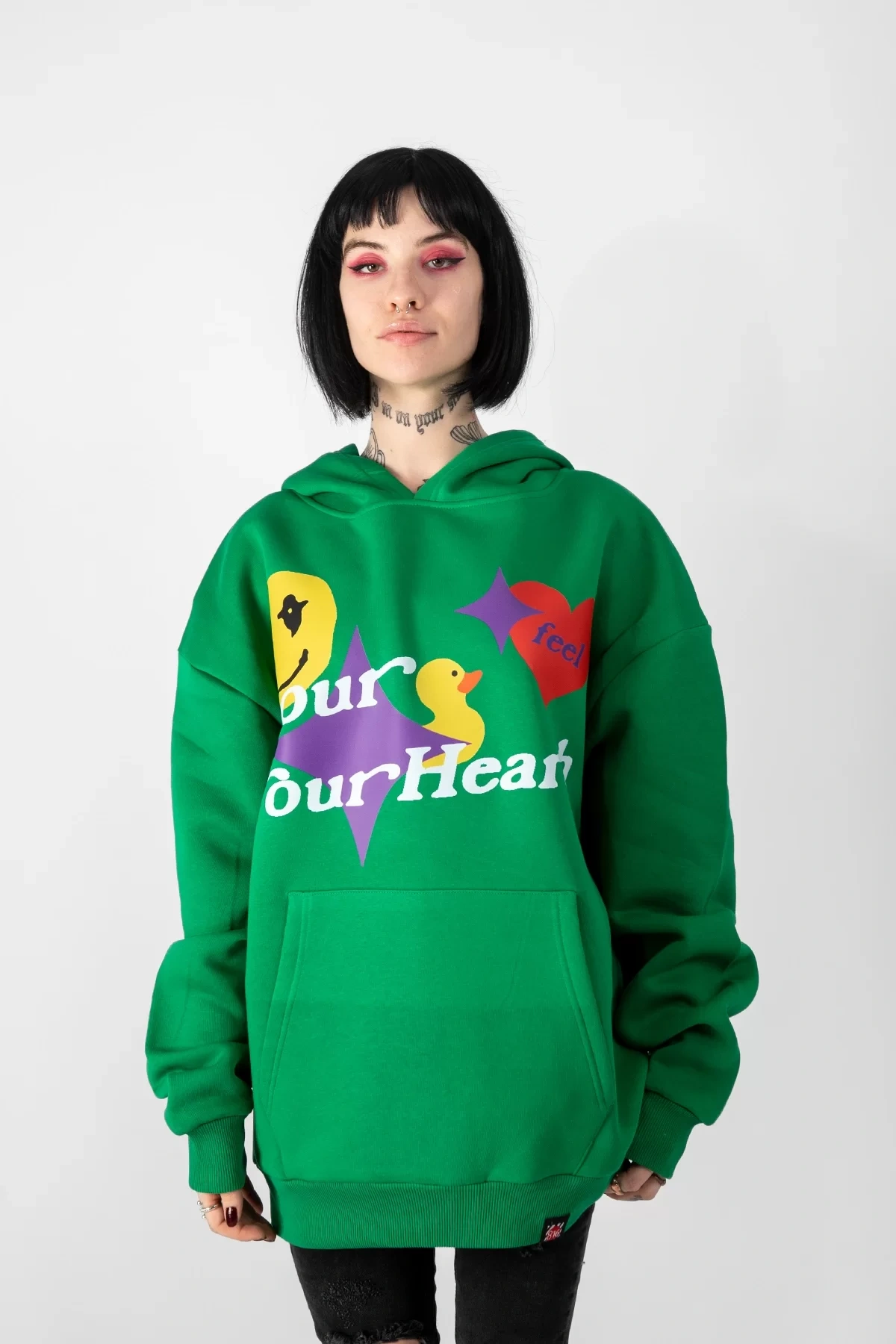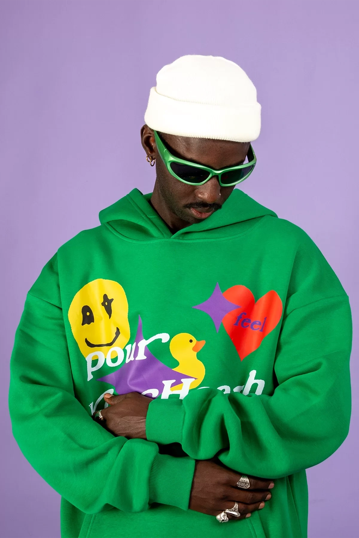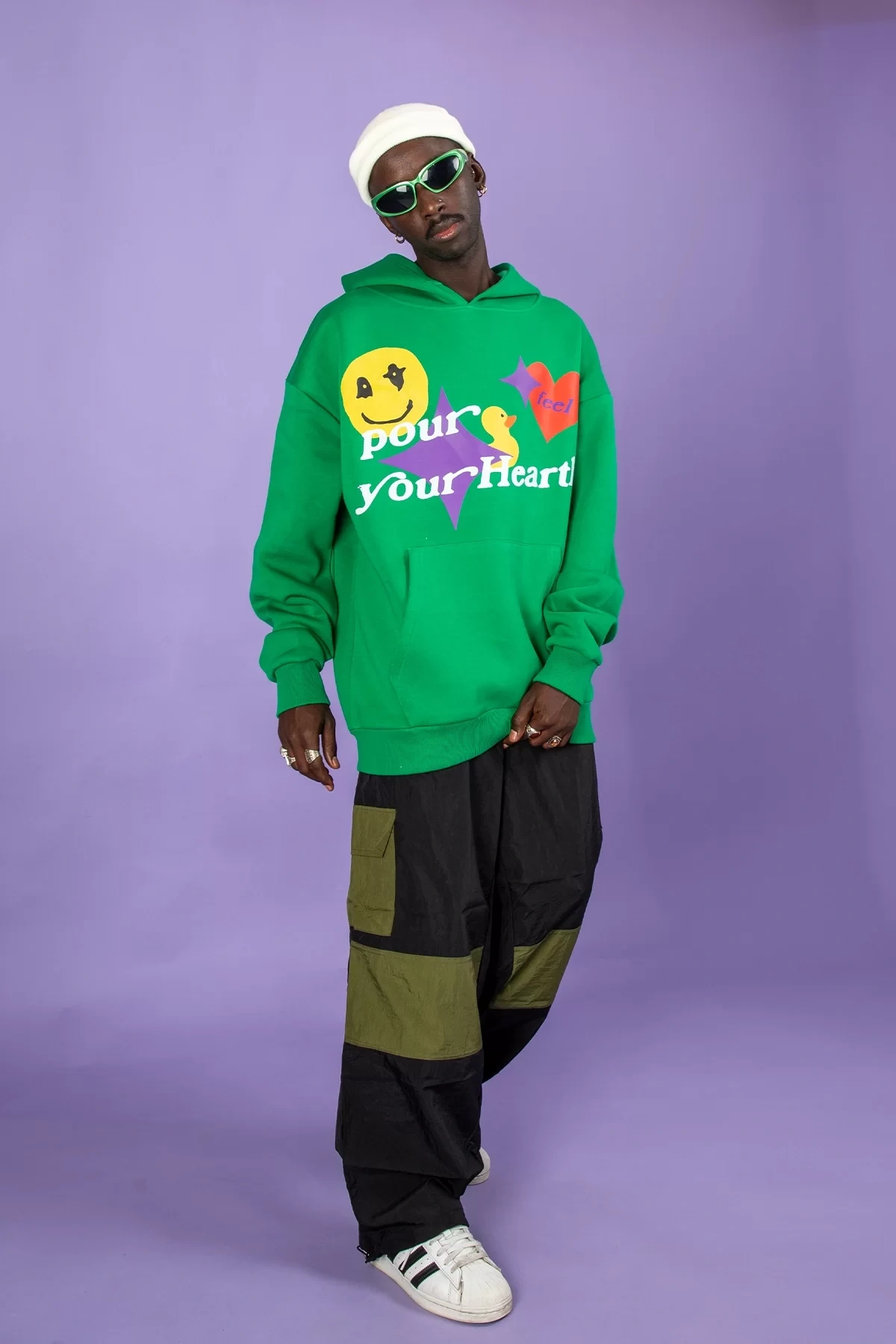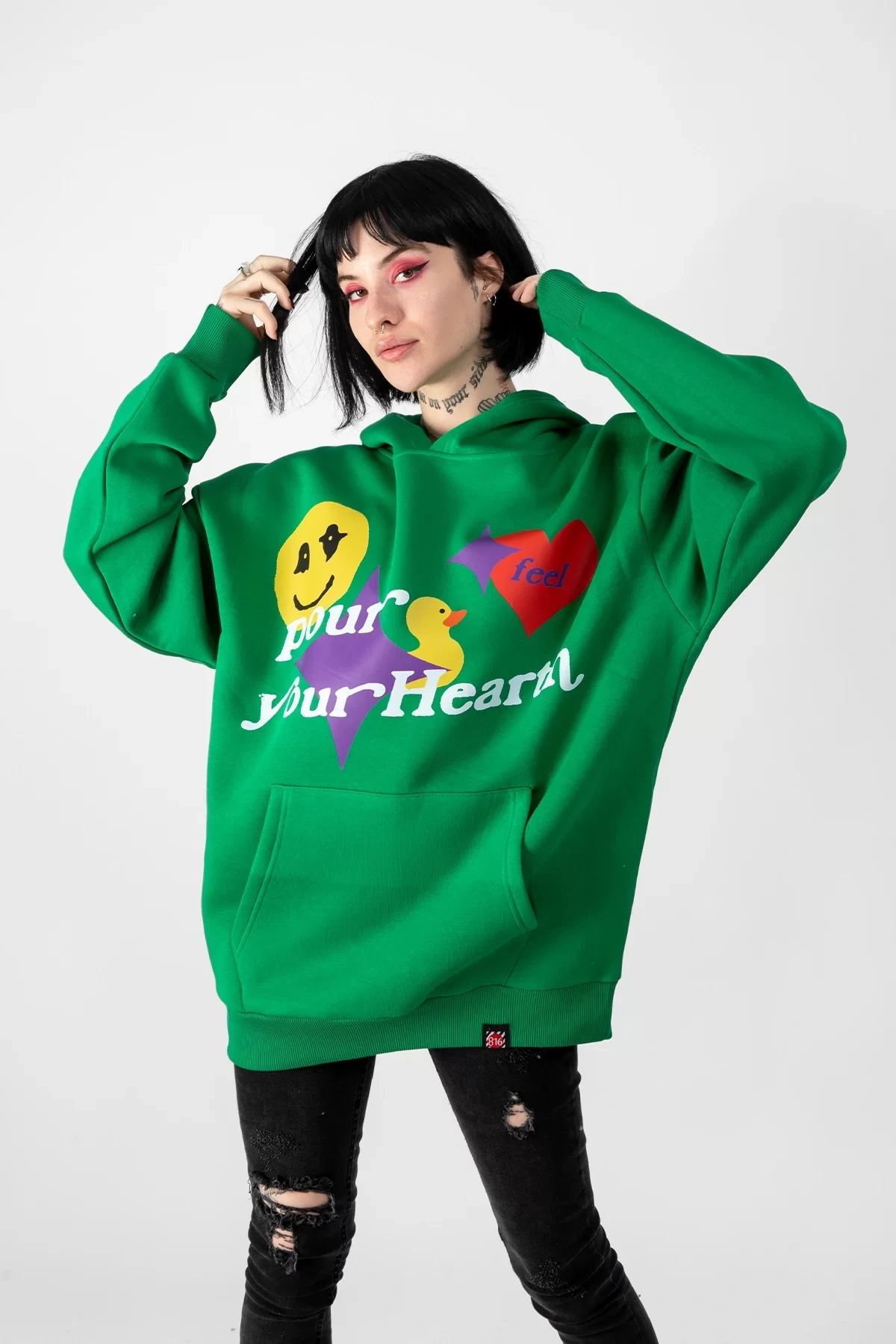 Pour Hearth Baskılı Oversize Unisex Yeşil Hoodie