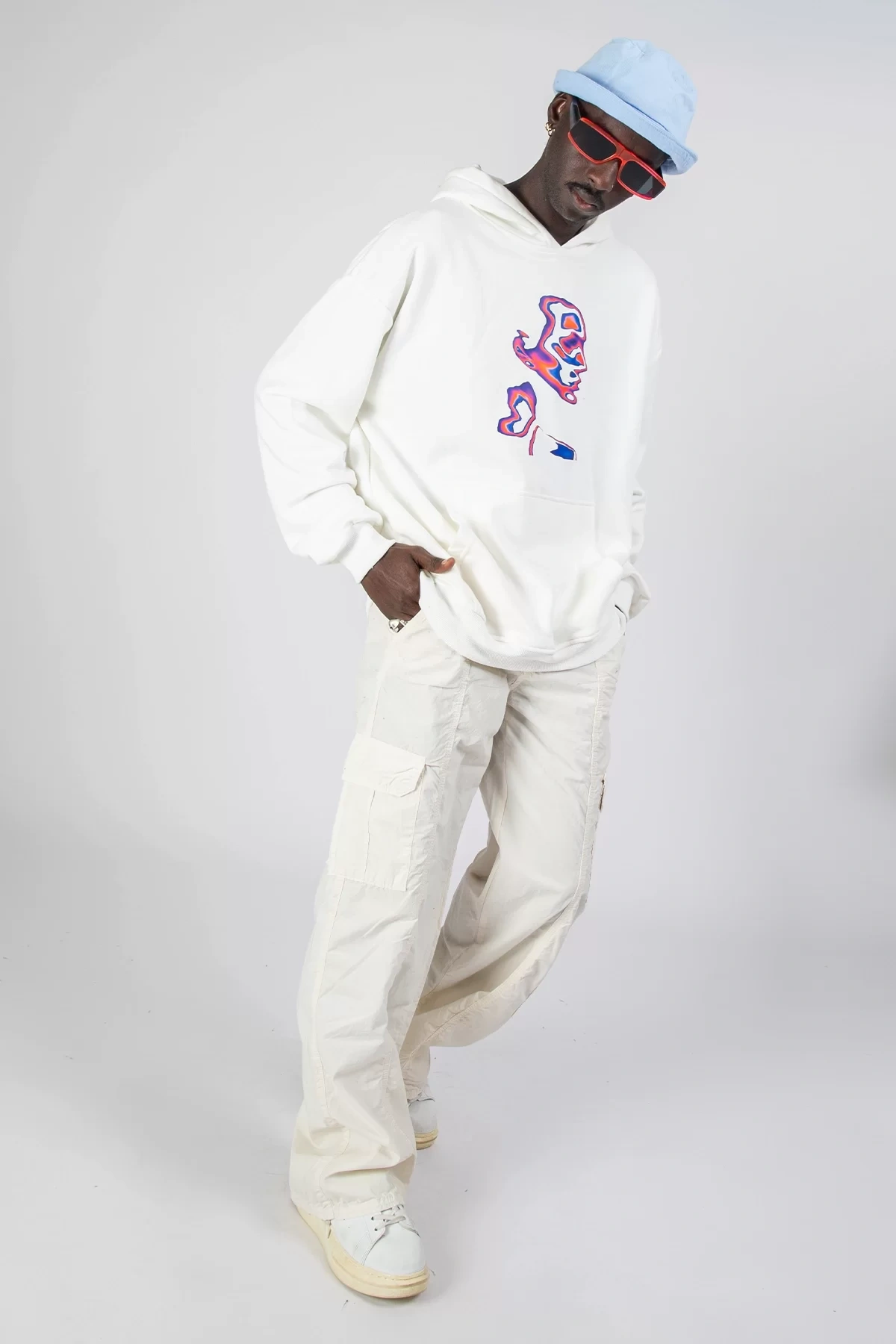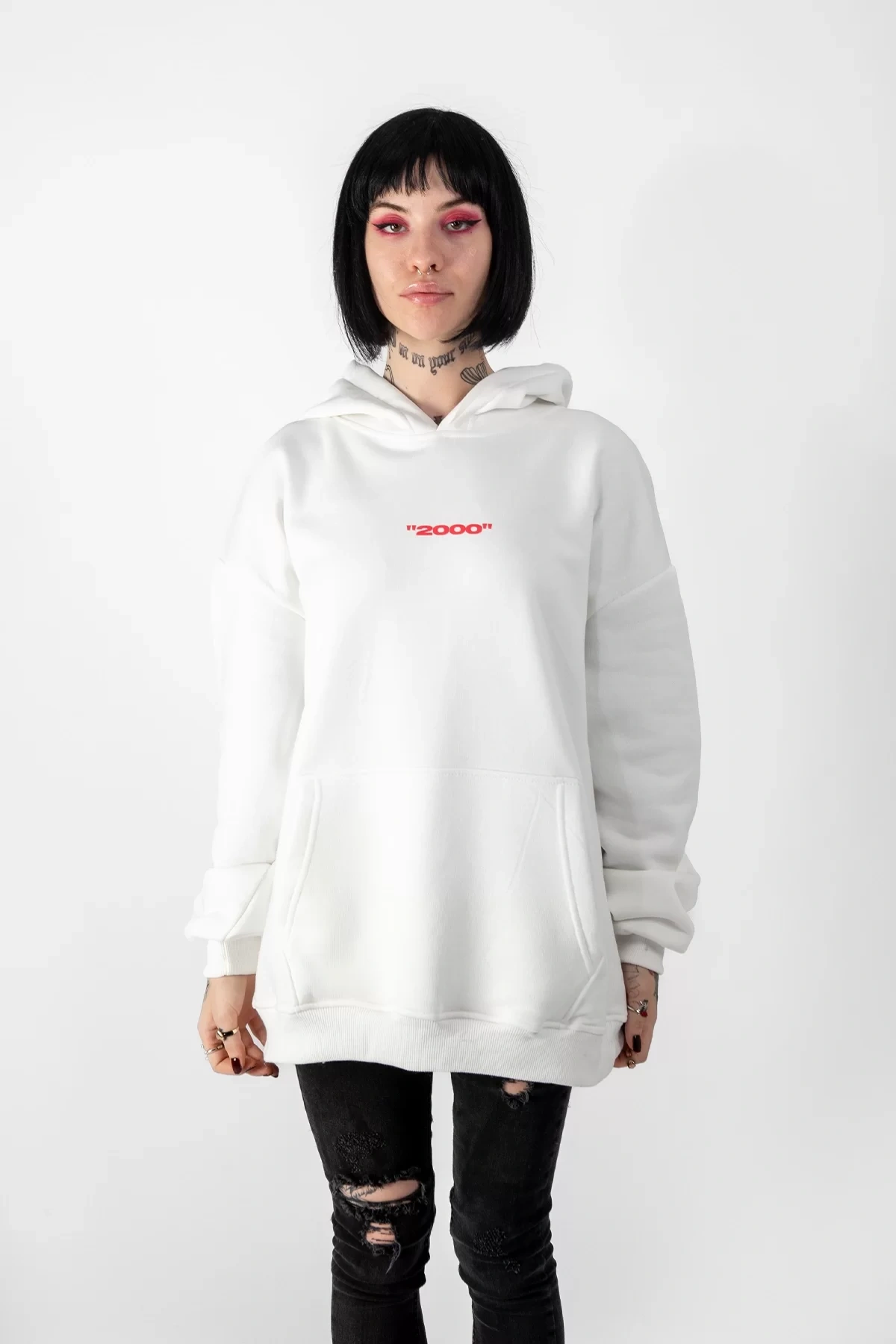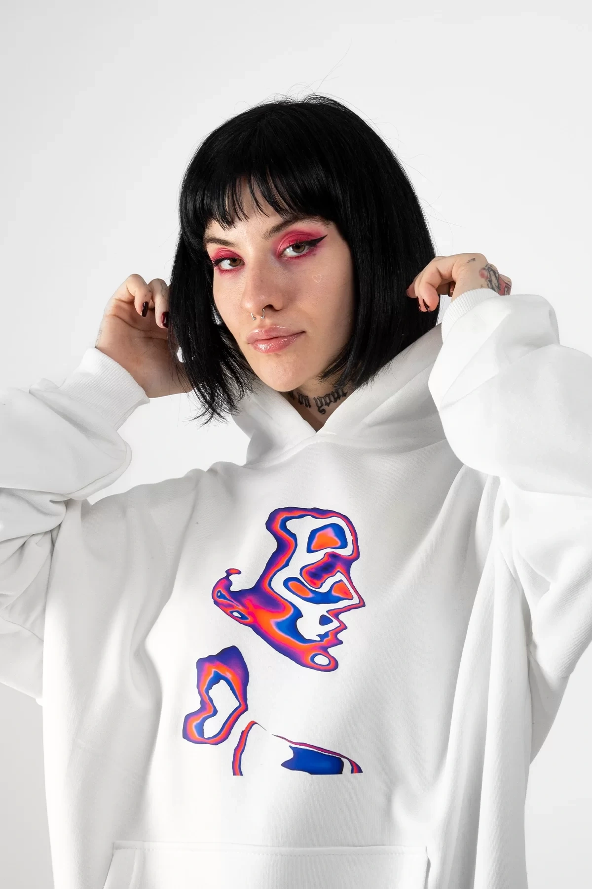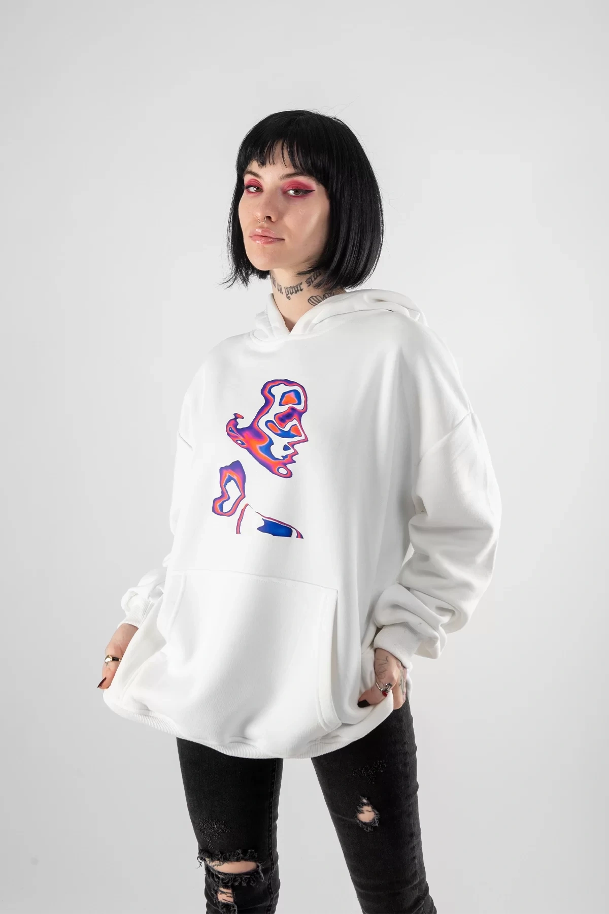 İllusion Woman Baskılı Oversize Unisex Beyaz Hoodie