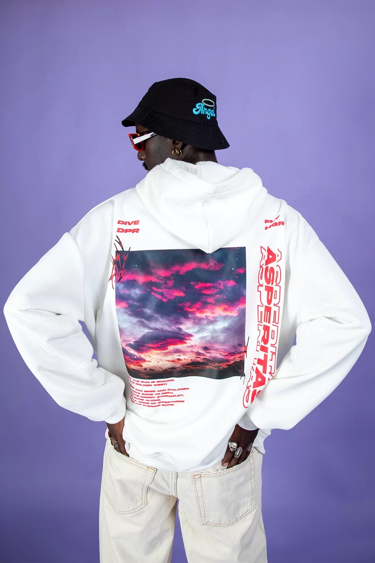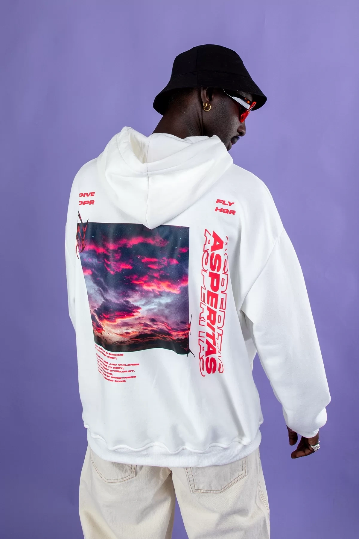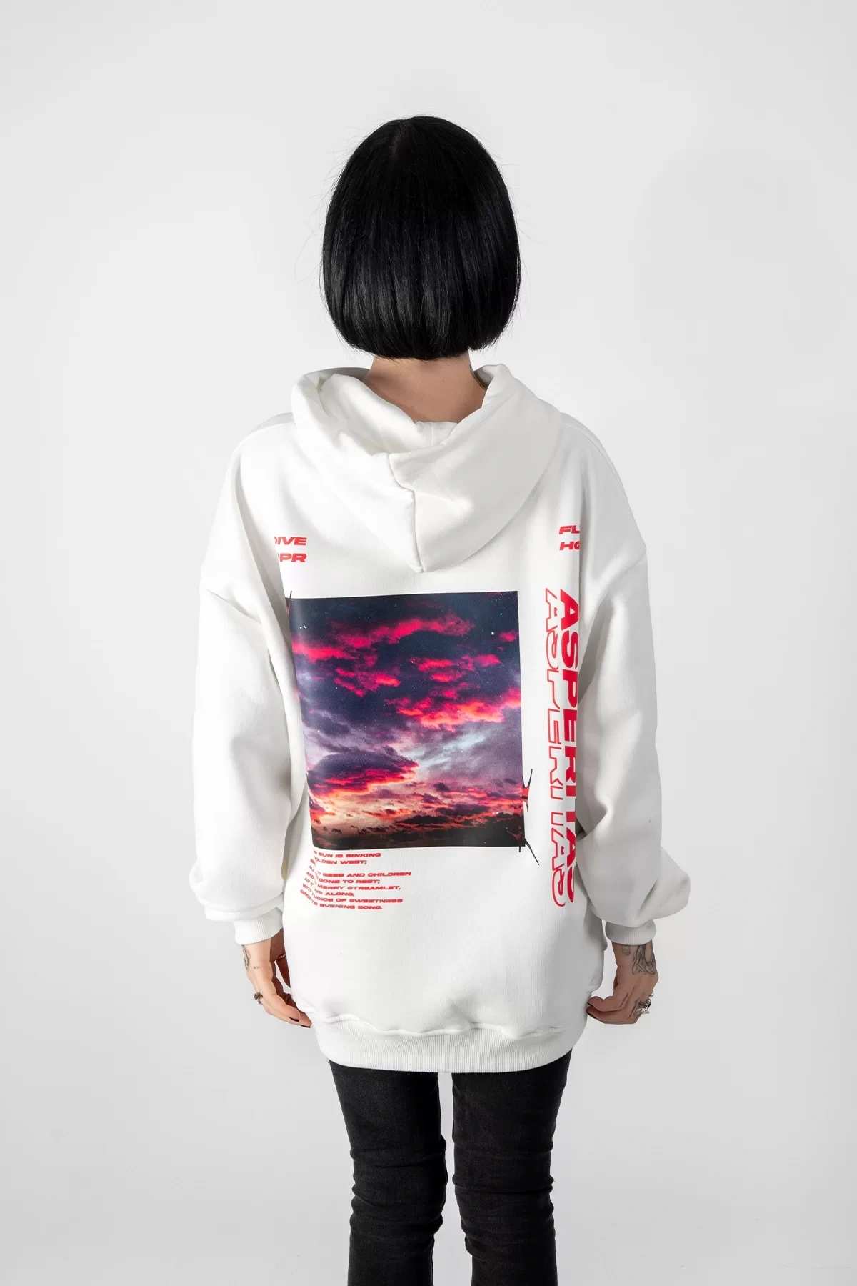 Asperitas Sırt Baskılı Oversize Unisex Beyaz Hoodie