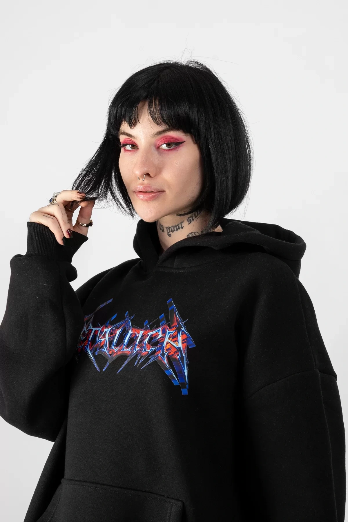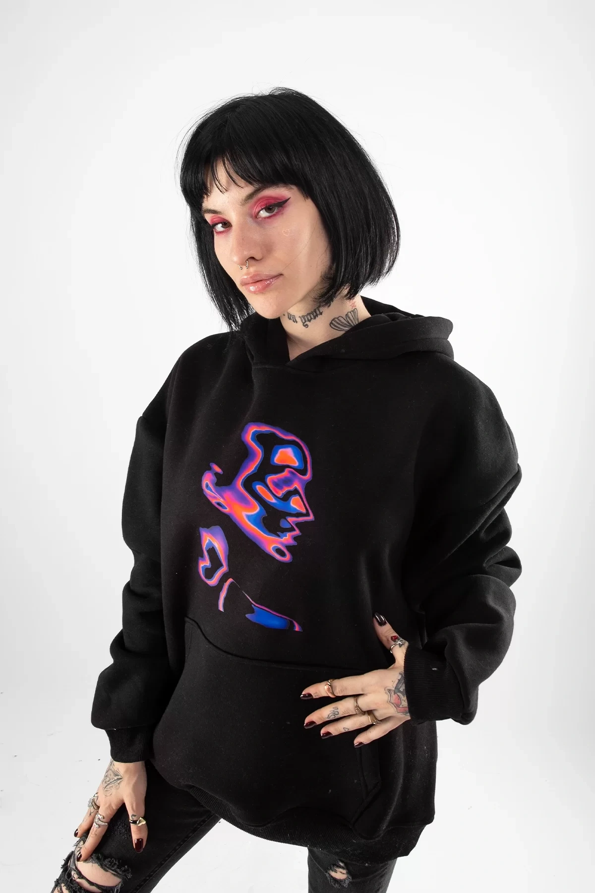 İllusion Woman Baskılı Oversize Unisex Siyah Hoodie