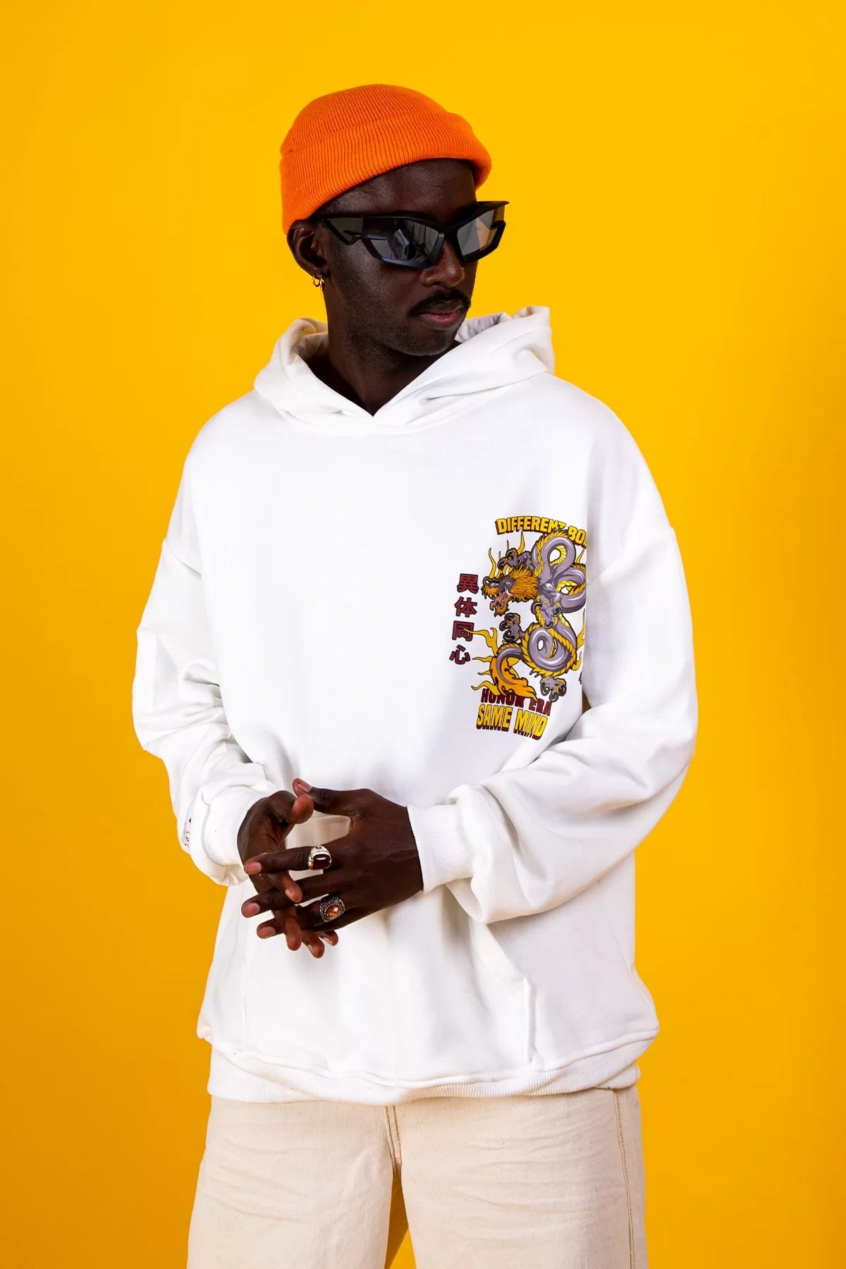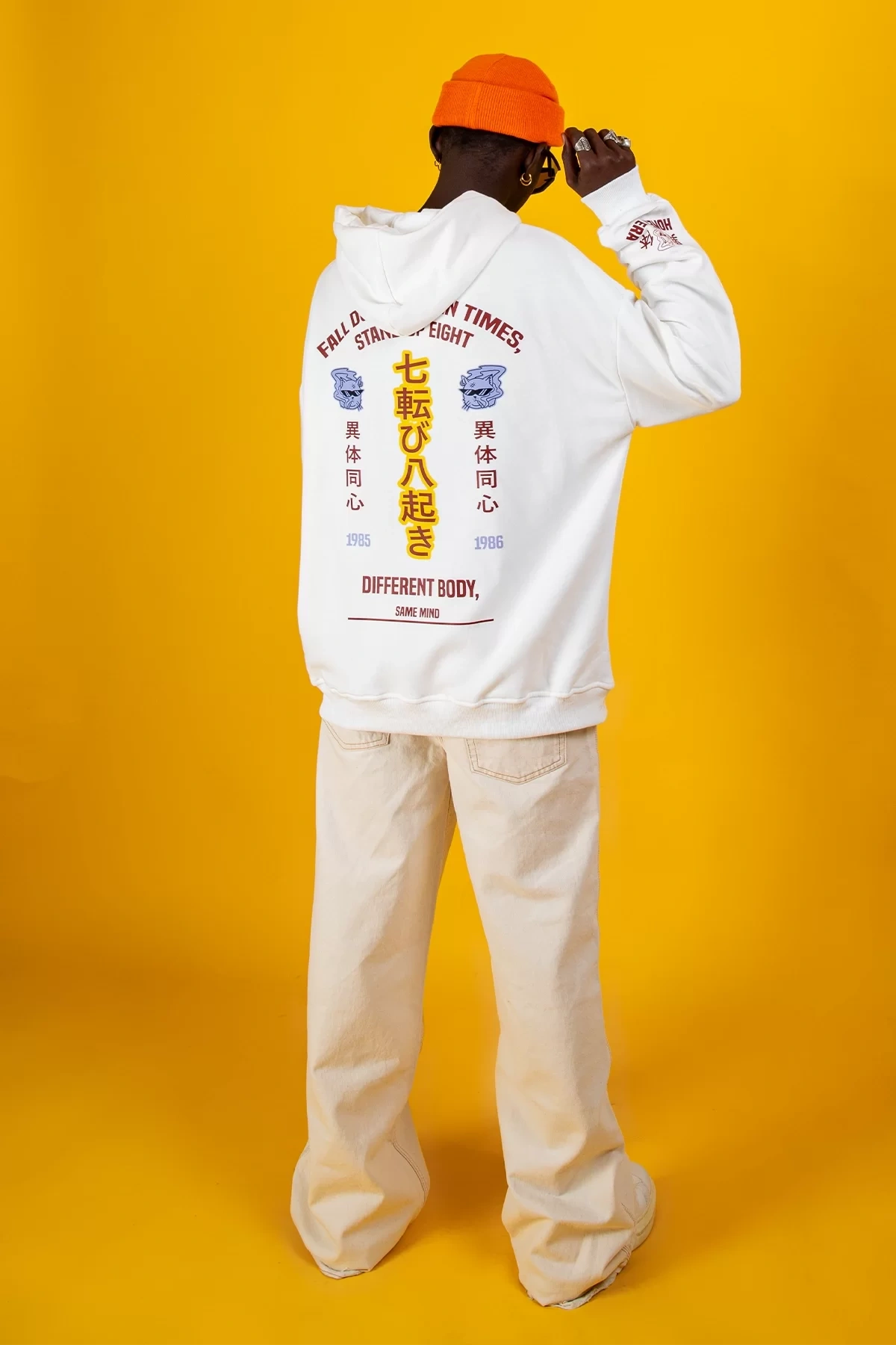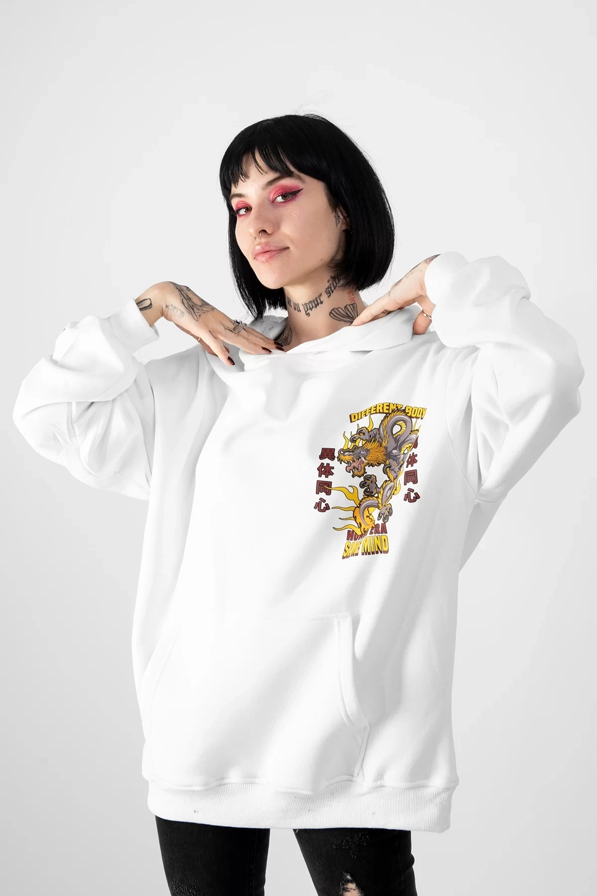 Diffrent Body Sırt Baskılı Oversize Unisex Beyaz Hoodie