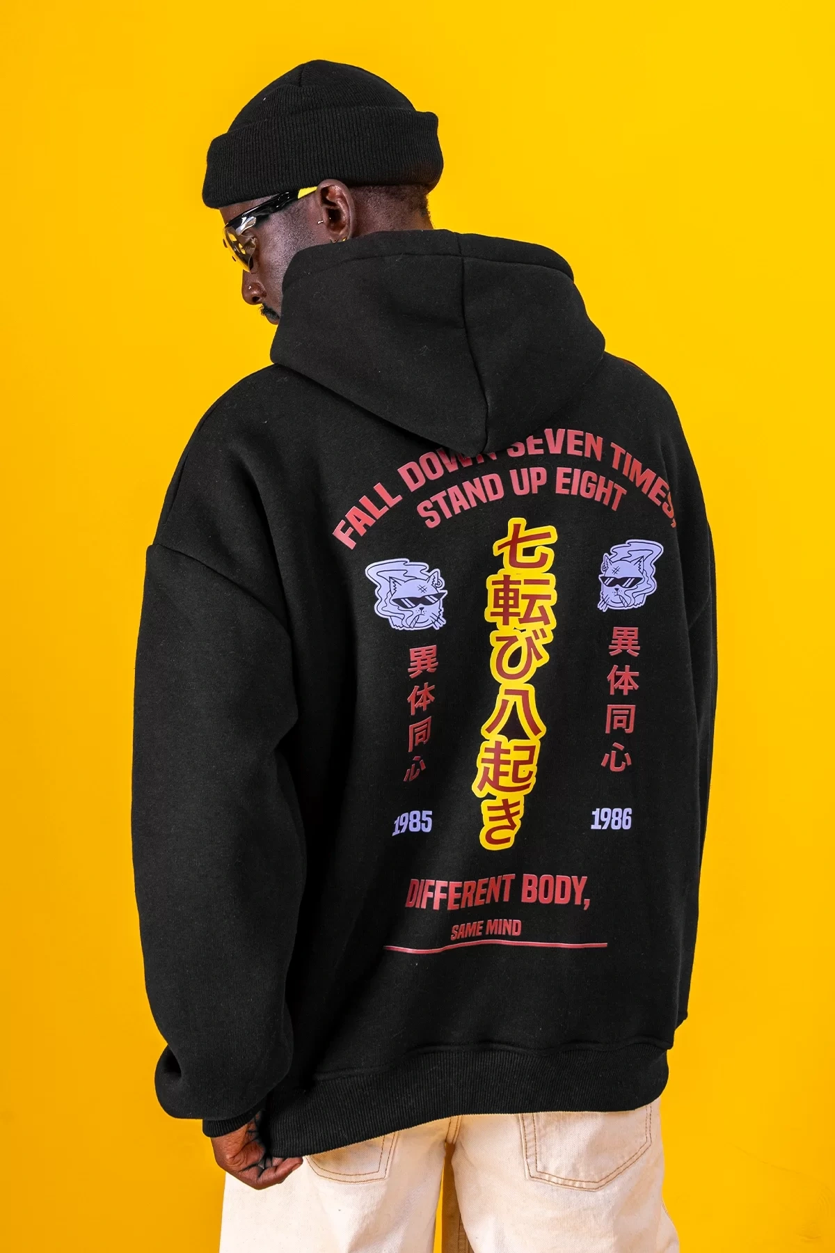 Diffrent Body Sırt Baskılı Oversize Unisex Siyah Hoodie