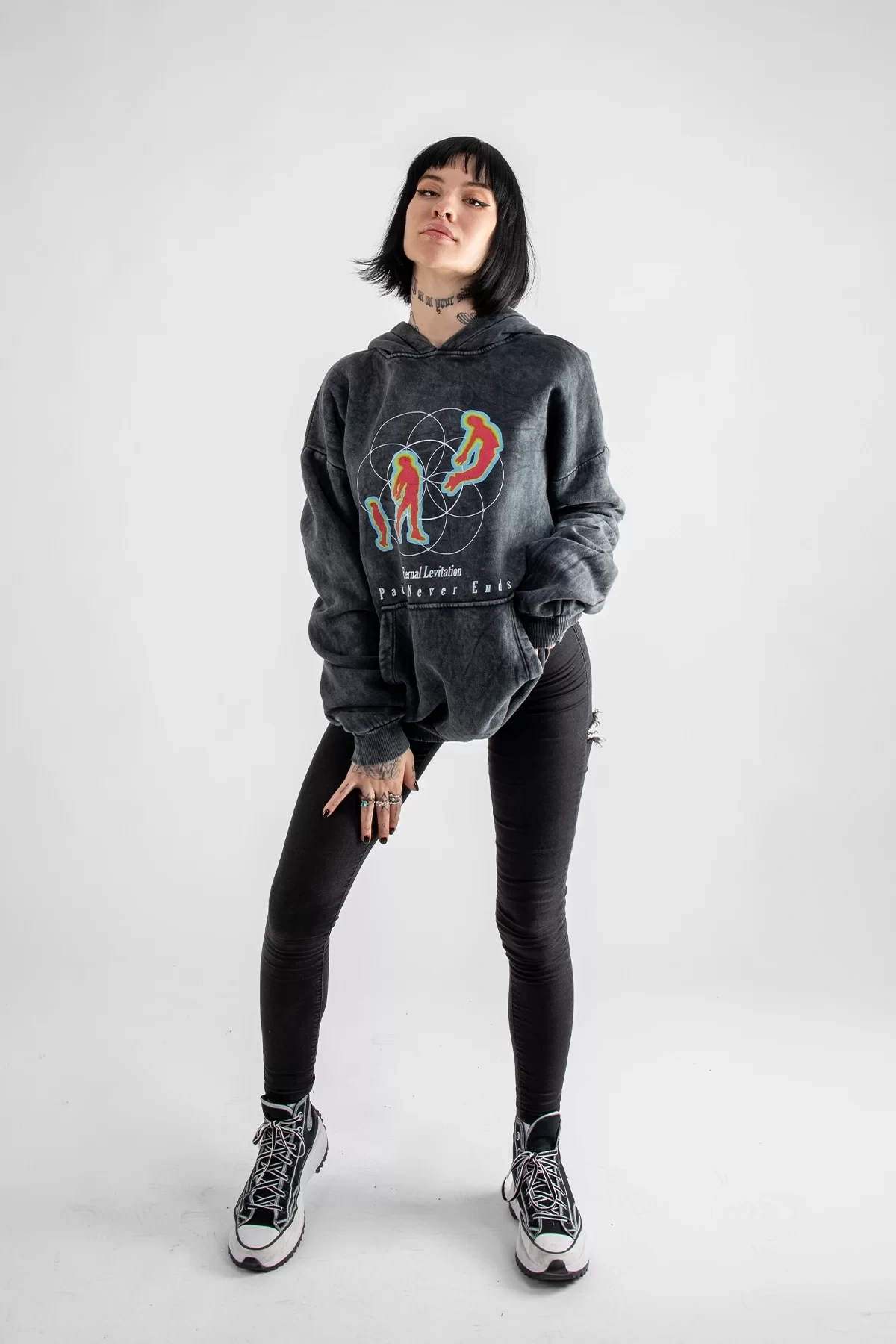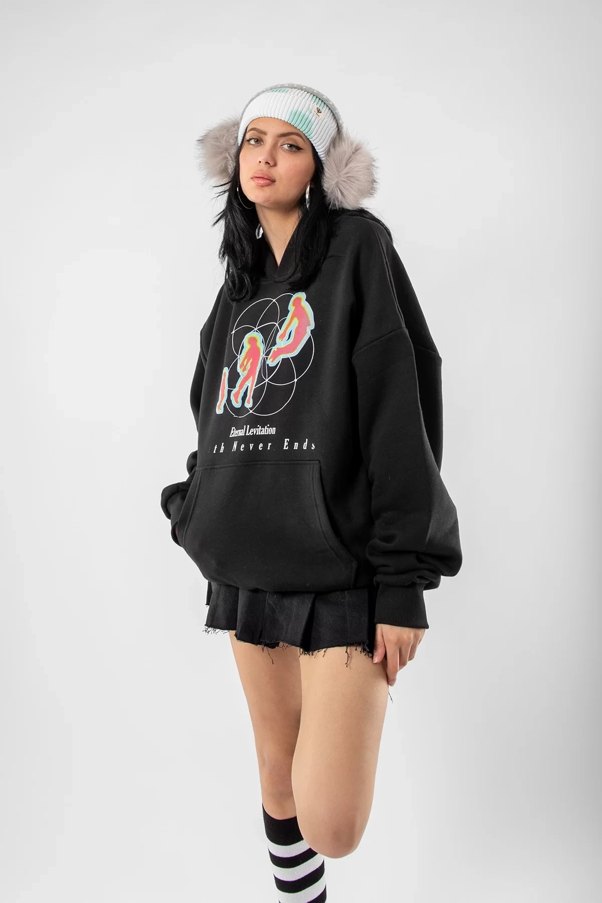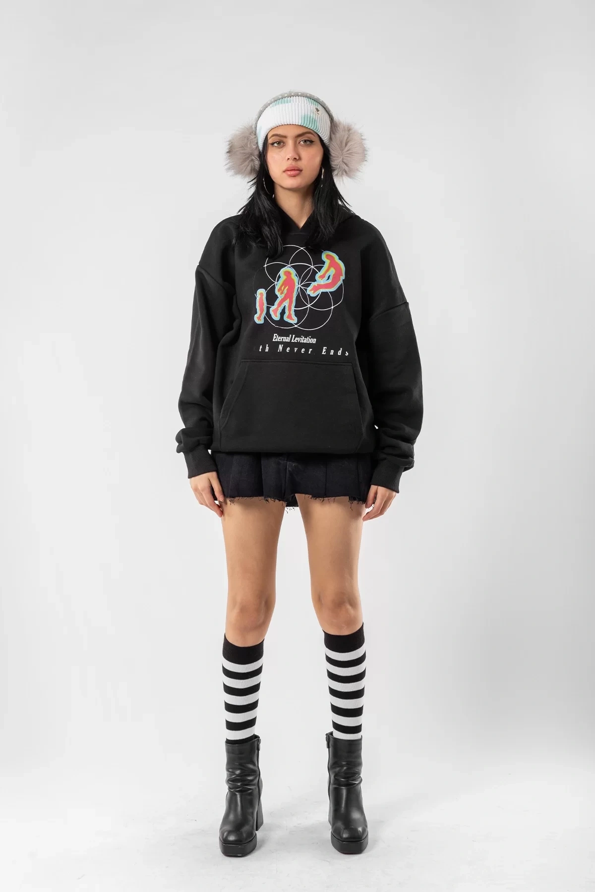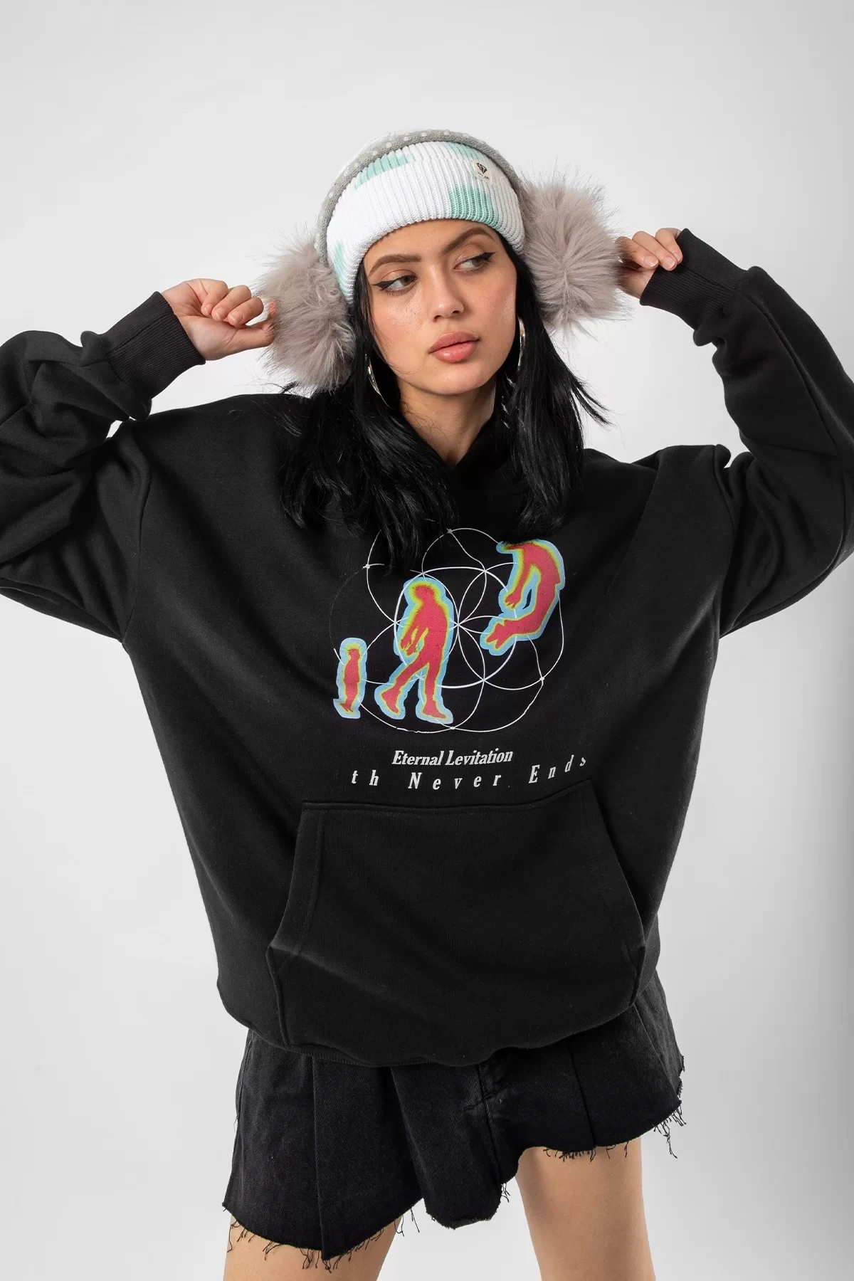 Eternal Levitation Baskılı Oversize Unisex Siyah Hoodie
