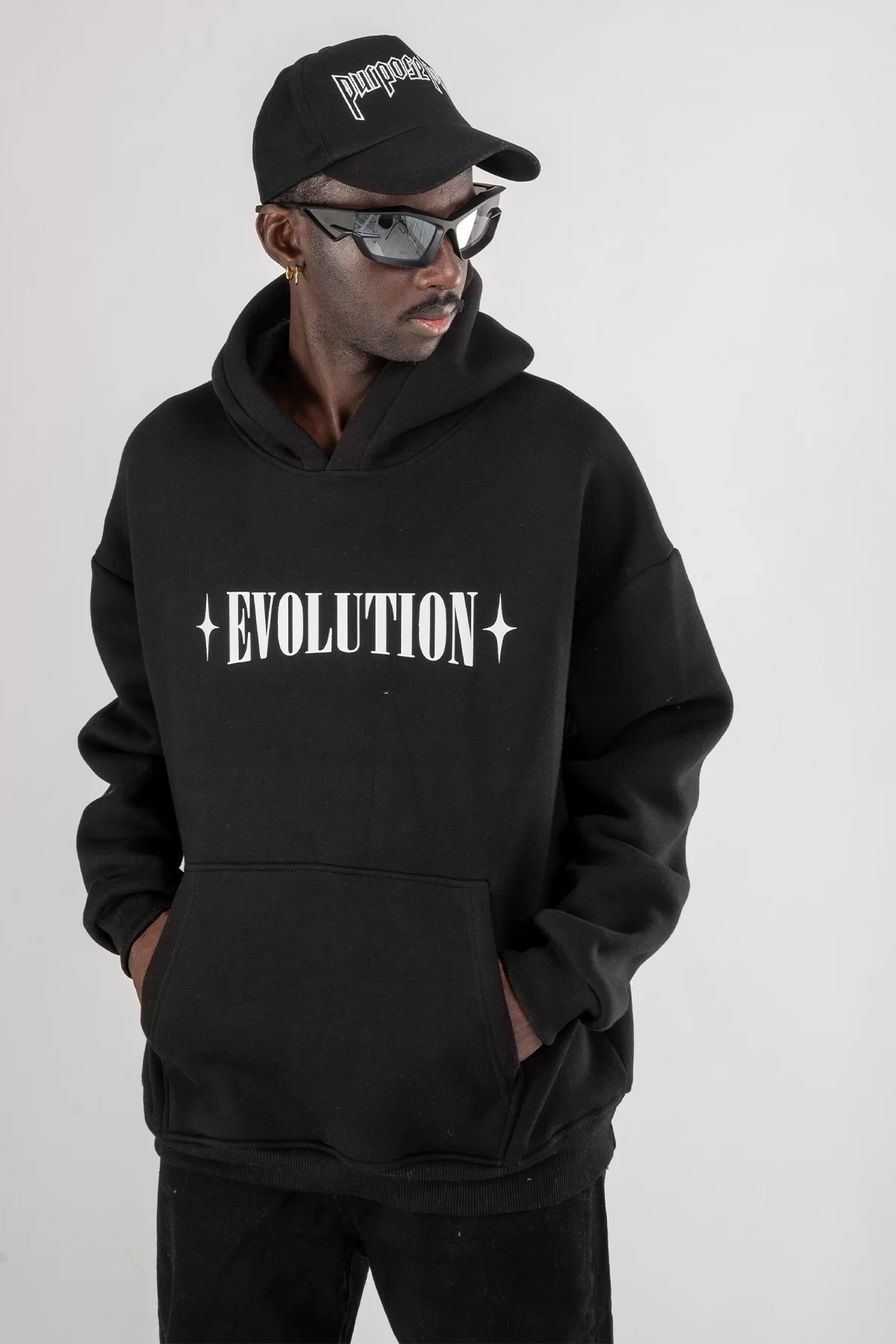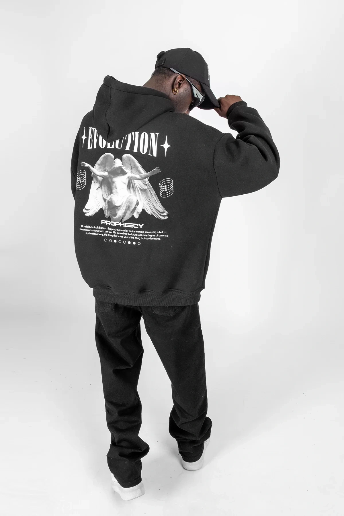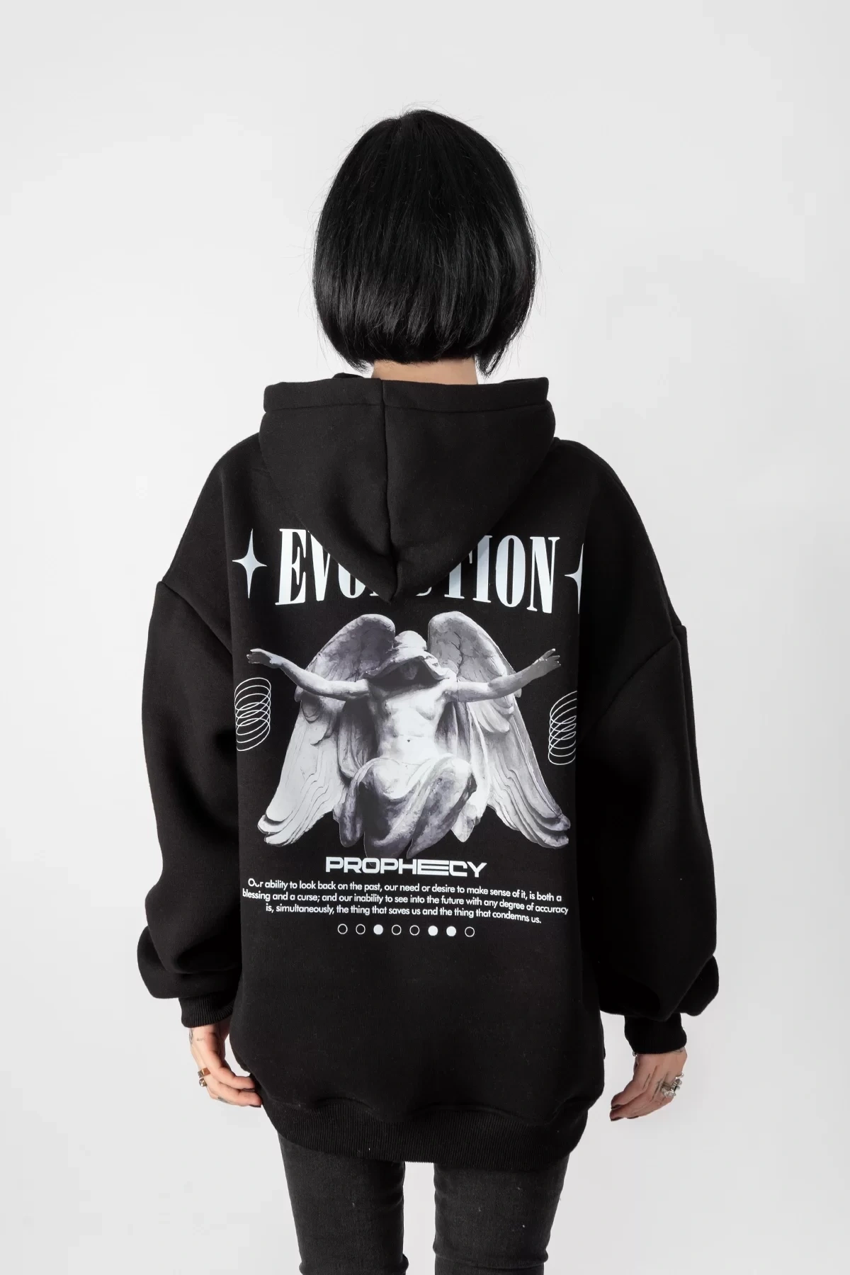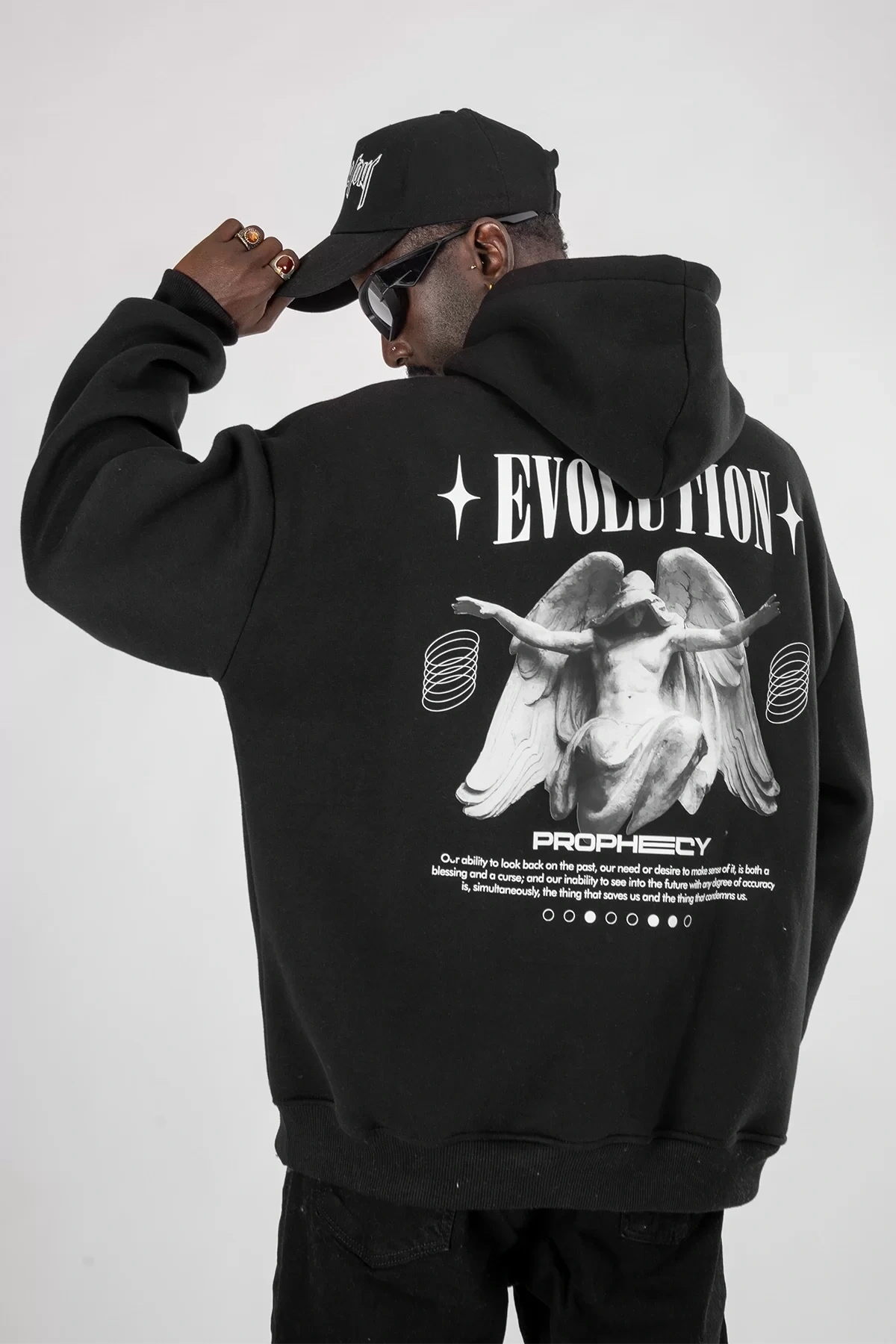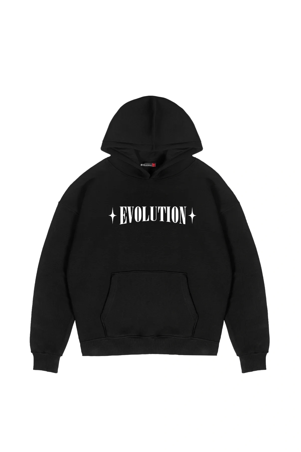 Evolution Baskılı Oversize Unisex Kapüşonlu Siyah Hoodie