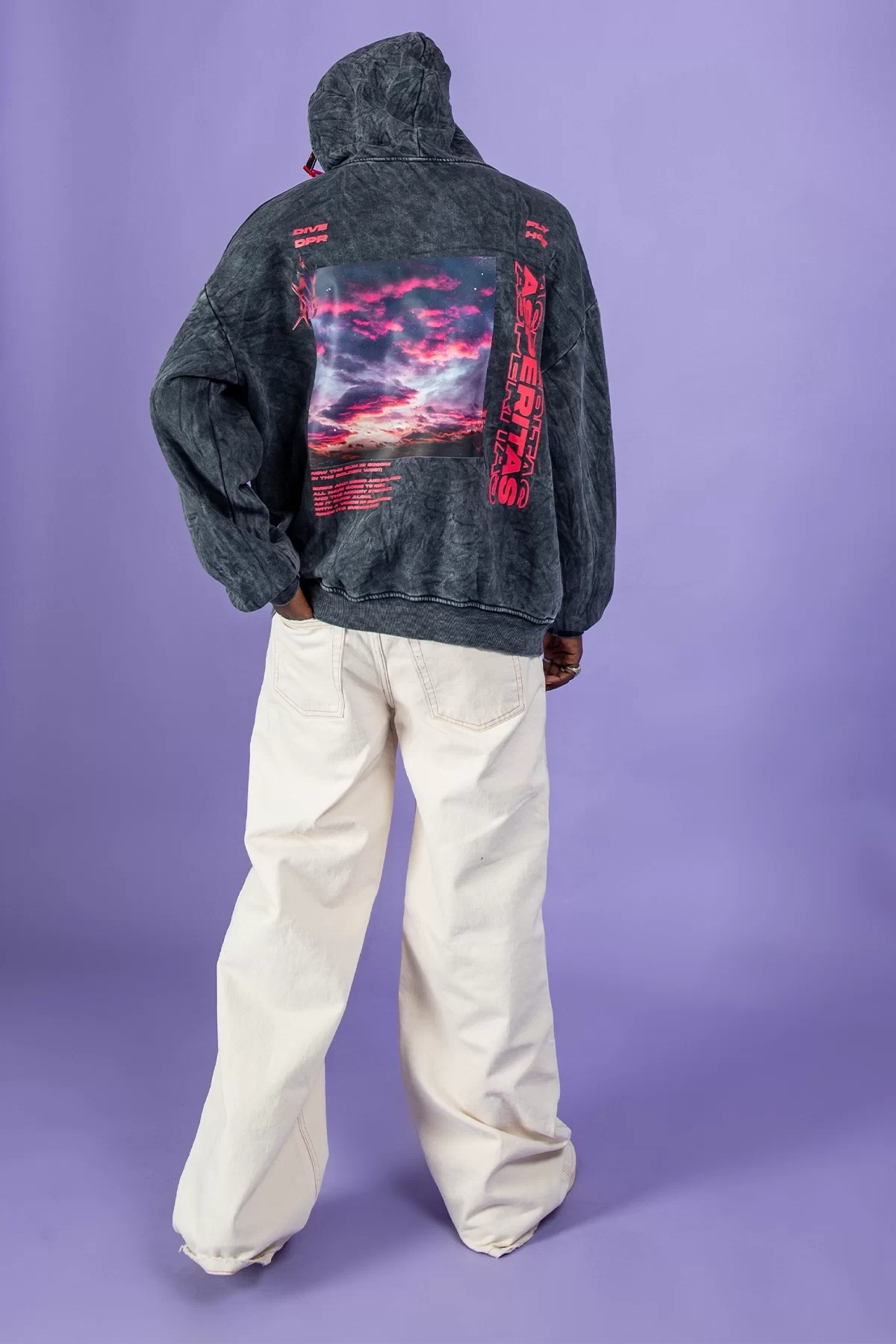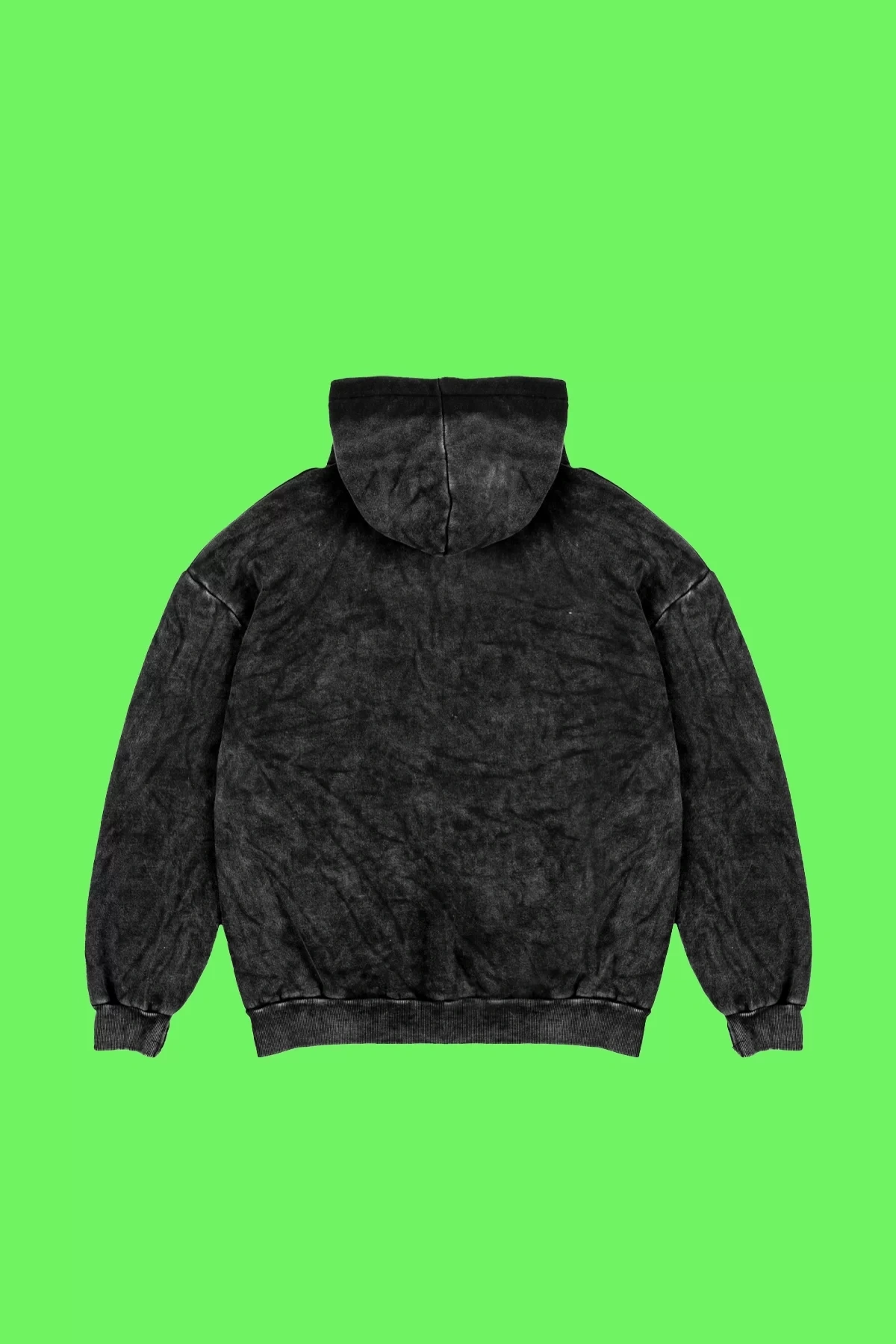 Yıkamalı Siyah Asperitas Sırt Baskılı Oversize Unisex Hoodie