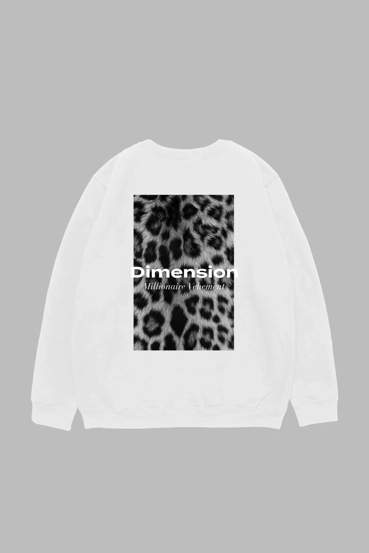 "V2" Dimension Leopar Baskılı Beyaz Oversize Unisex Sweatshirt
