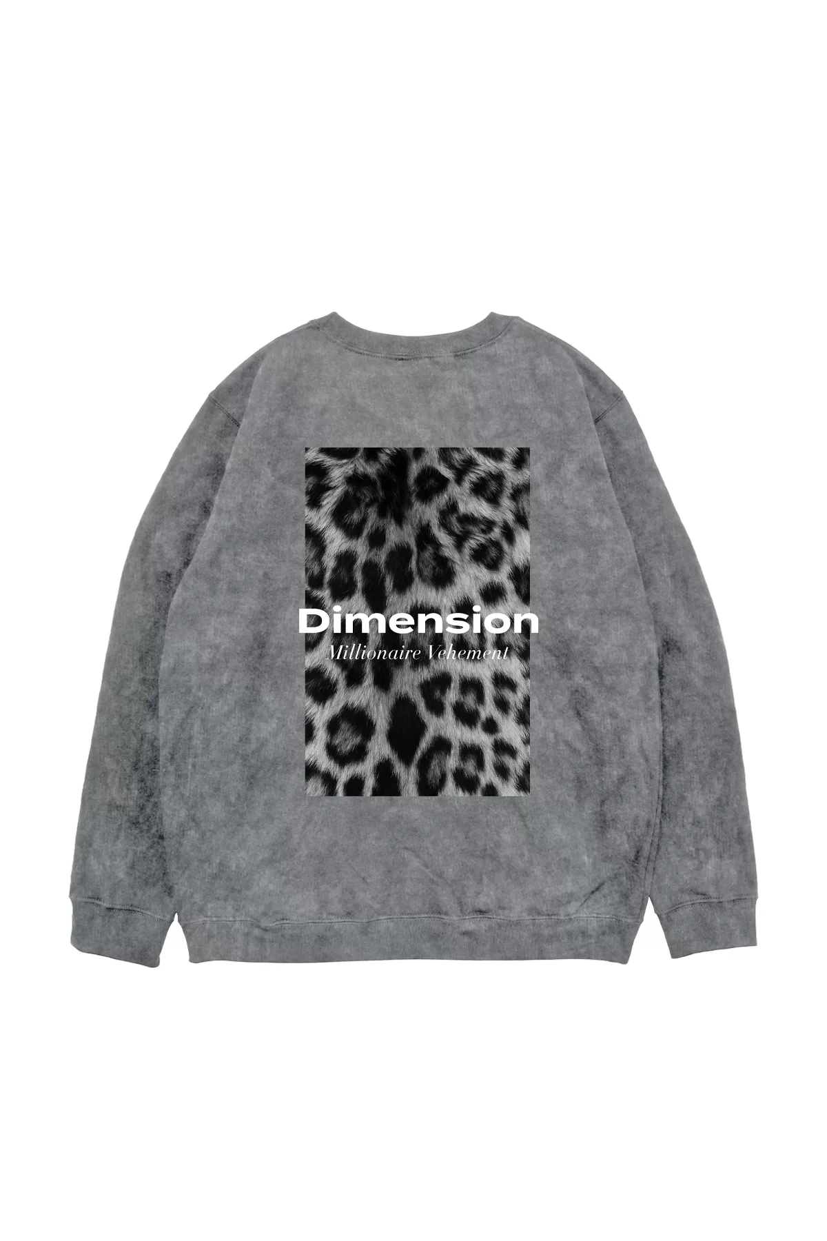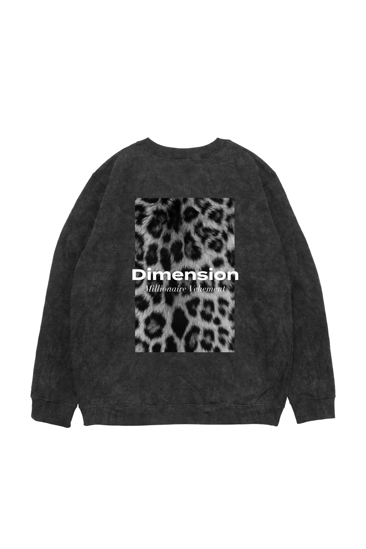 "V2" Dimension Leopar Baskılı Yıkamalı Siyah Oversize Unisex Sweatshirt