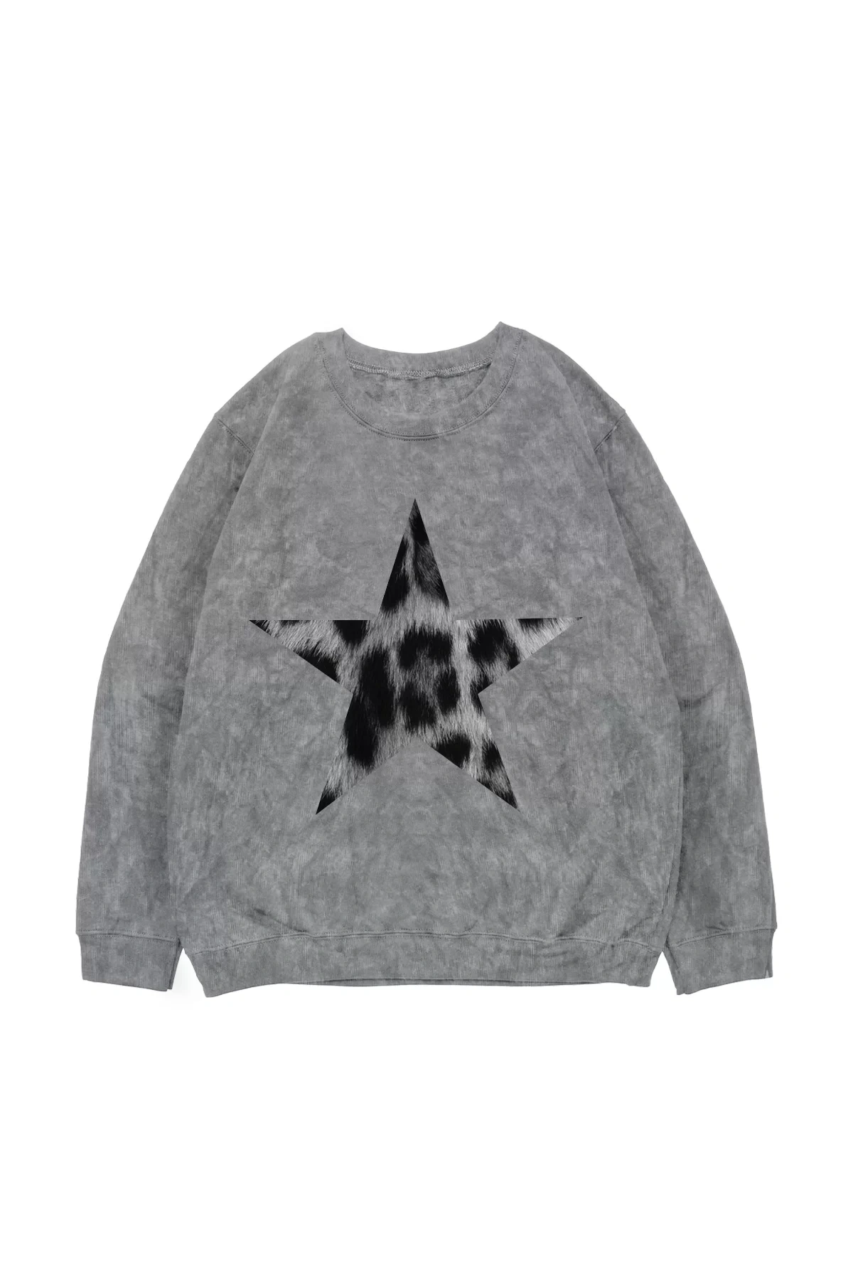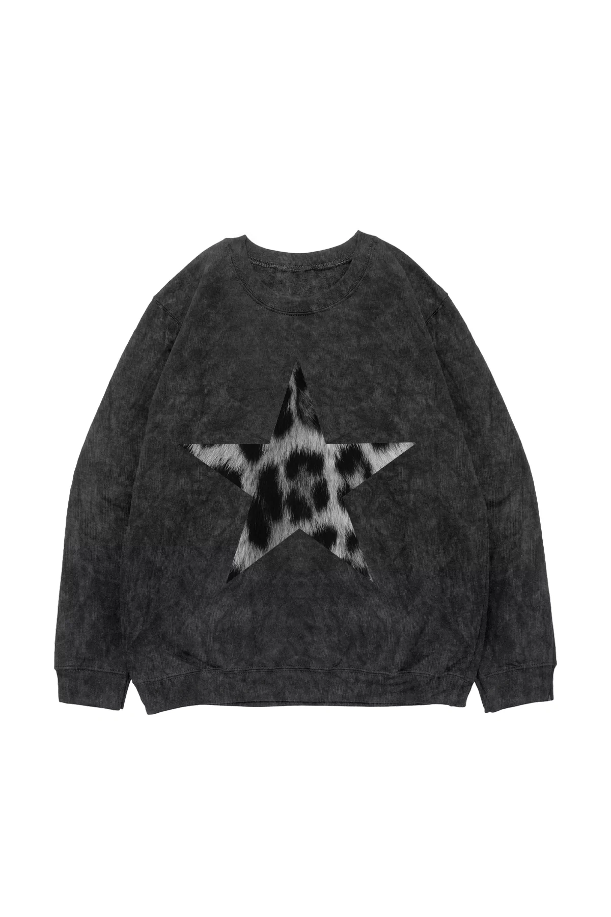 "V2" Starz Leopar Baskılı Yıkamalı Siyah Oversize Unisex Sweatshirt