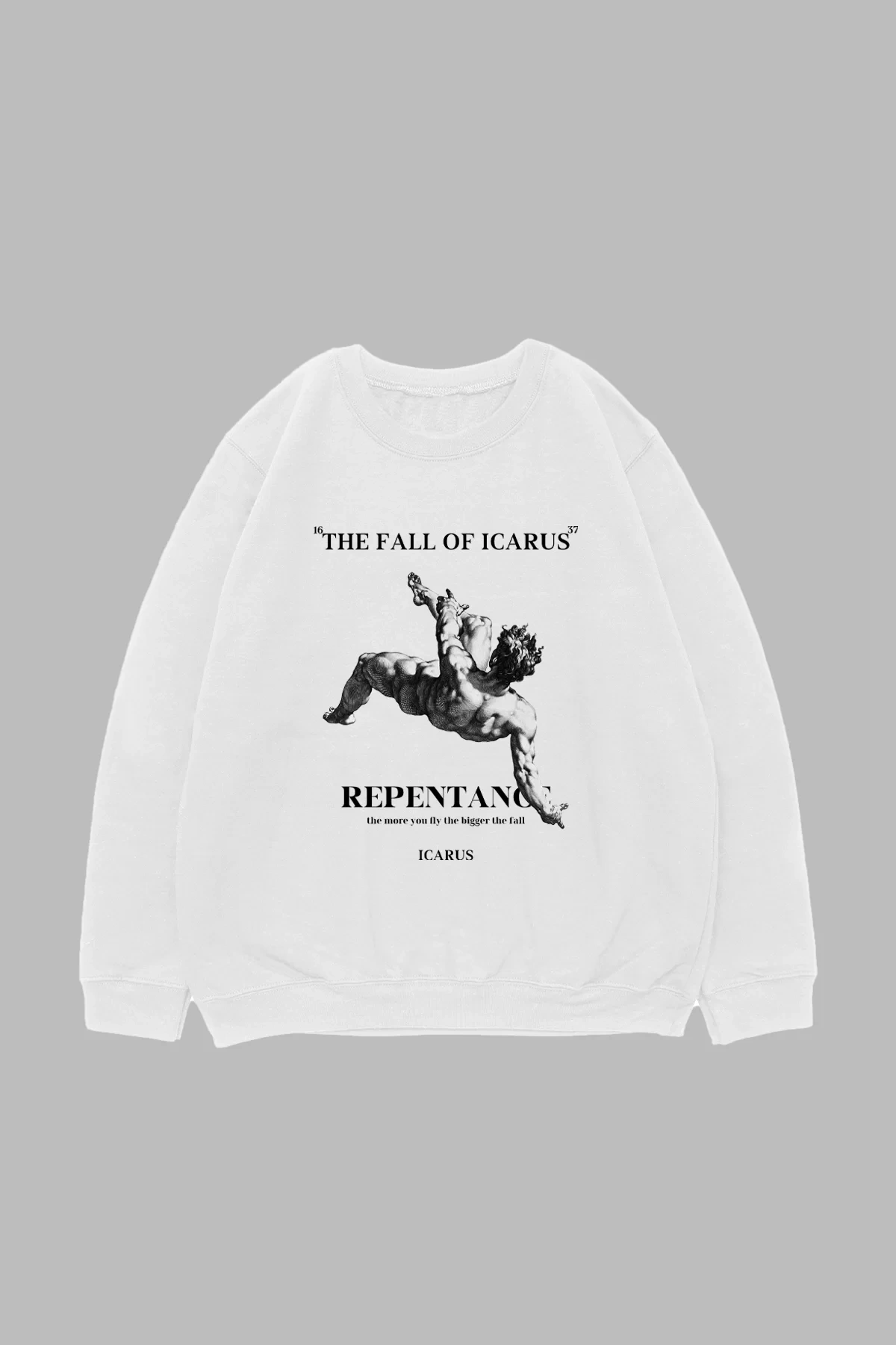 Fall Of Icarus Baskılı Beyaz Oversize Unisex Sweatshirt