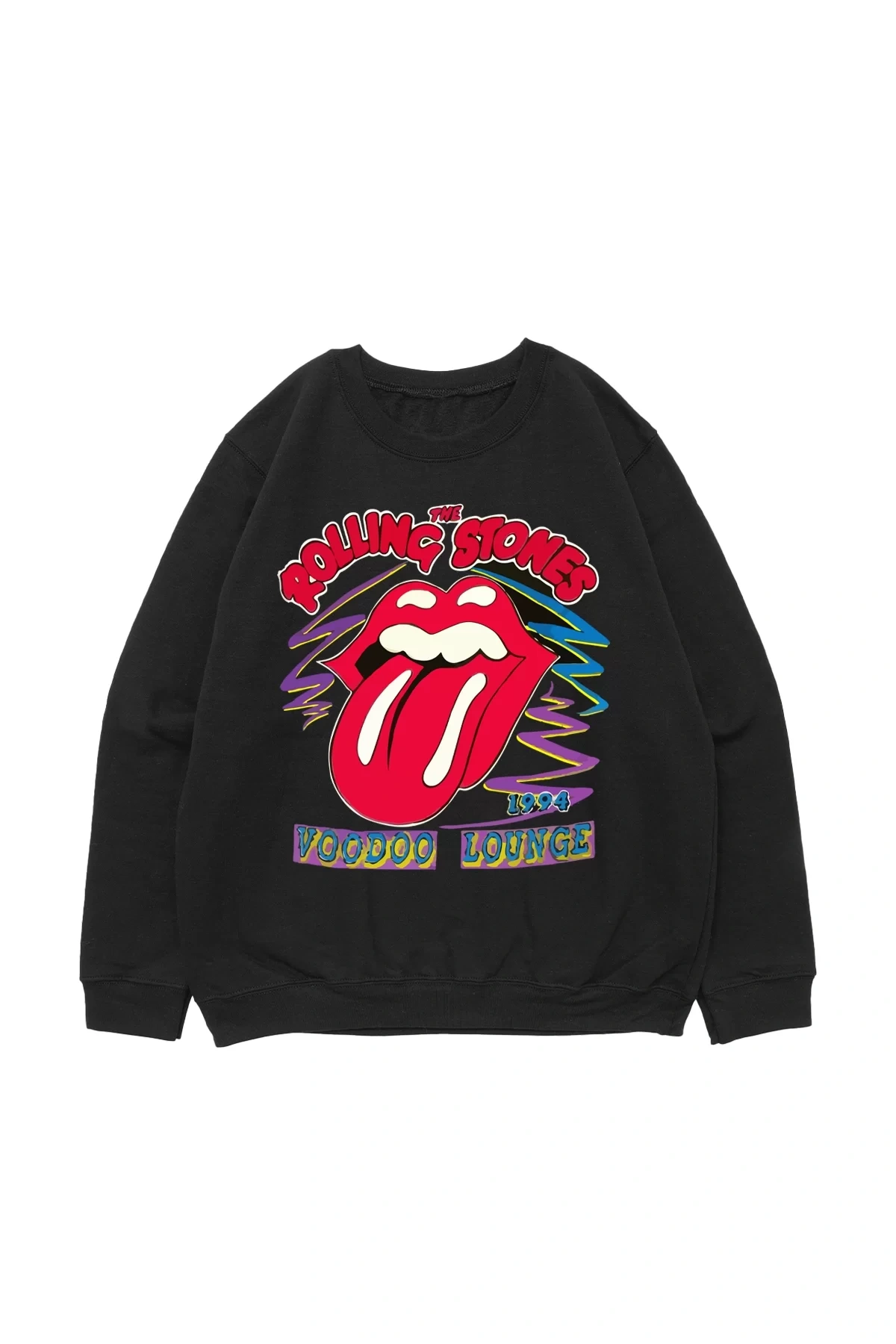 Rolling Stones Voodo Lounge Baskılı Siyah Oversize Unisex Sweatshirt