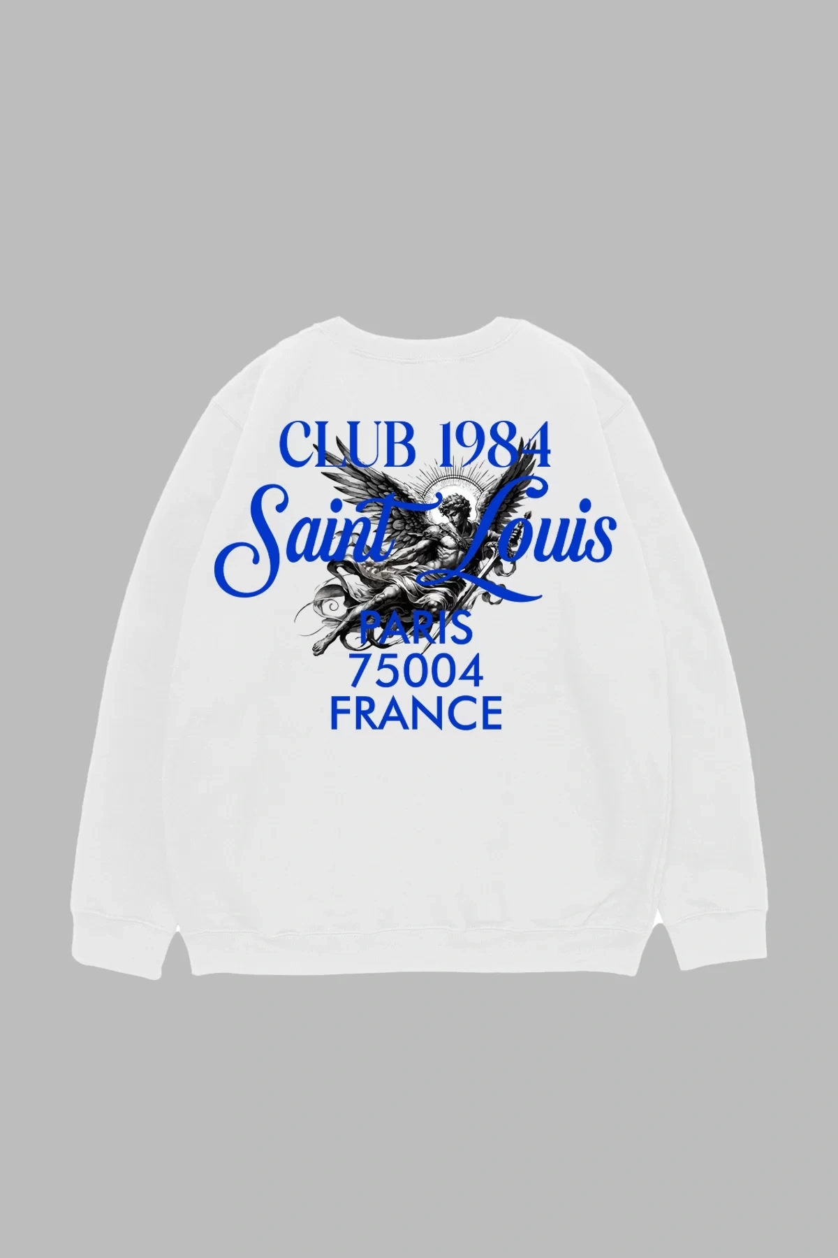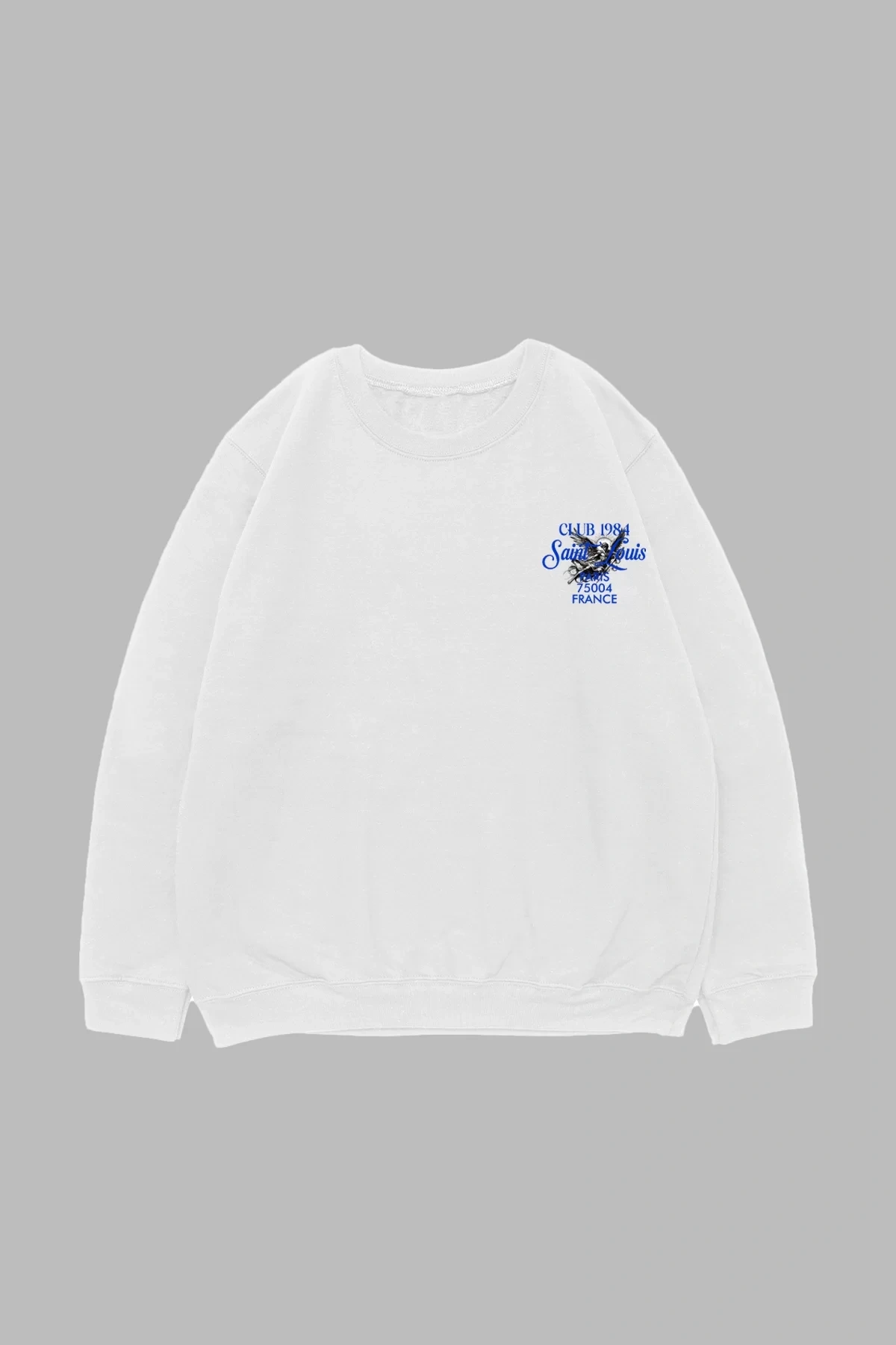 Saint Louis Baskılı Beyaz Oversize Unisex Sweatshirt
