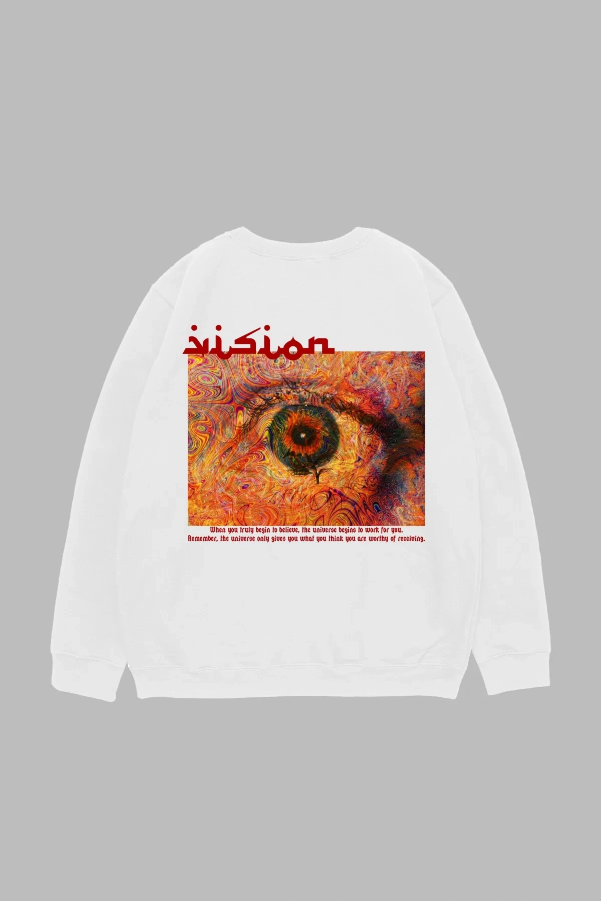 Vision Baskılı Beyaz Oversize Unisex Sweatshirt