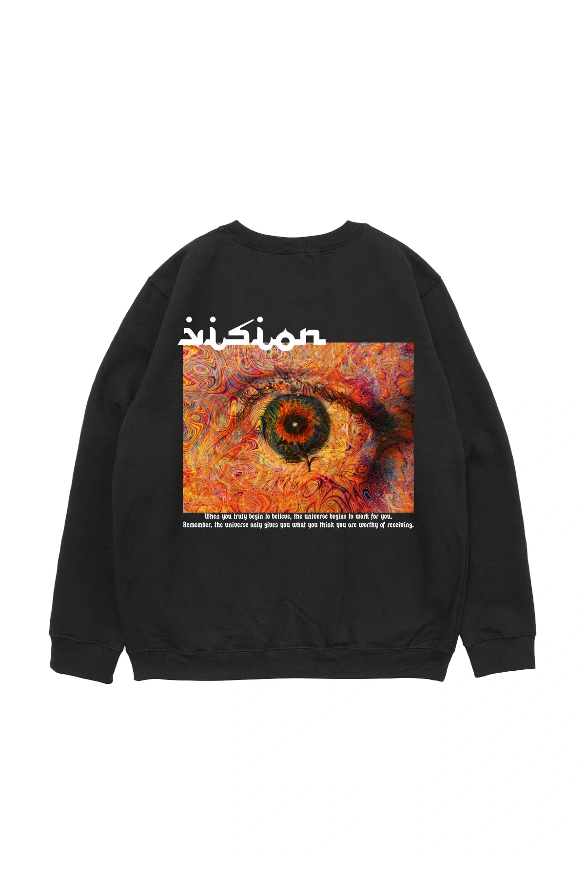 Vision Baskılı Siyah Oversize Unisex Sweatshirt