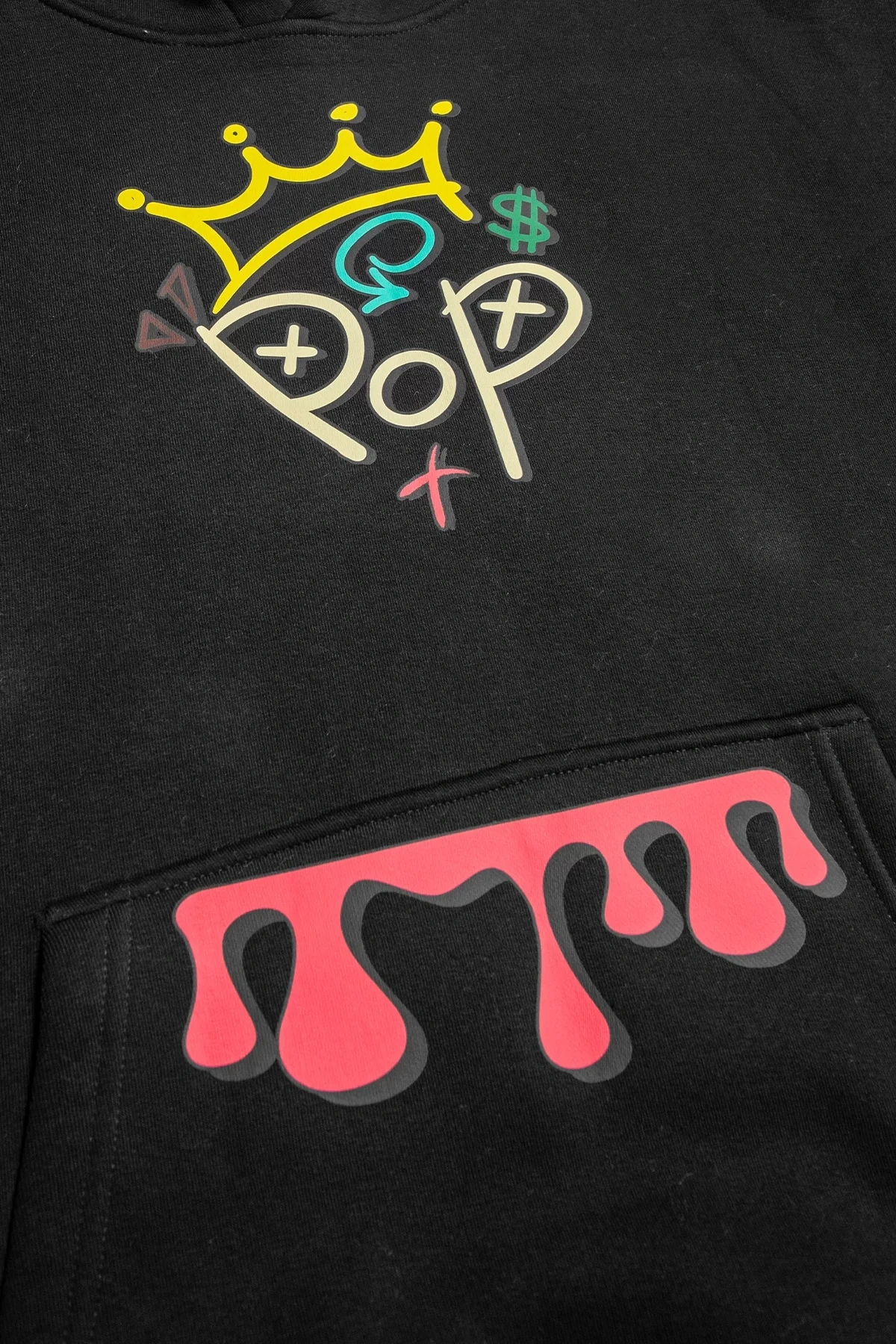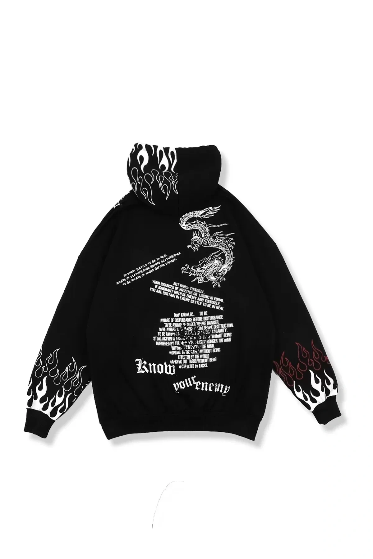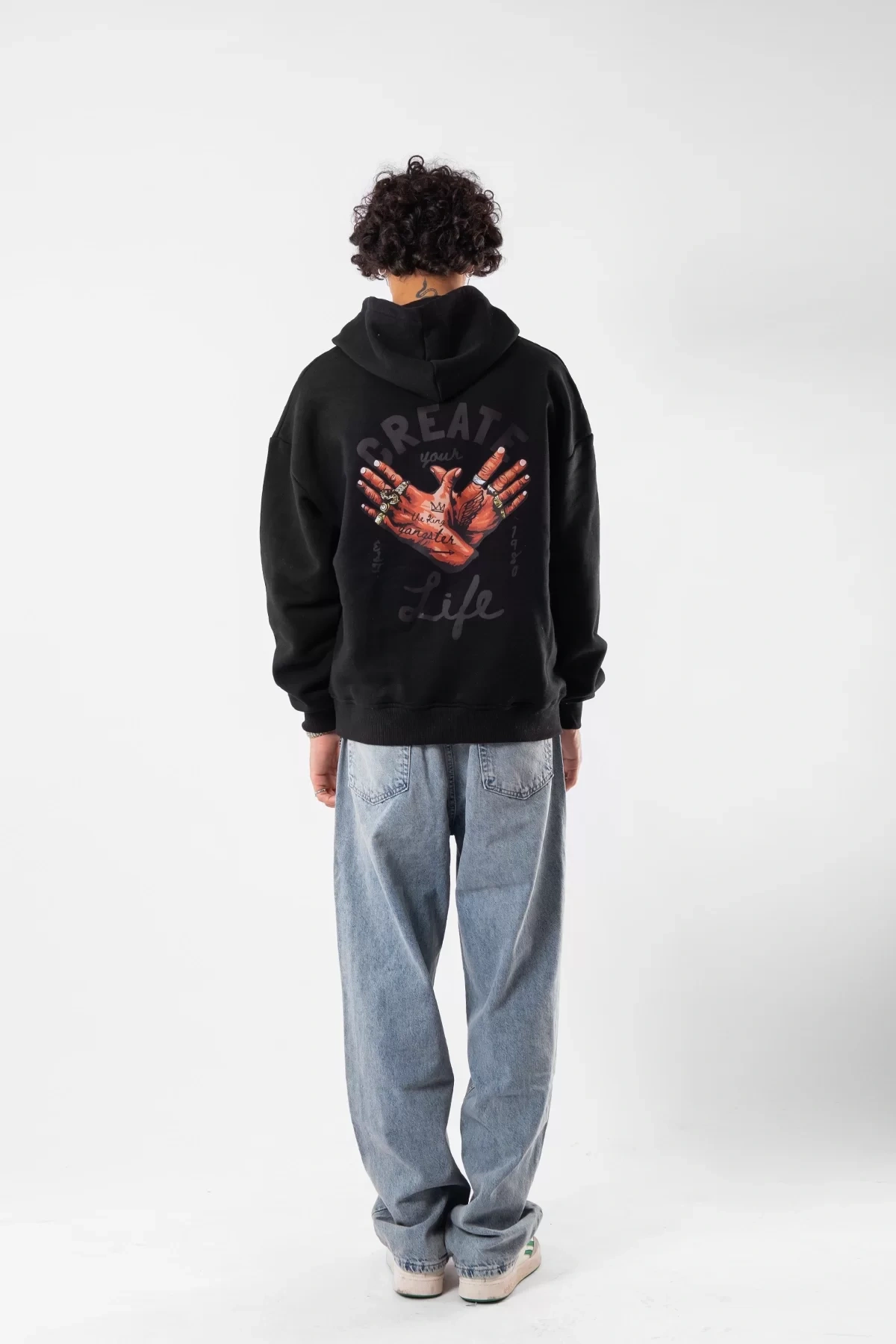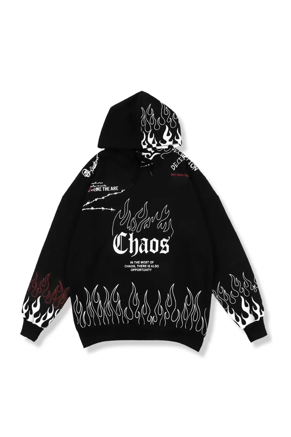 Chaos Karma Baskılı Siyah Rahat Kalıp Kapüşonlu Sweatshirt