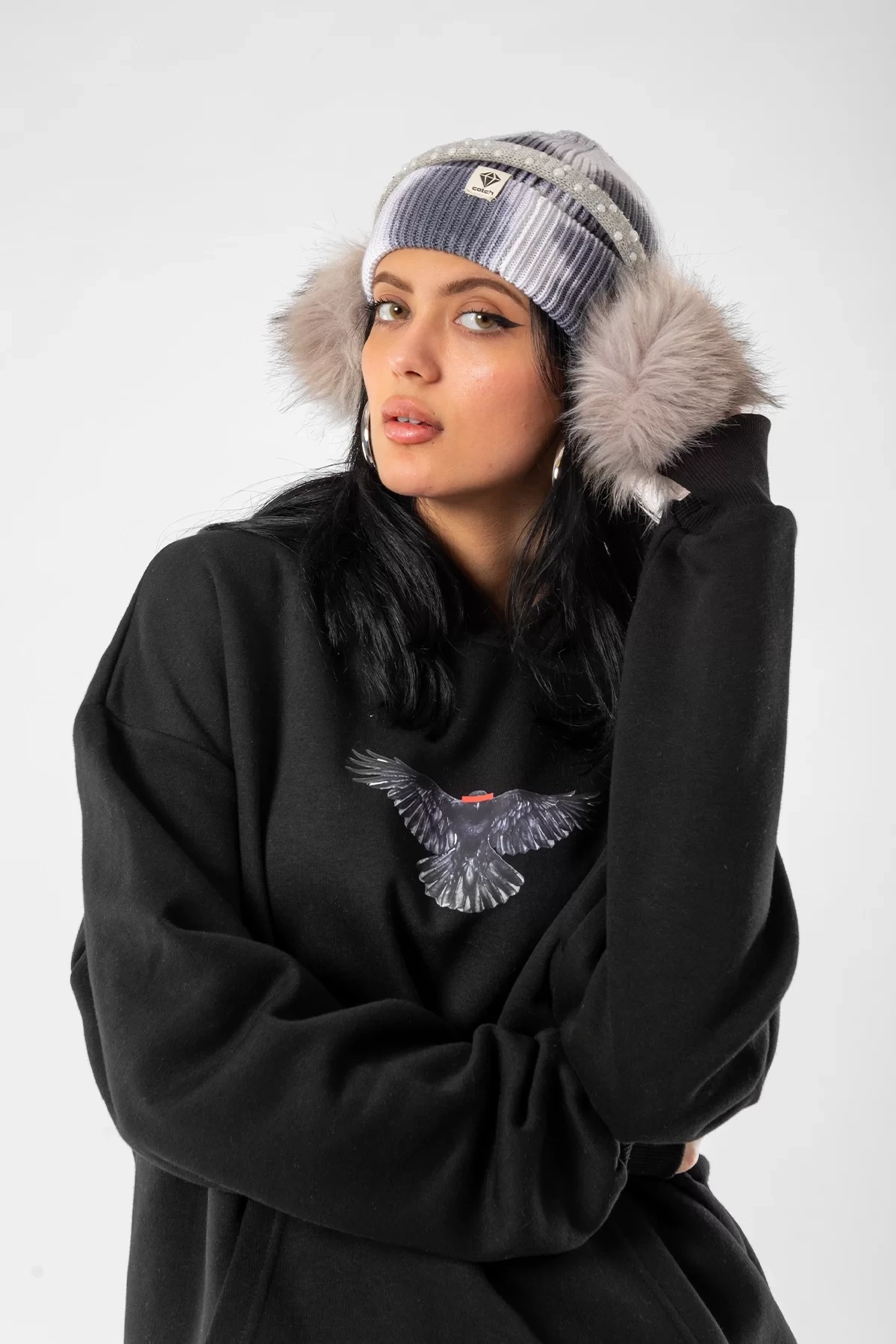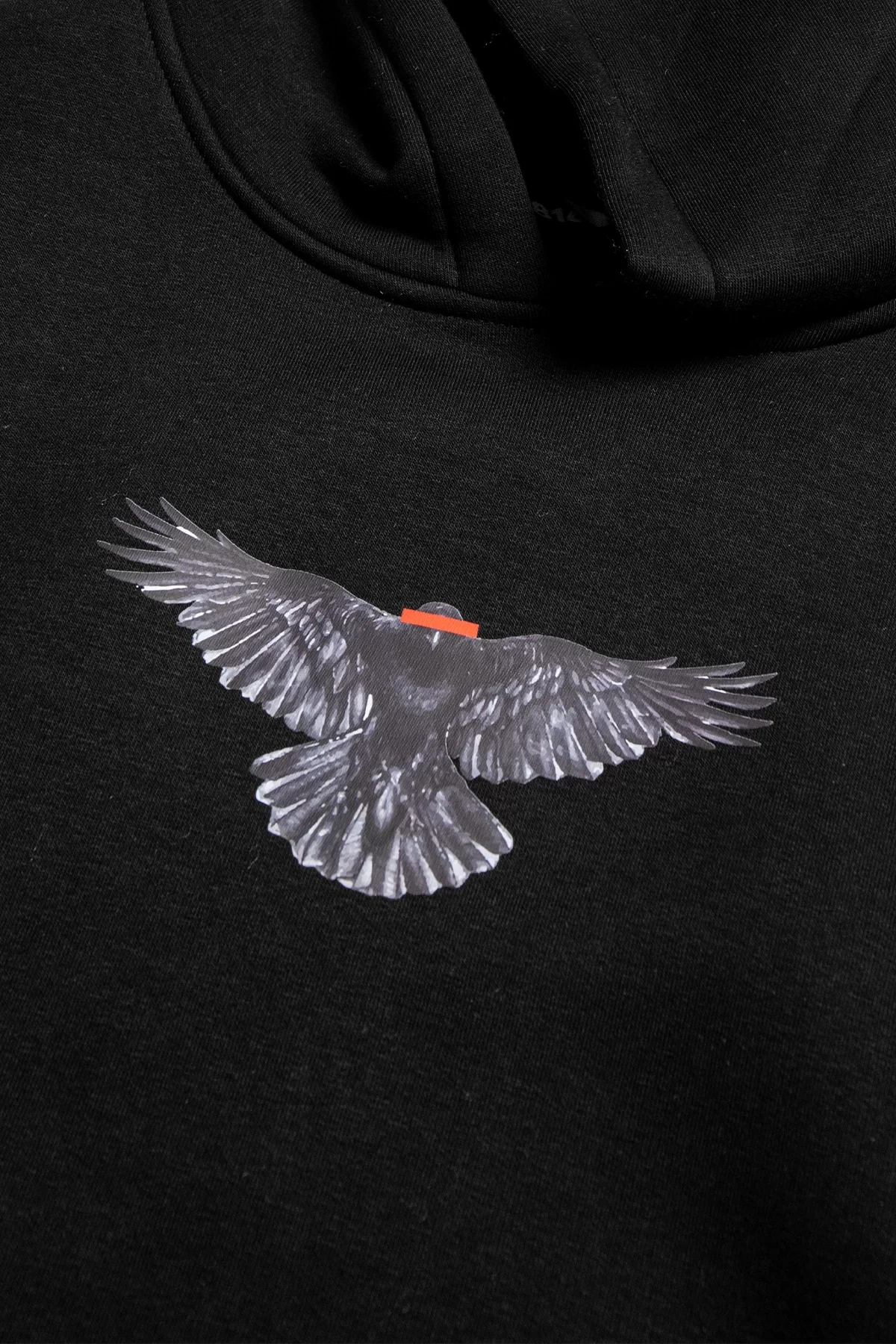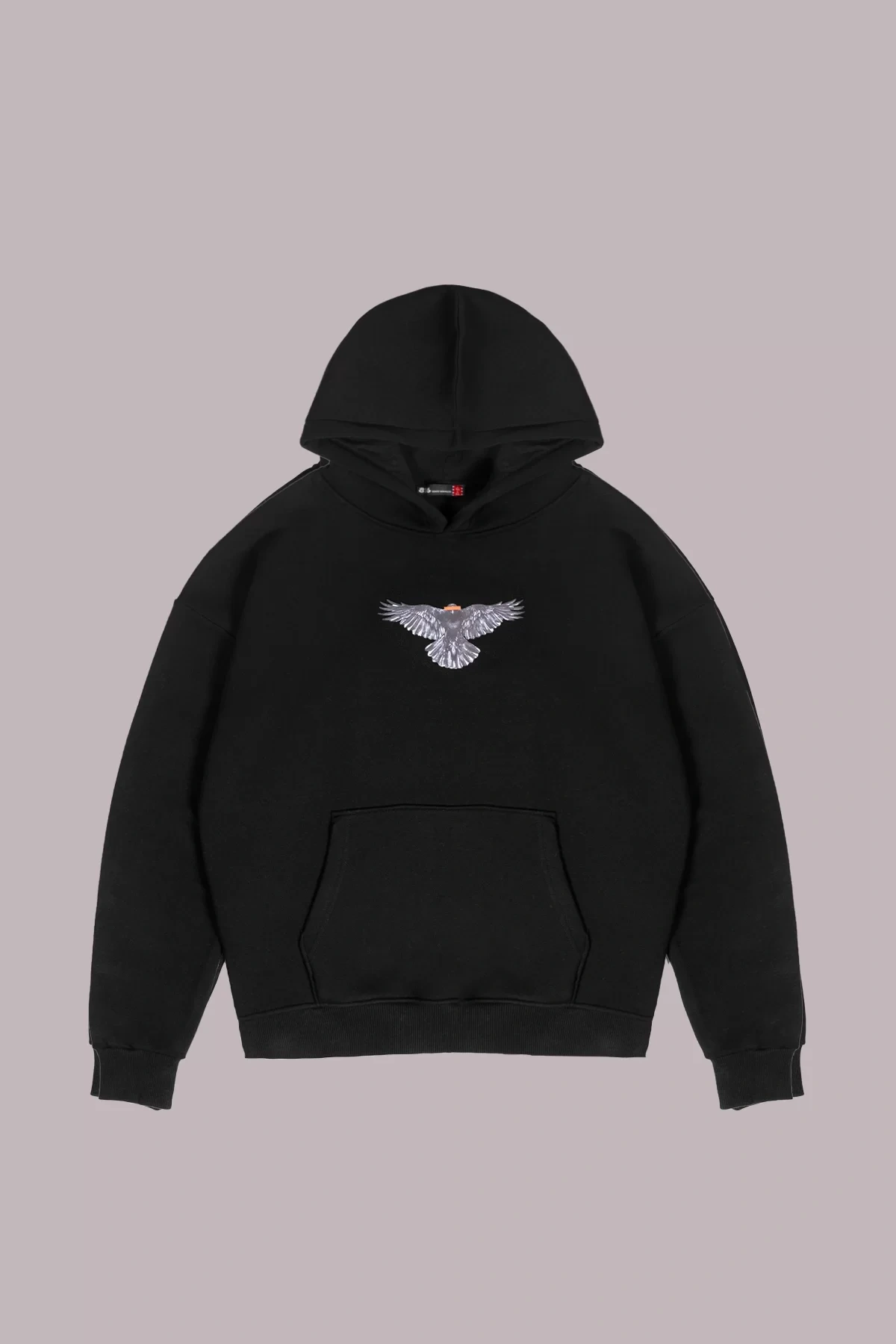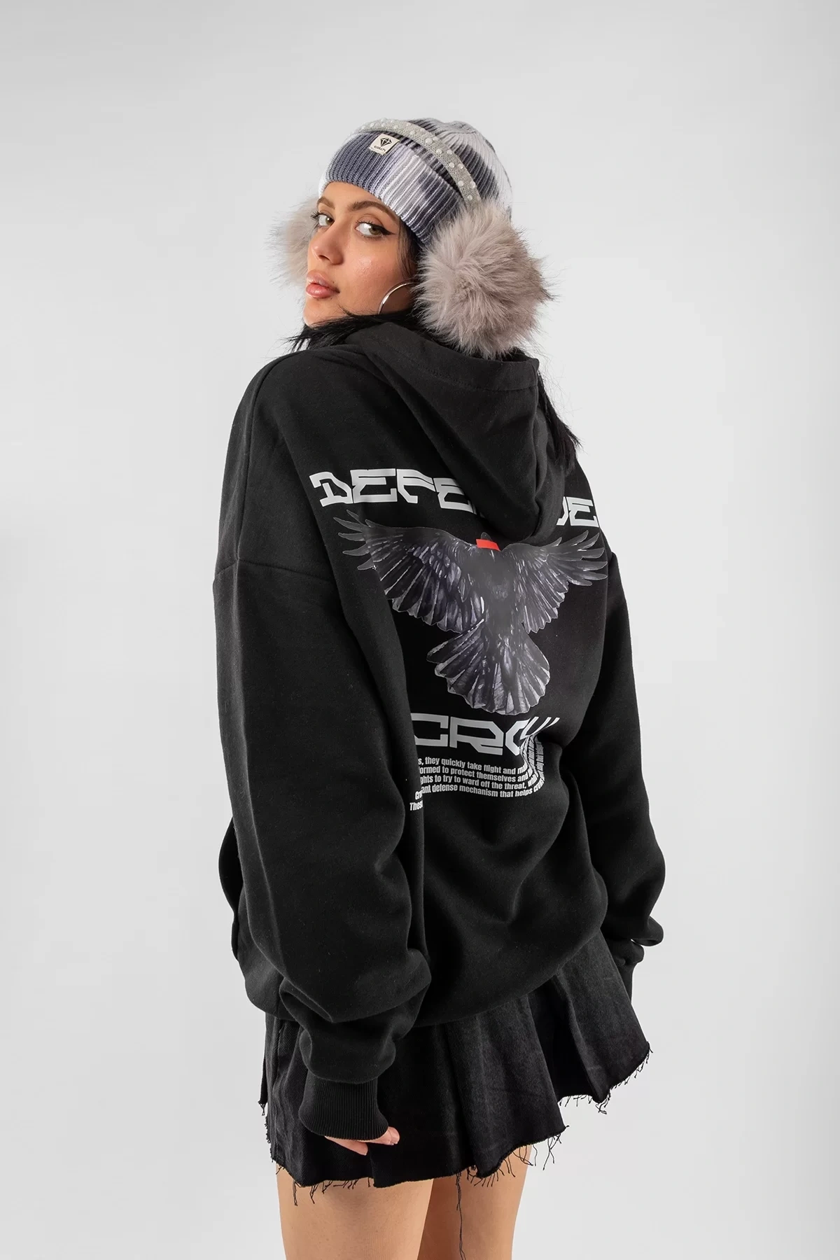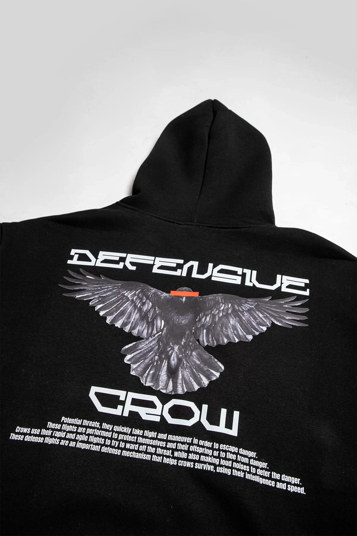 Defensive Crow Baskılı Oversize Unisex Siyah Hoodie
