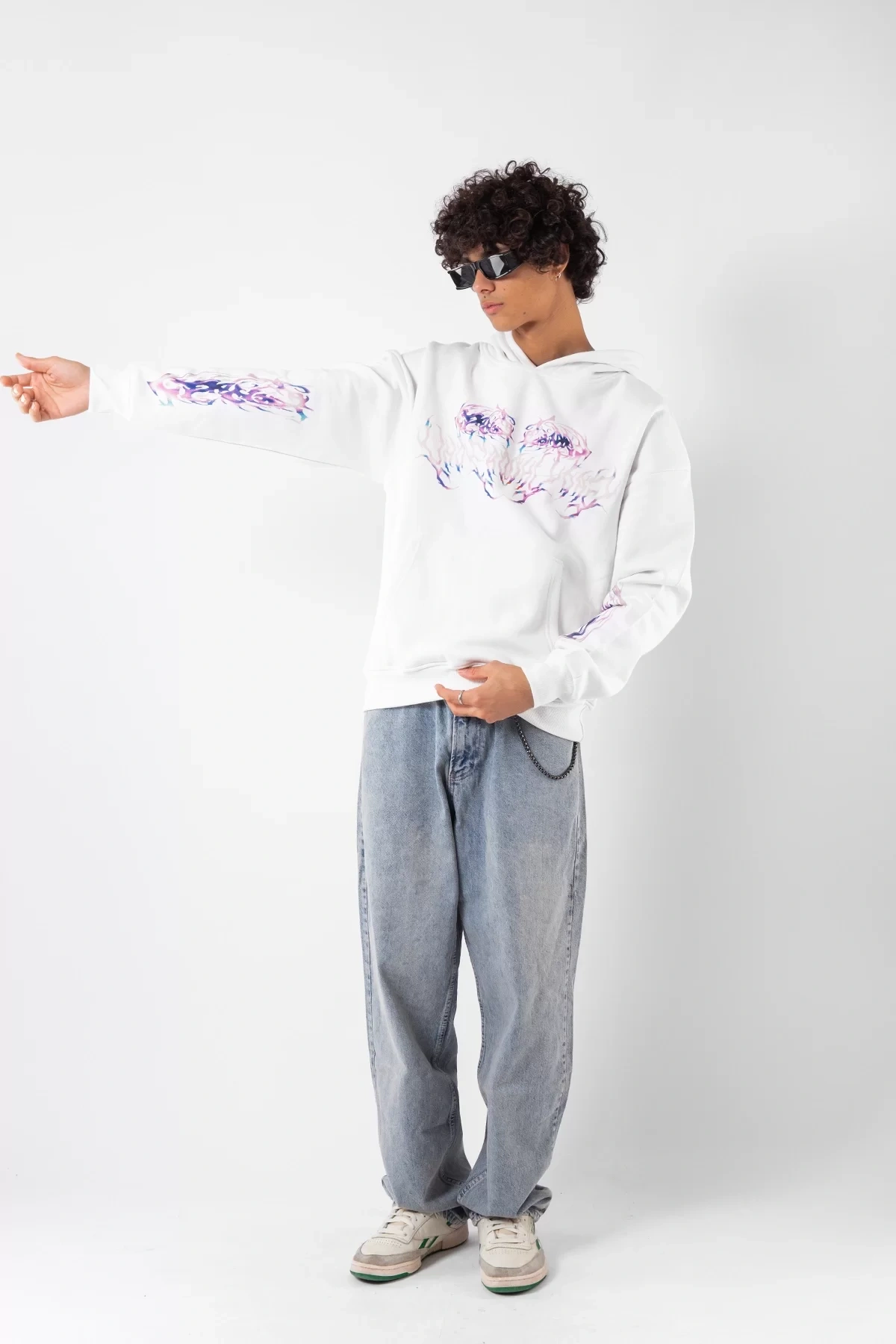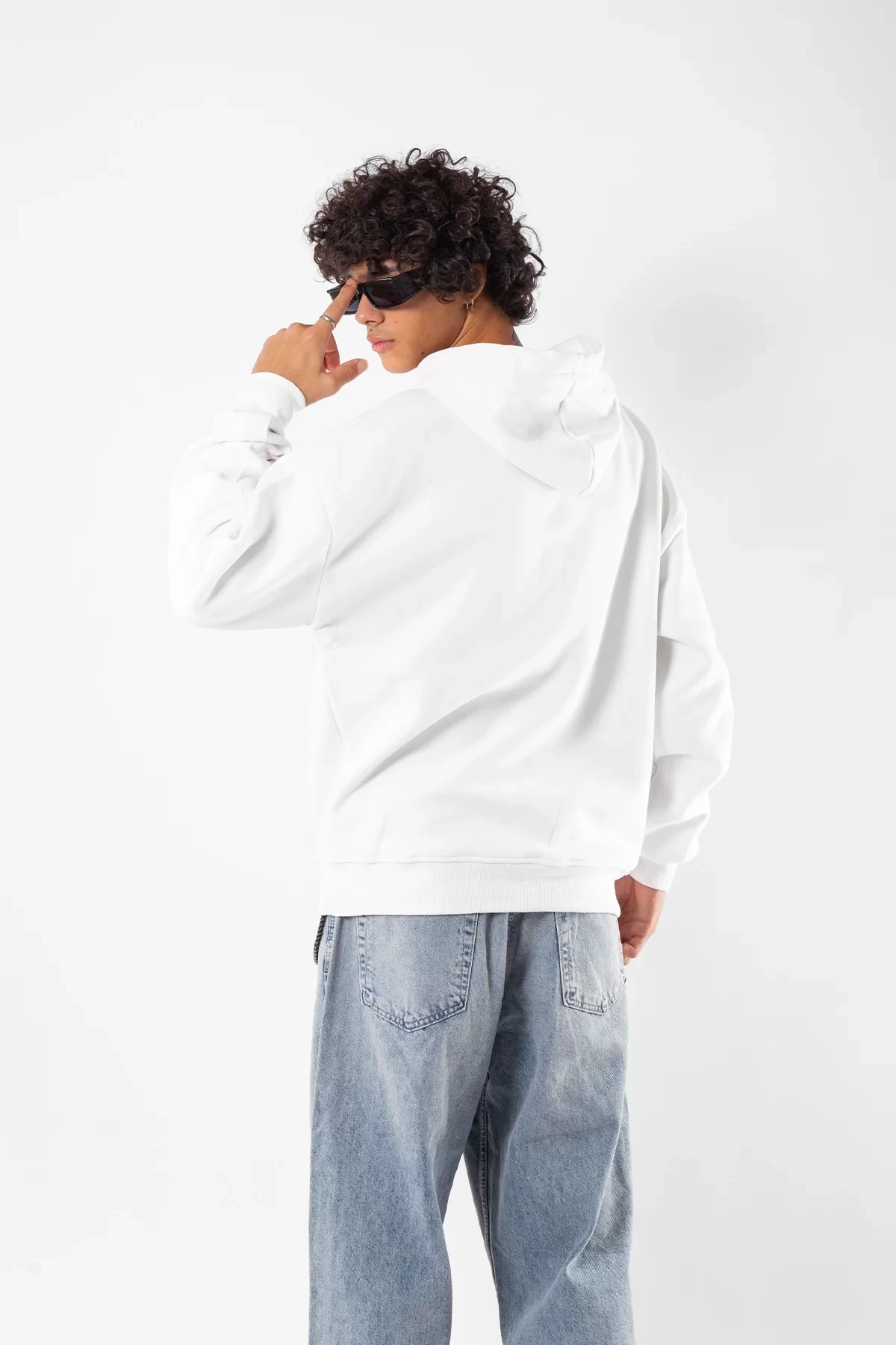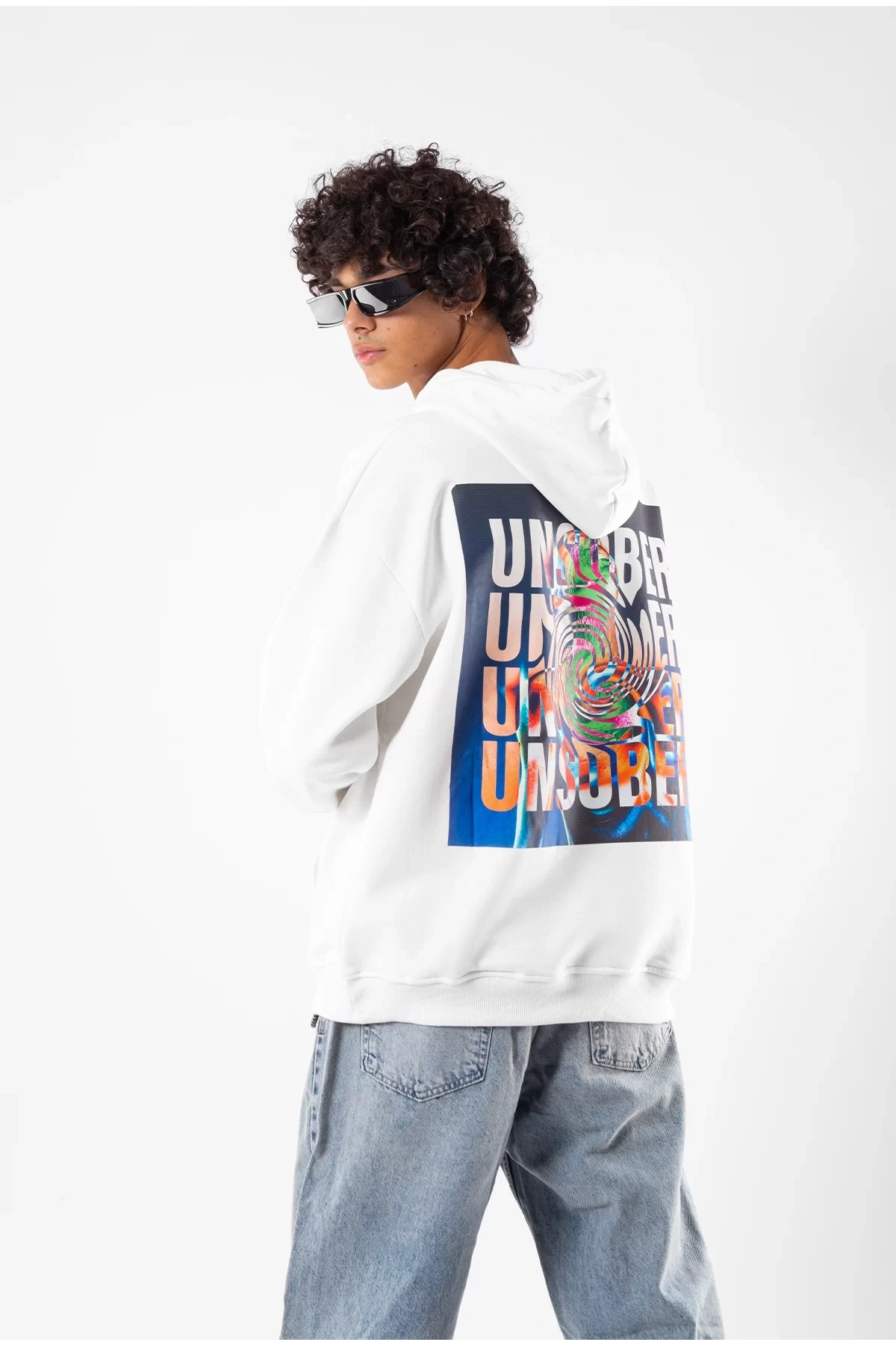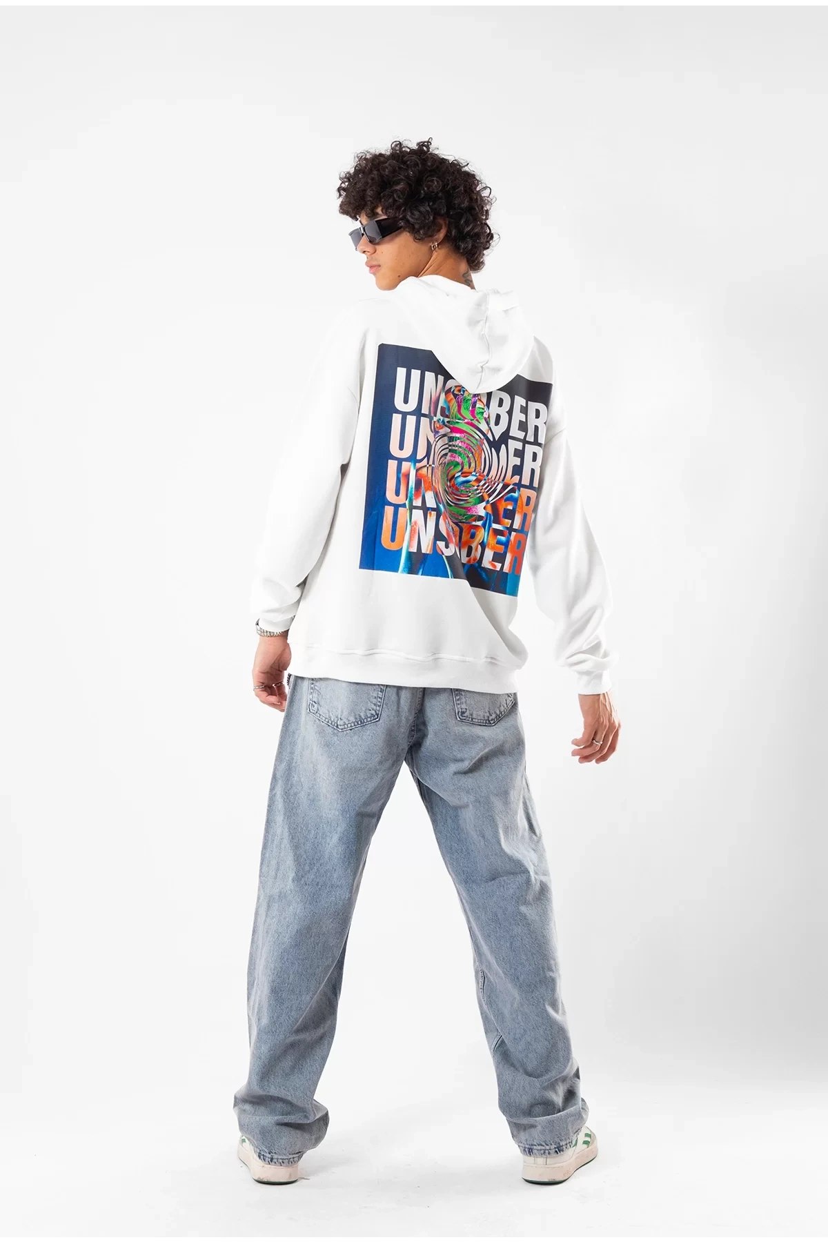 Unsober Baskılı Oversize Unisex Beyaz Hoodie