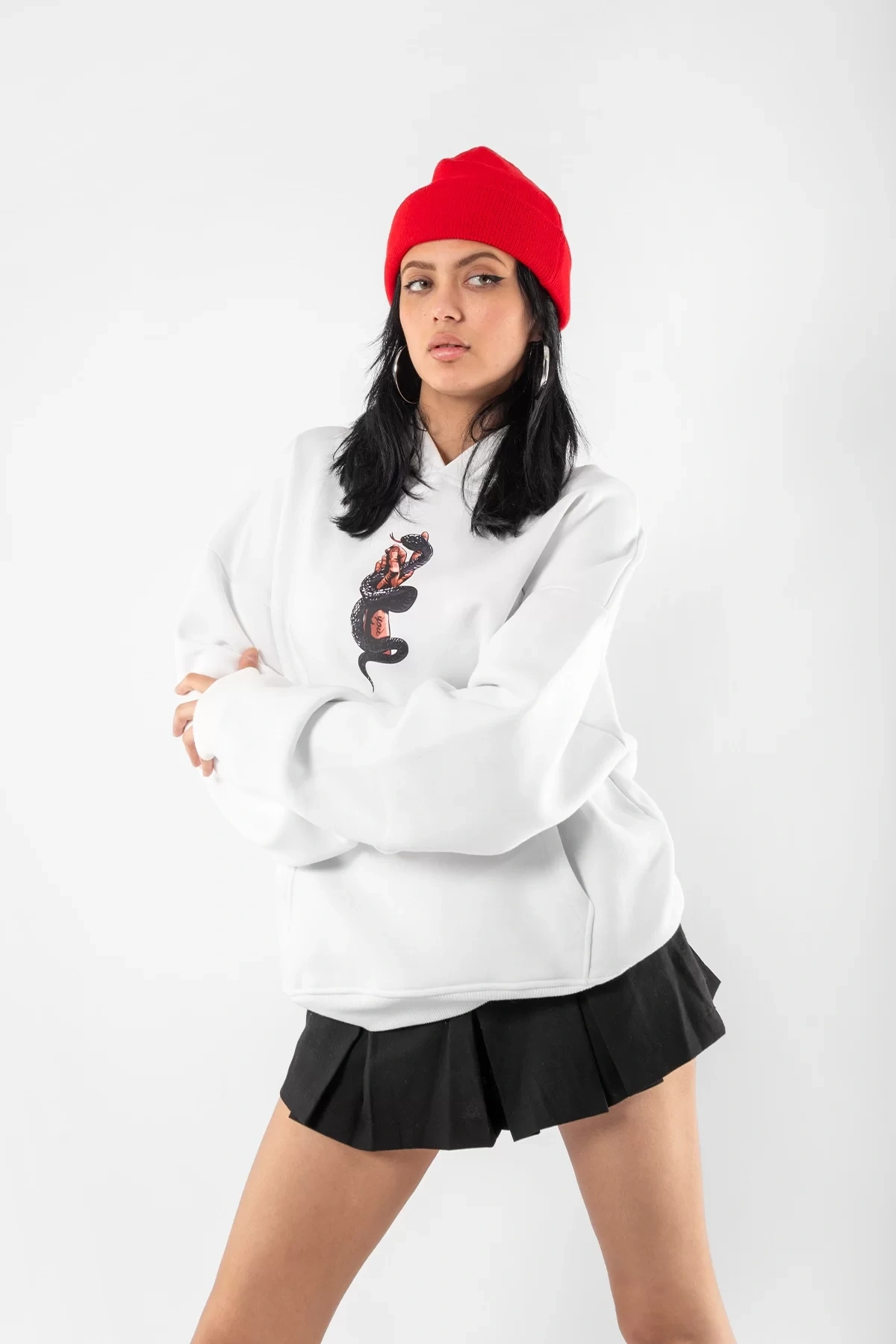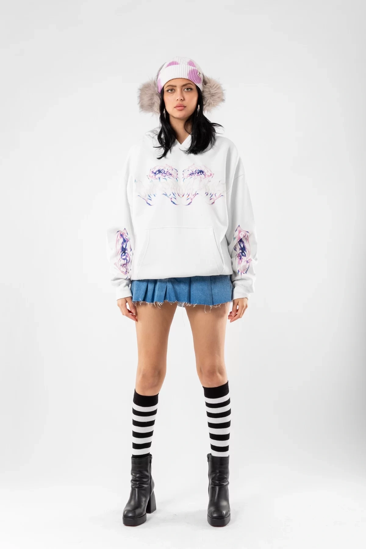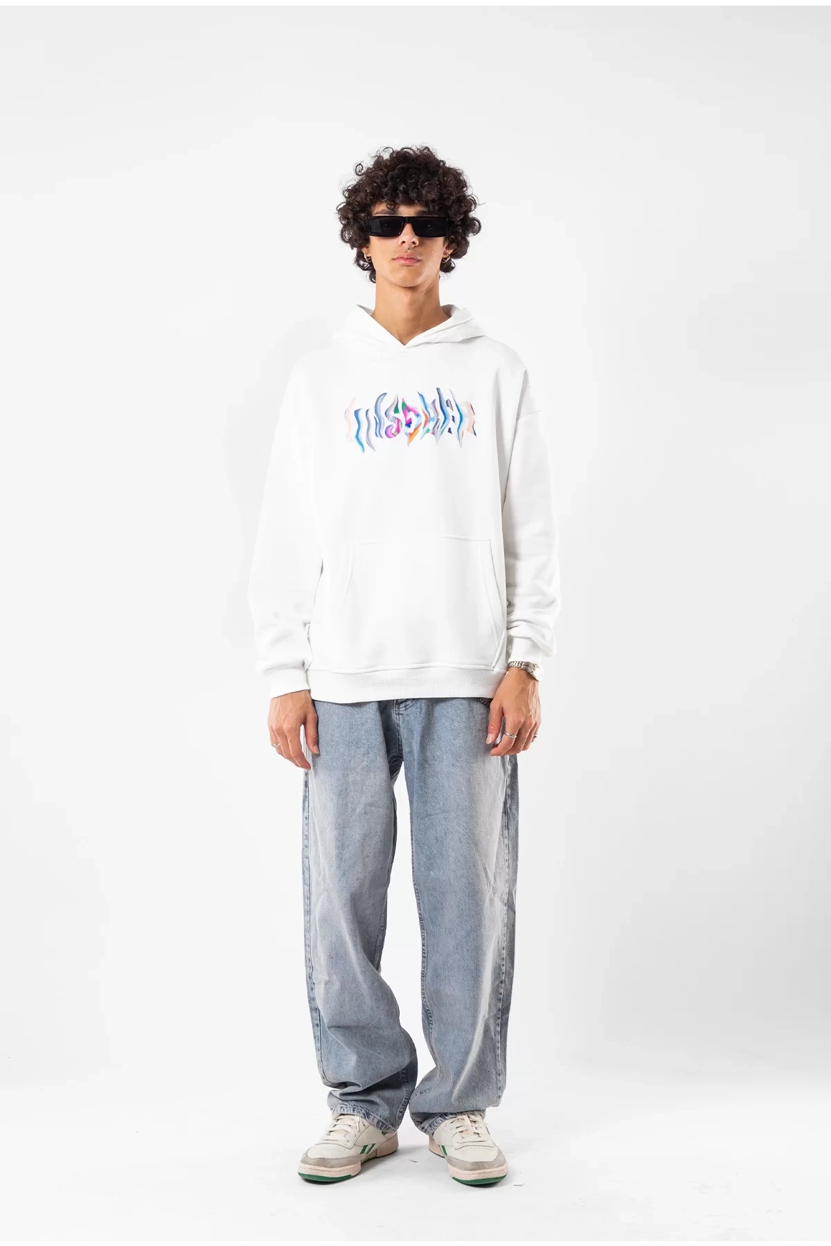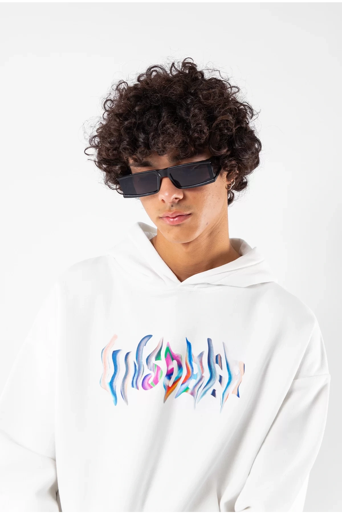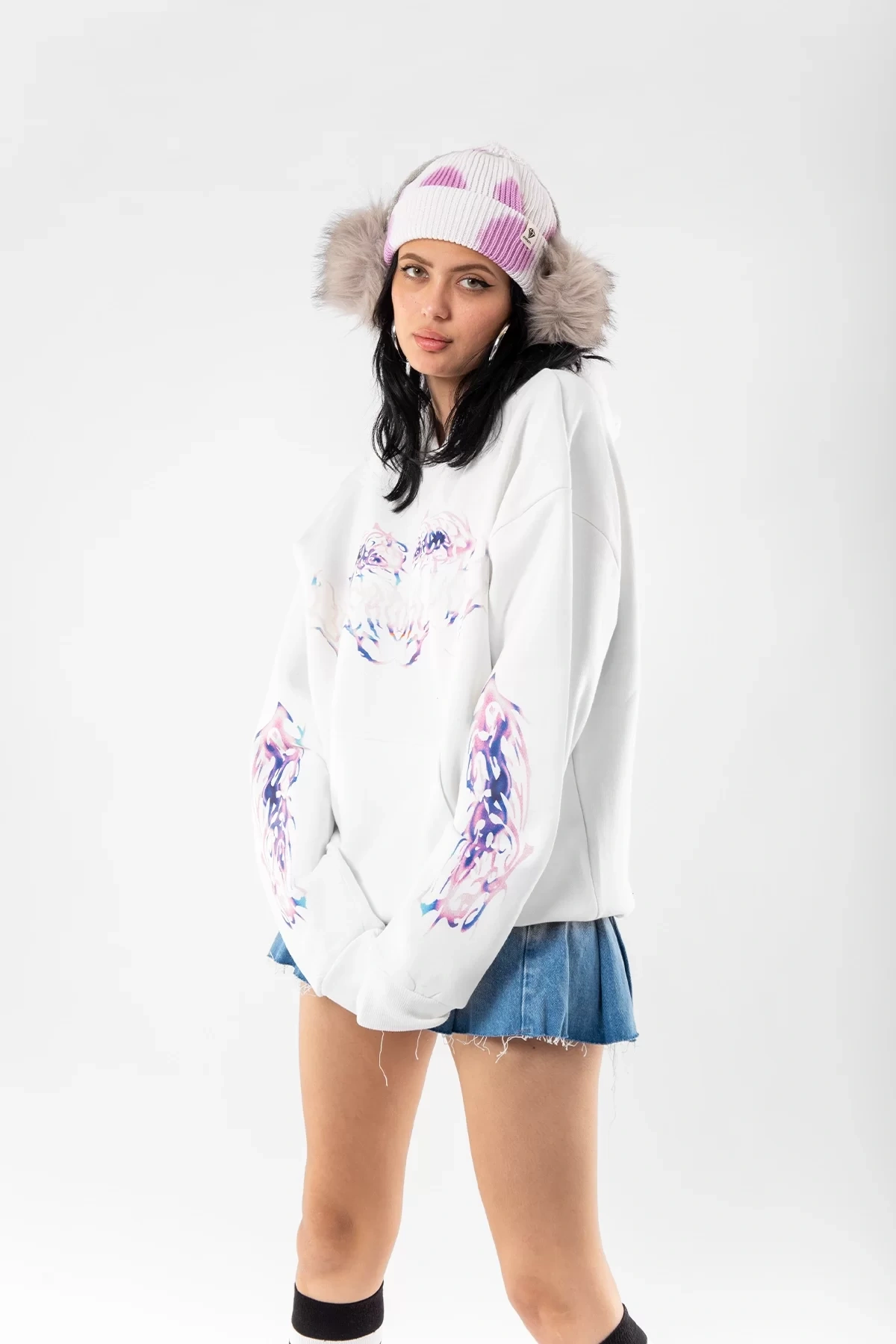 Unsober Baskılı Oversize Unisex Beyaz Hoodie
