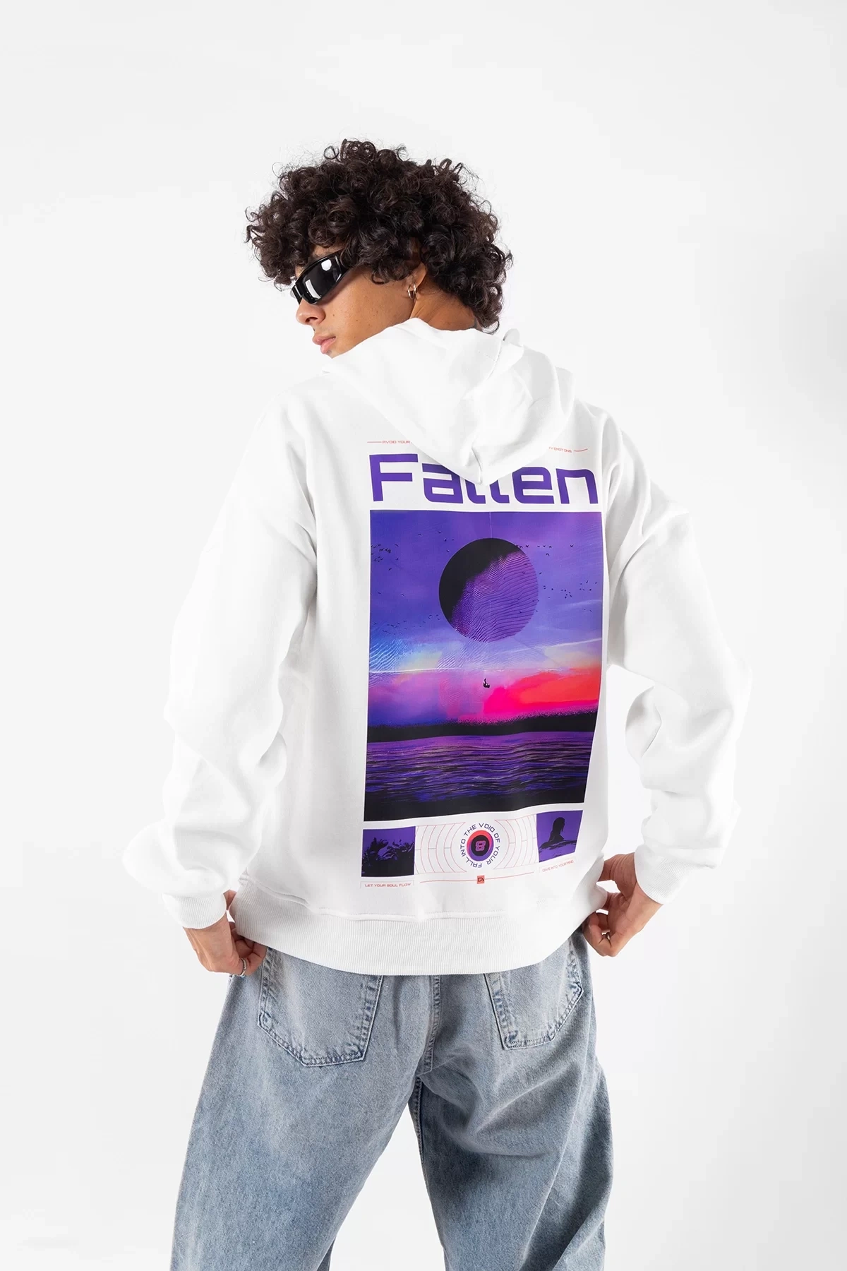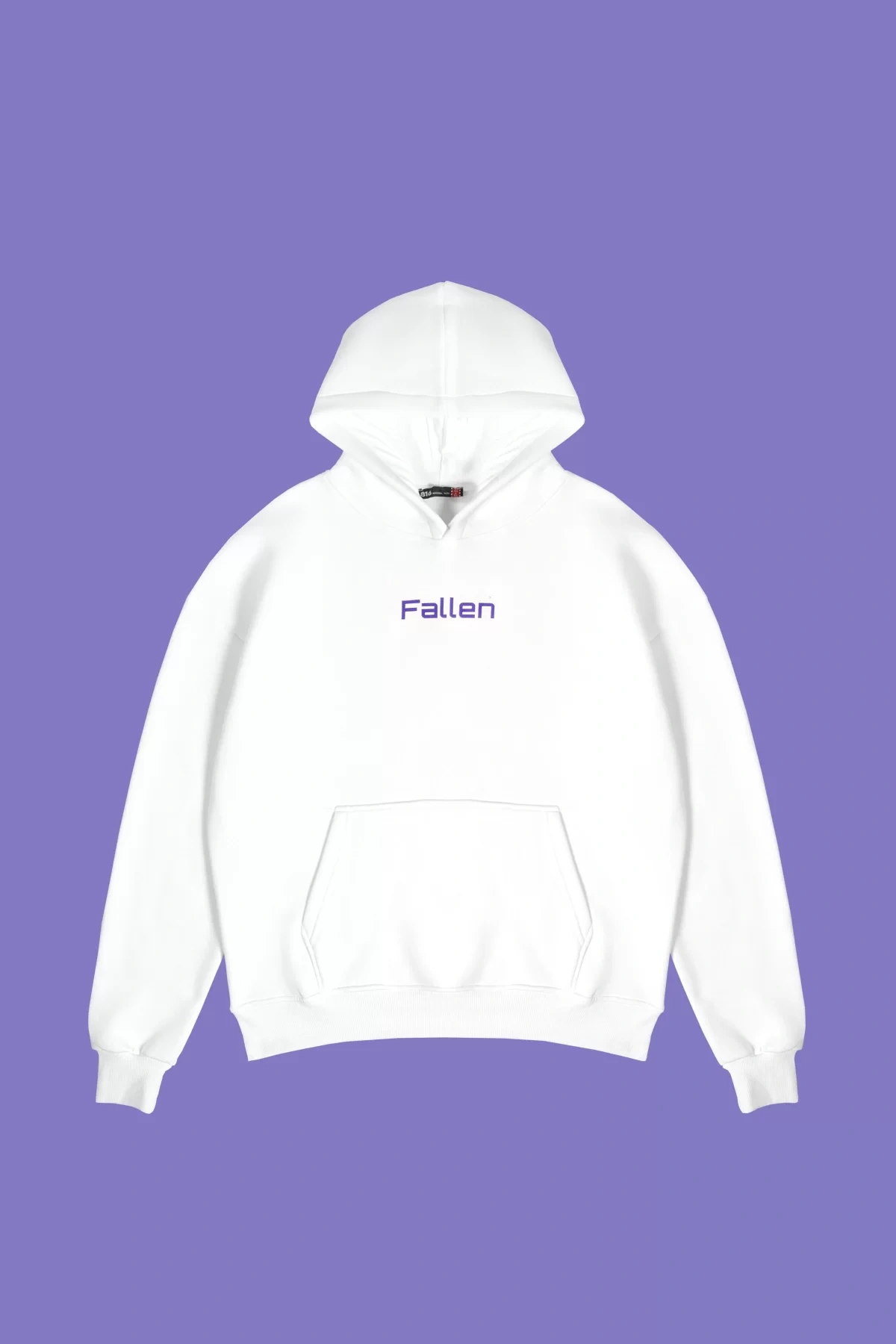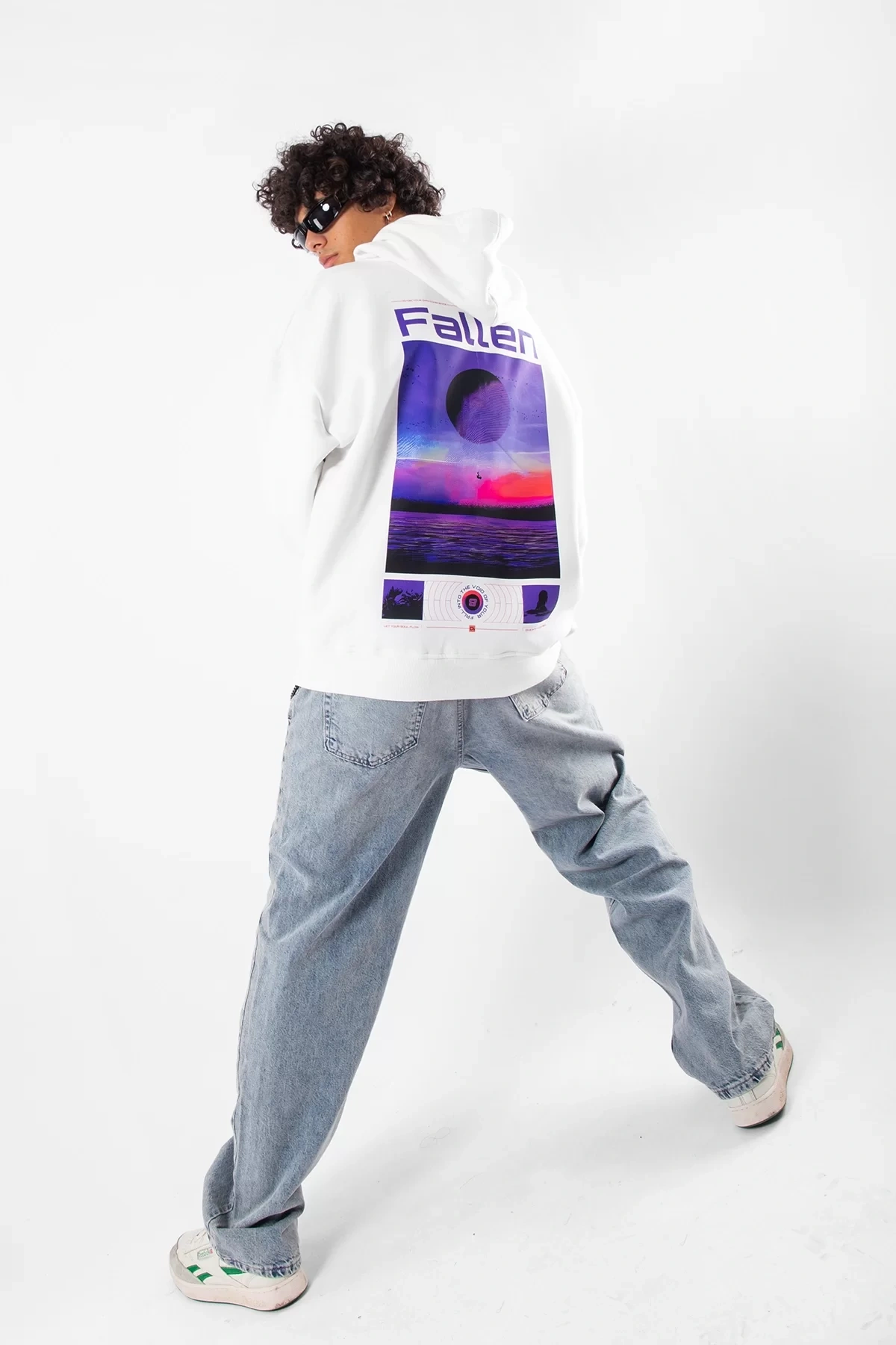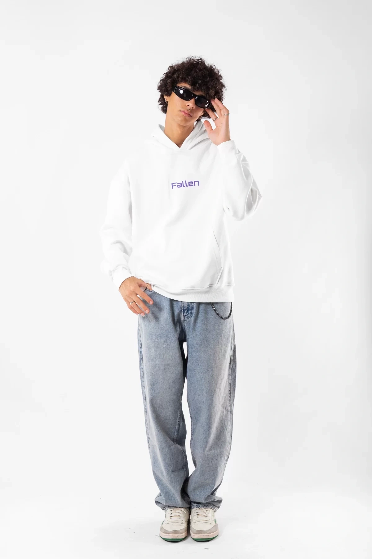 Fallen Baskılı Oversize Unisex Beyaz Hoodie