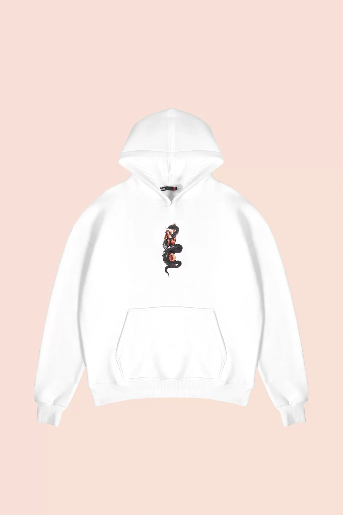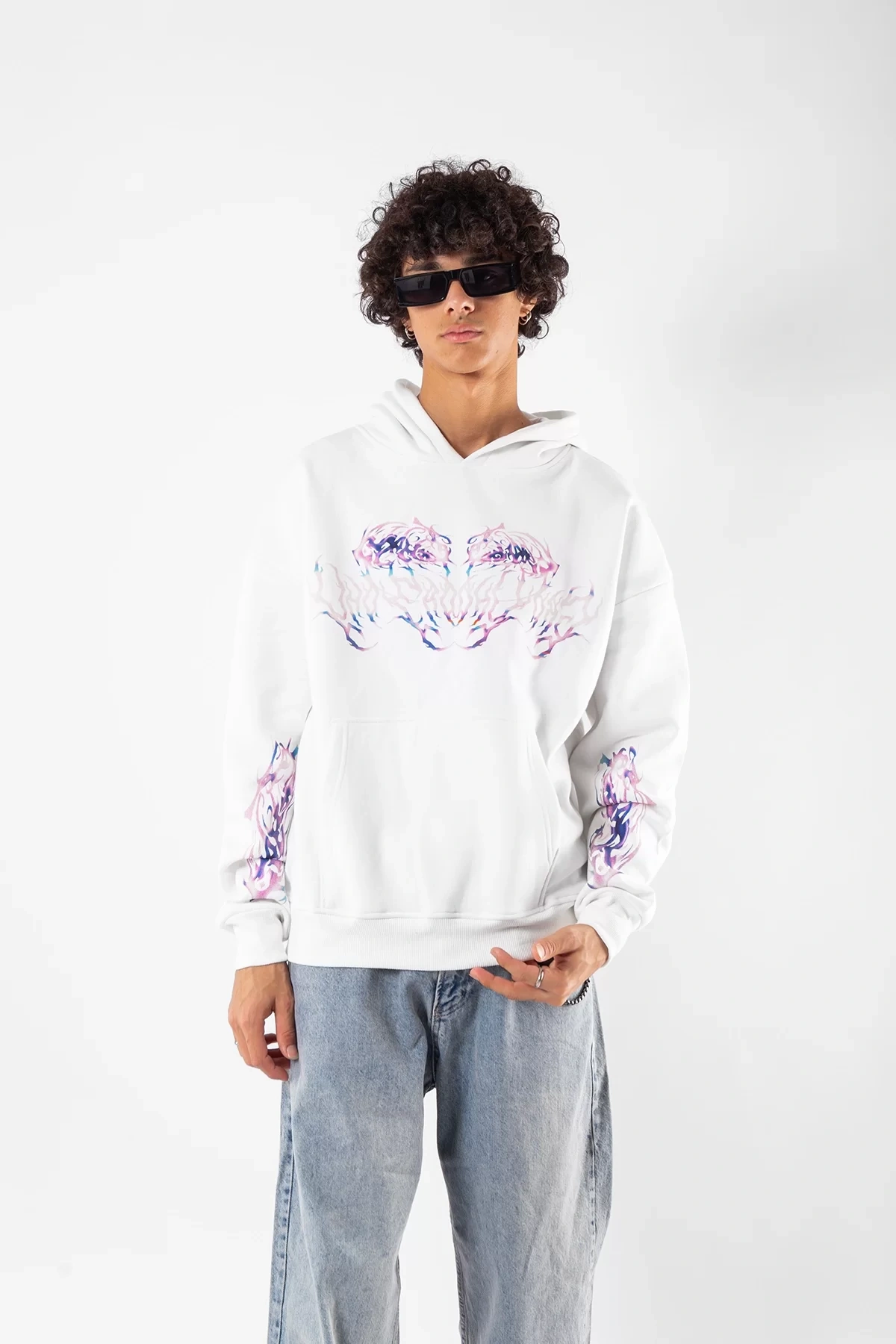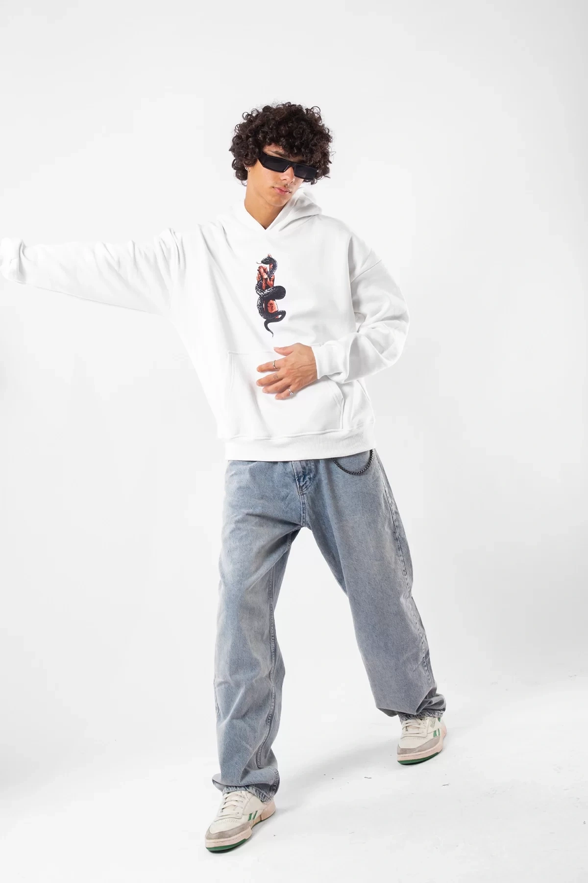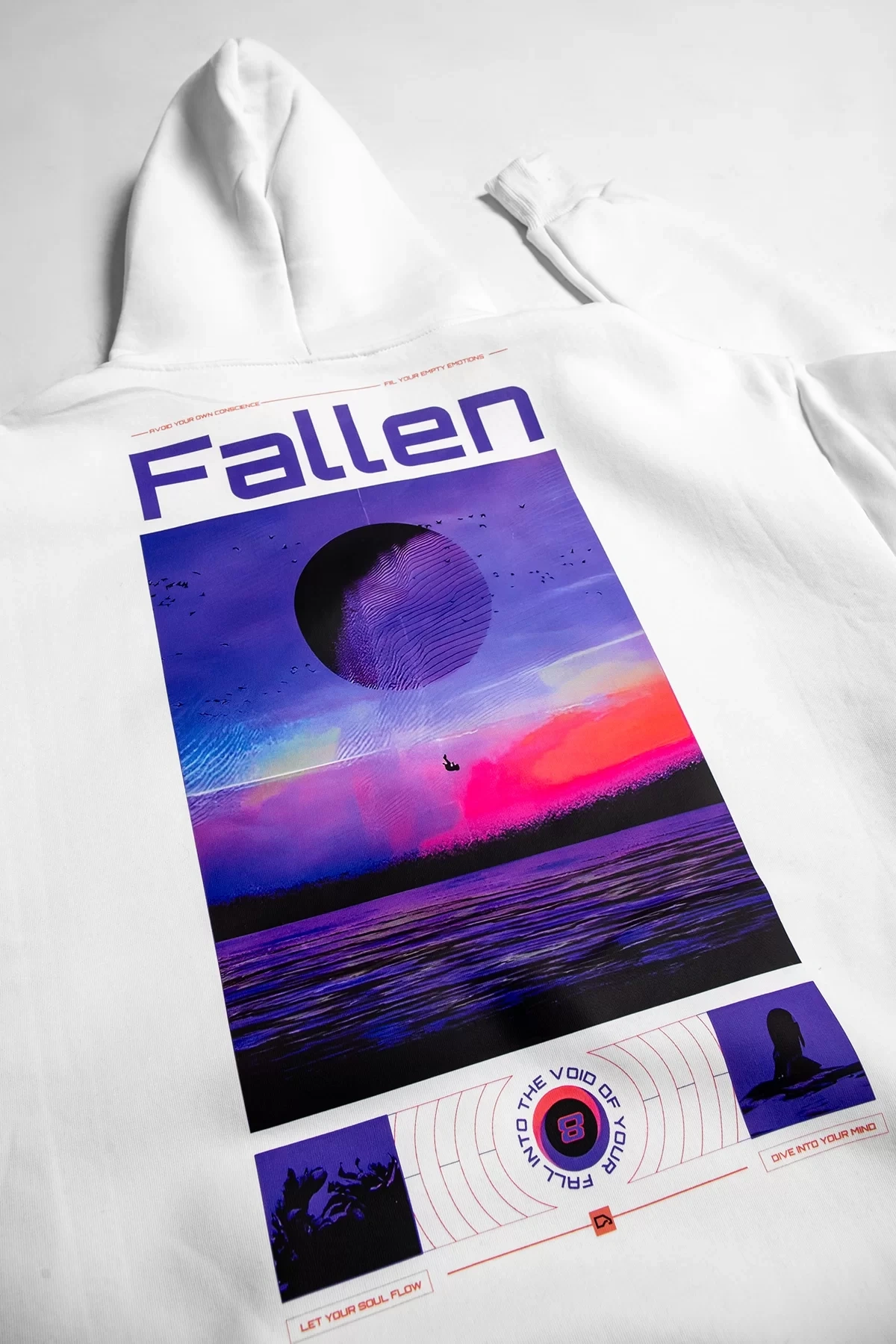 Fallen Baskılı Oversize Unisex Beyaz Hoodie