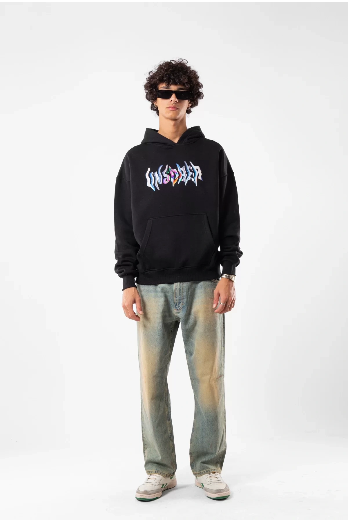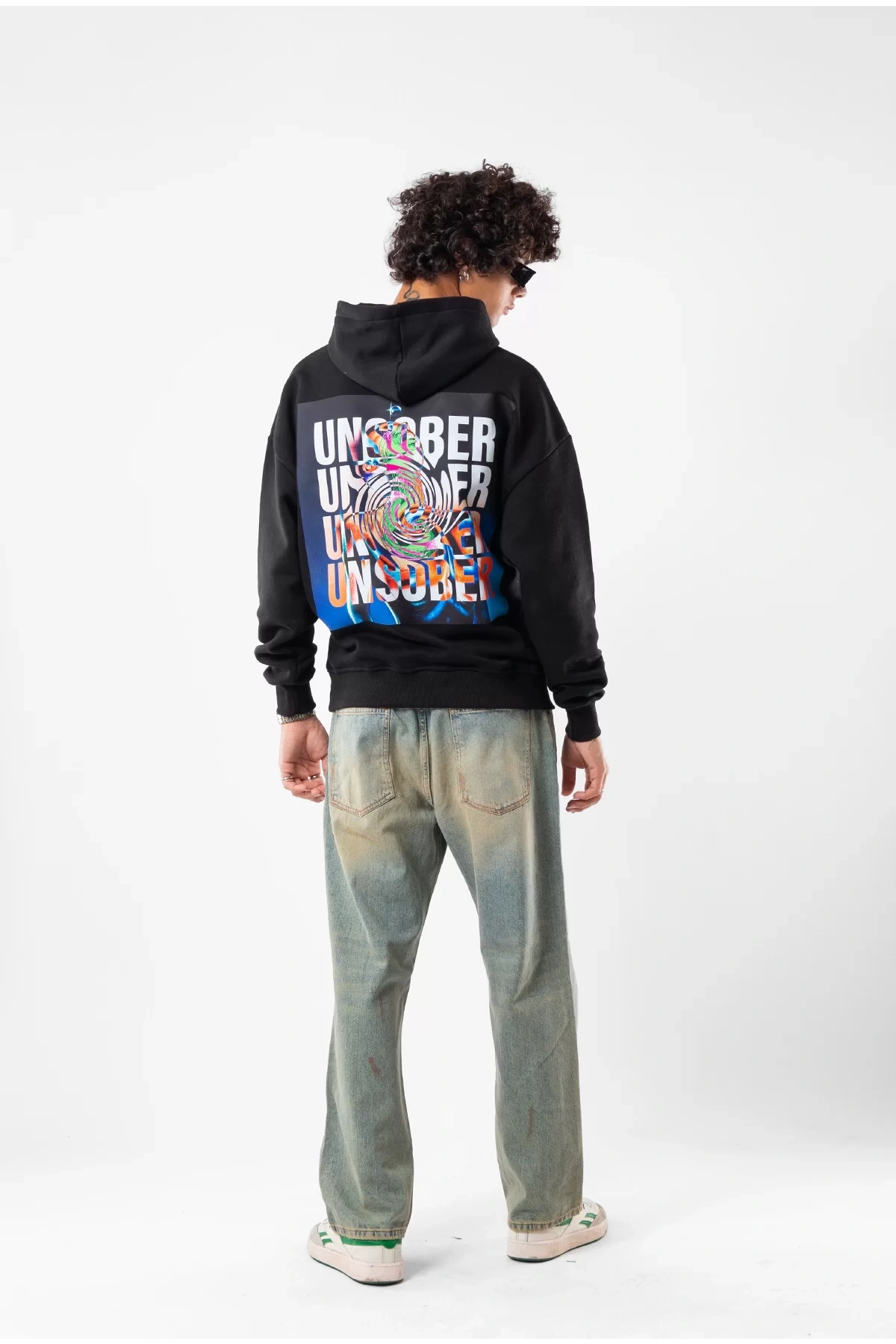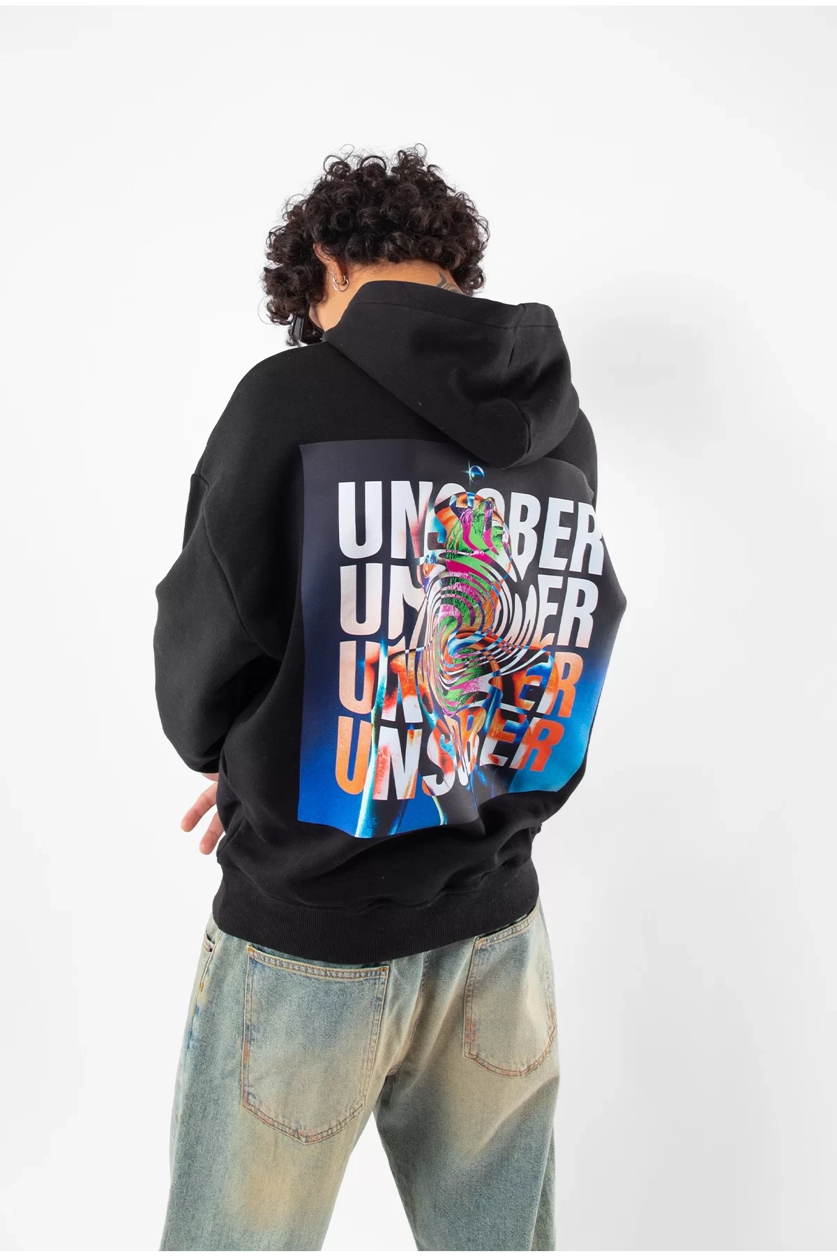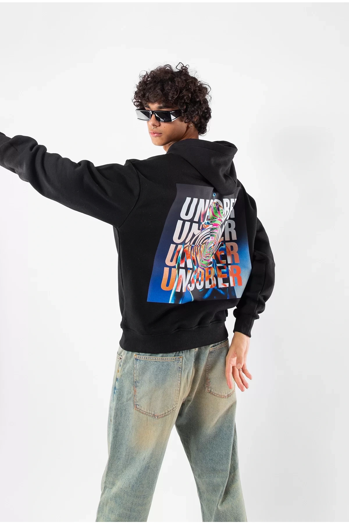 Unsober Baskılı Oversize Unisex Siyah Hoodie