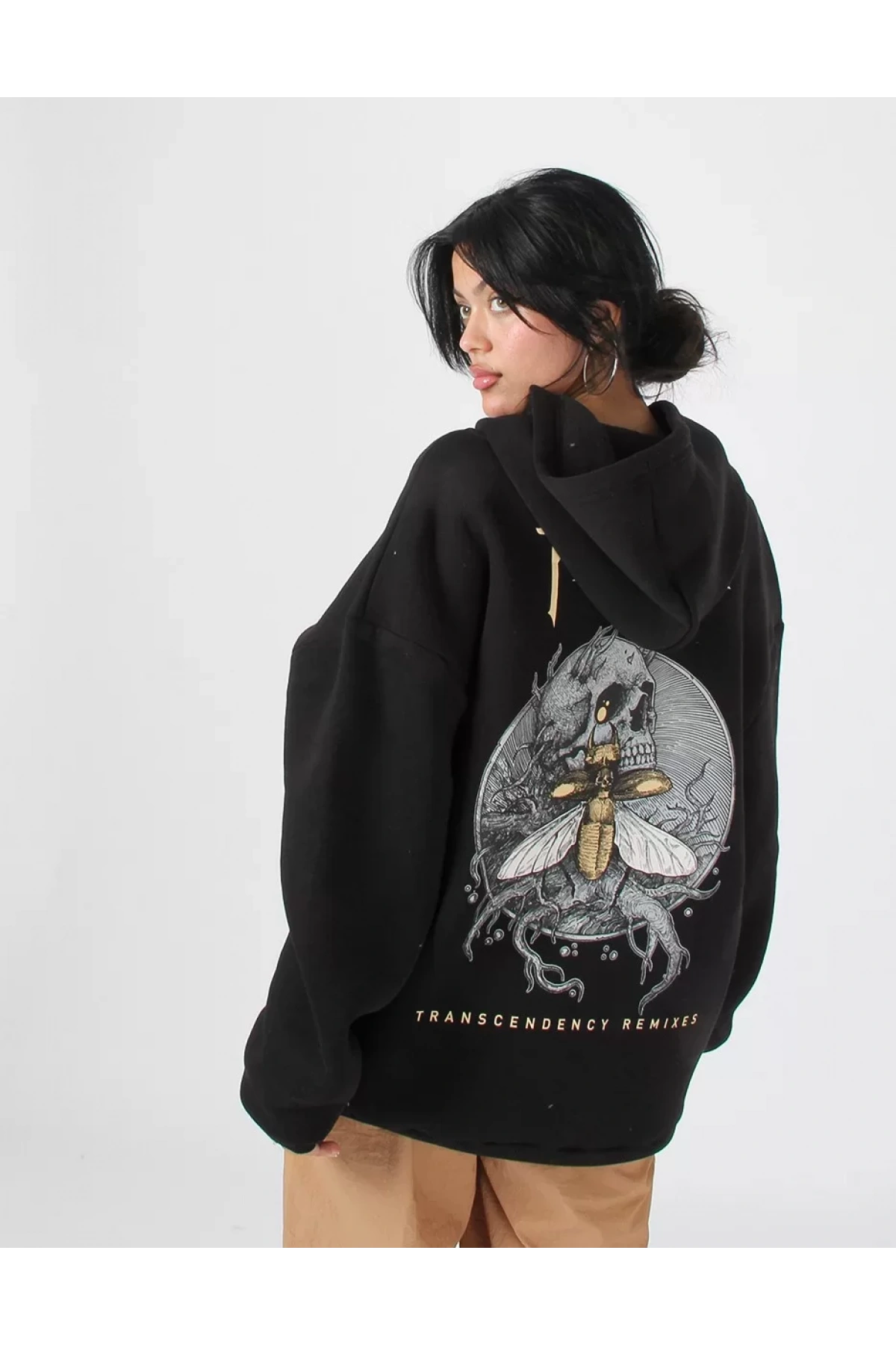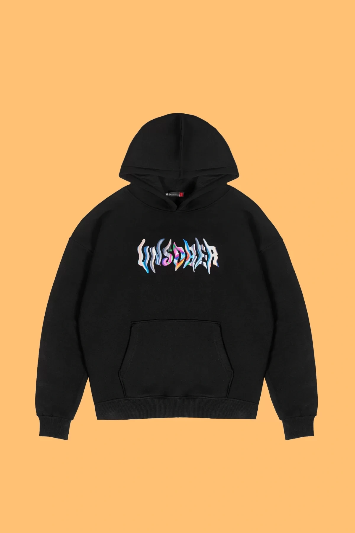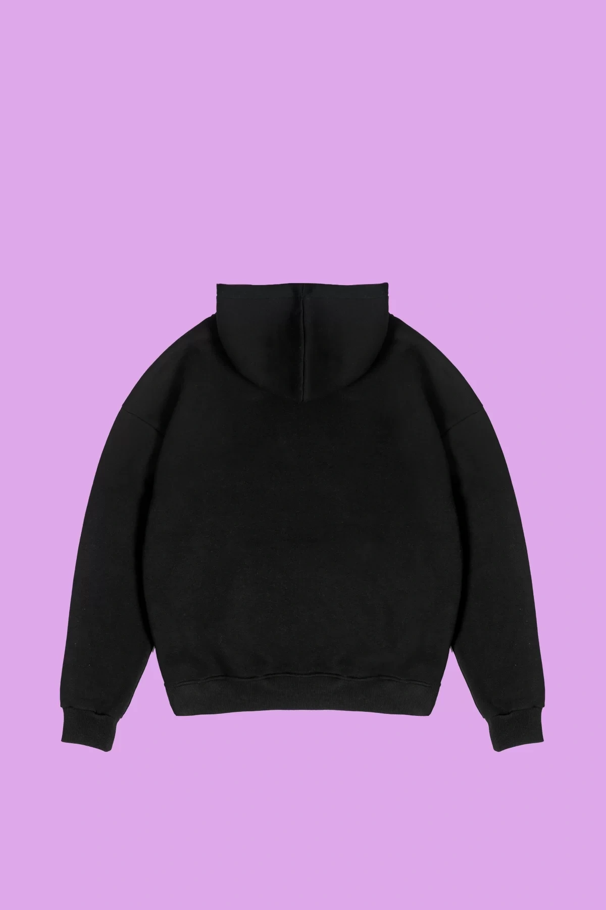 Unsober Baskılı Oversize Unisex Siyah Hoodie