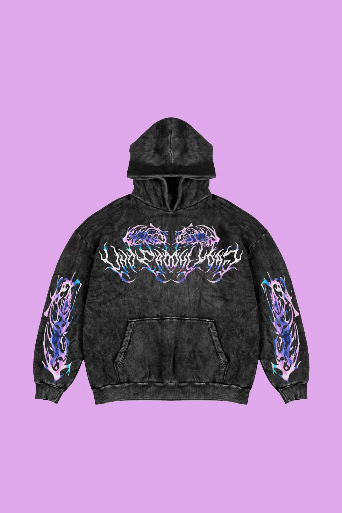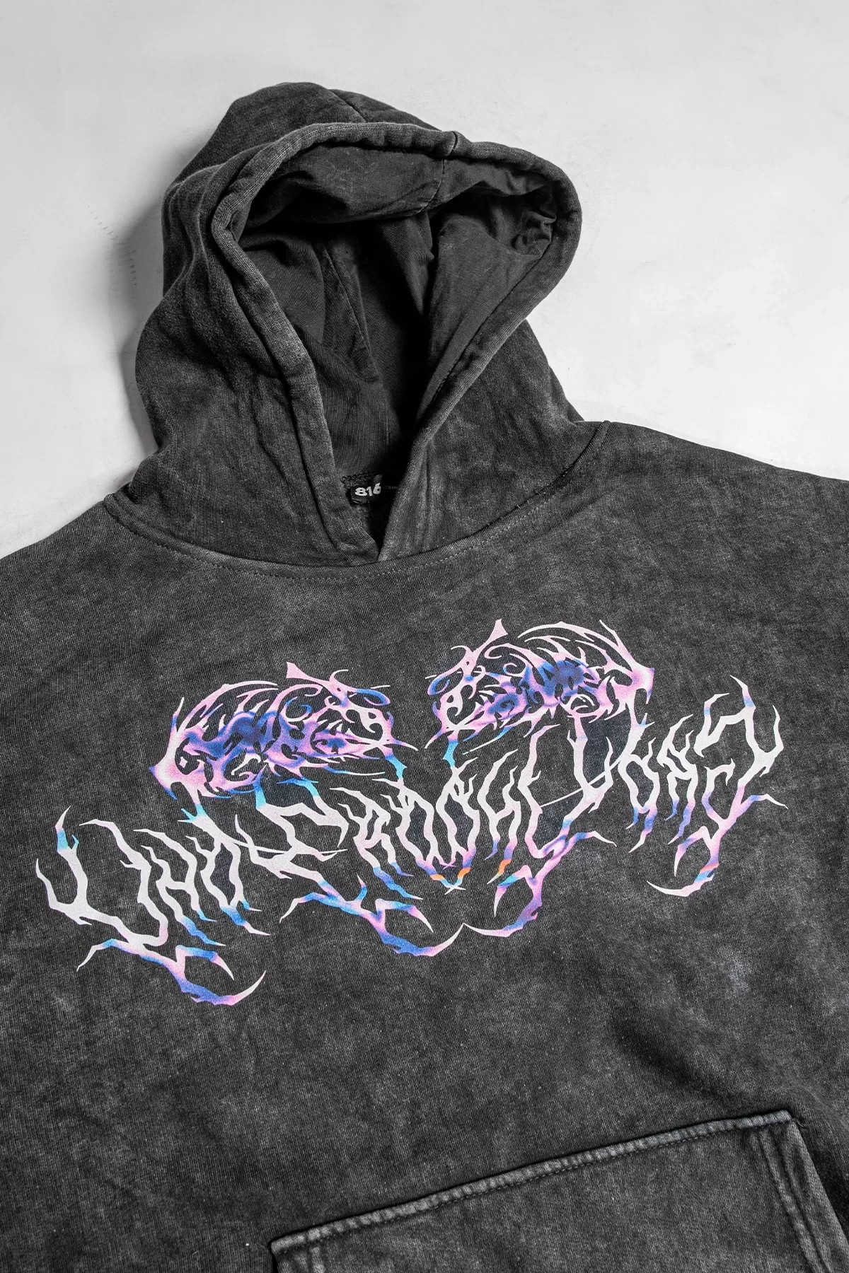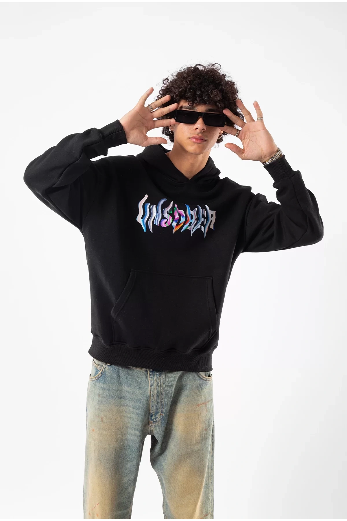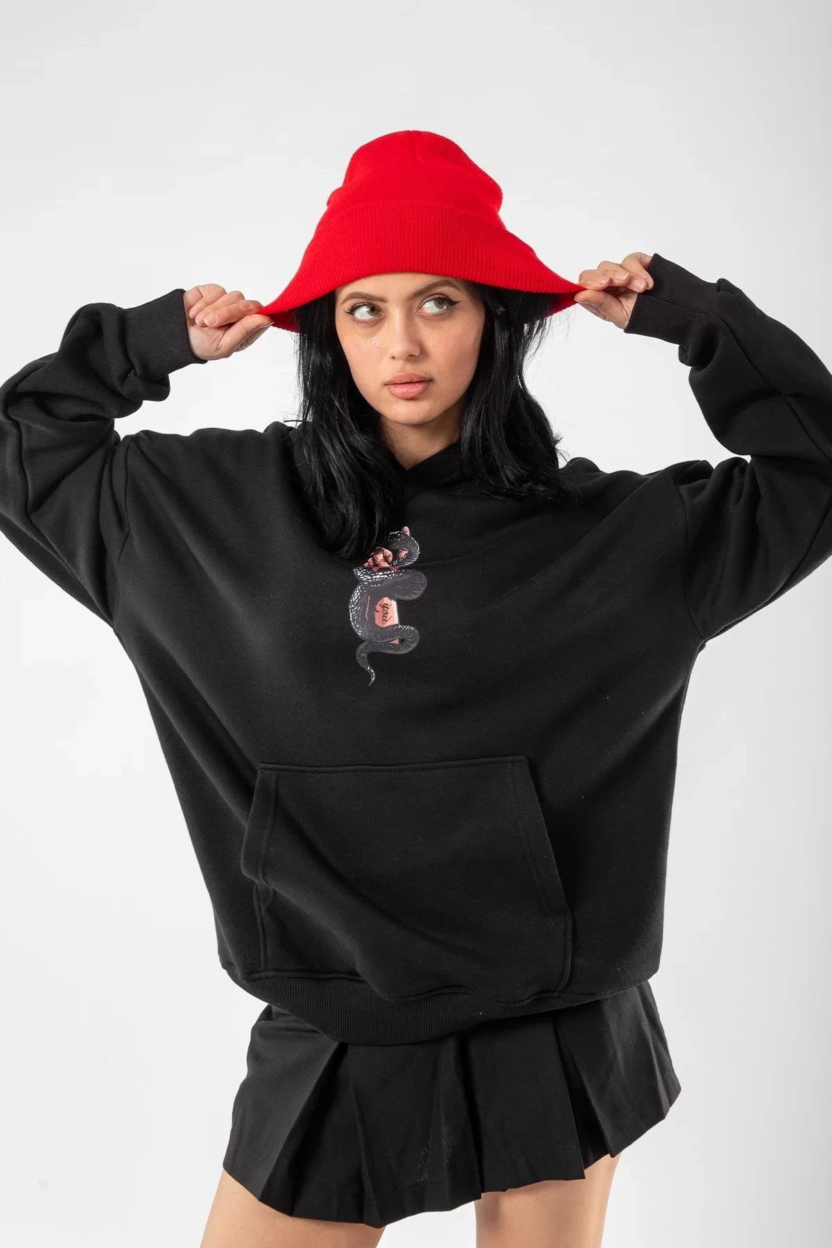 Unsober Baskılı Oversize Unisex Siyah Hoodie