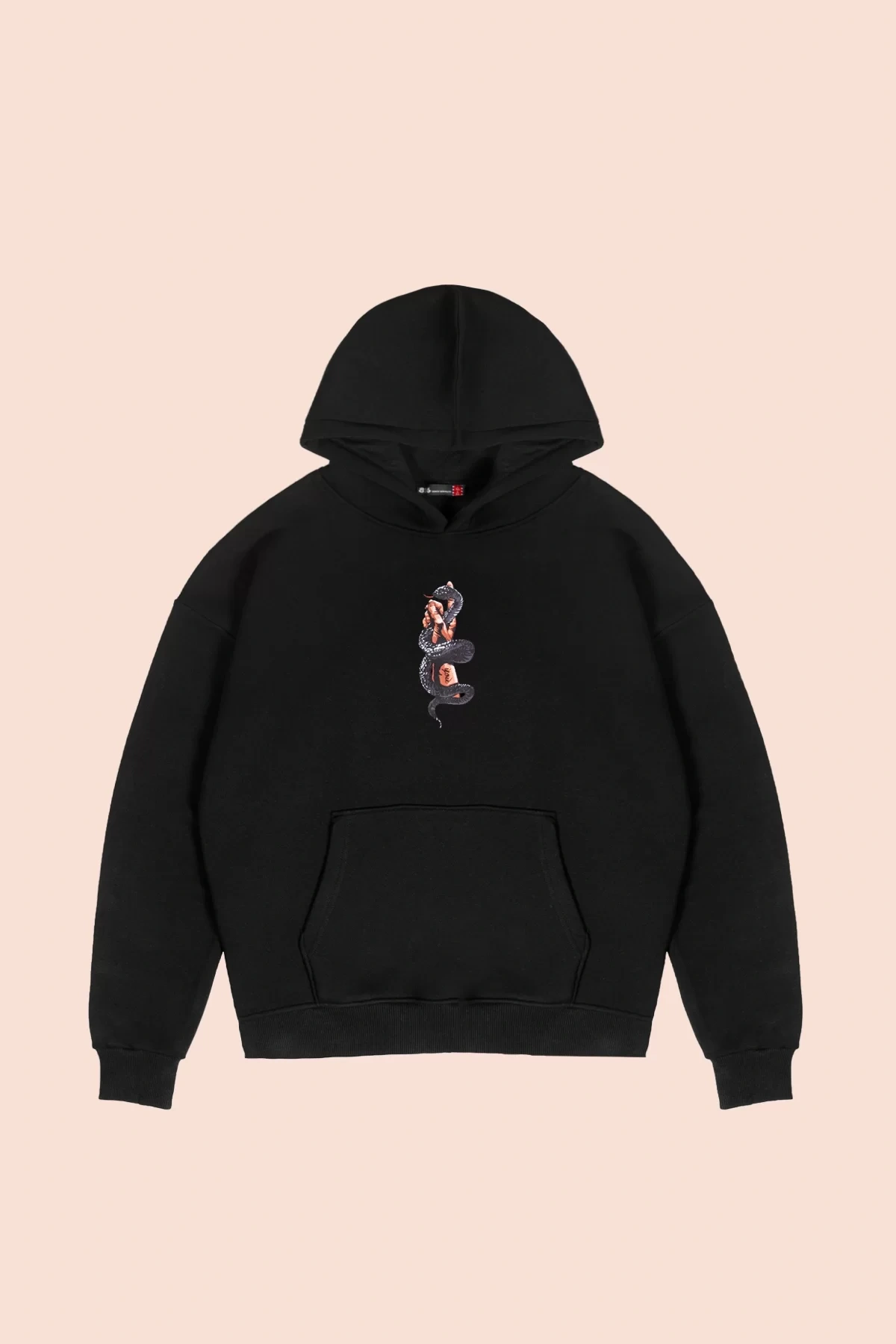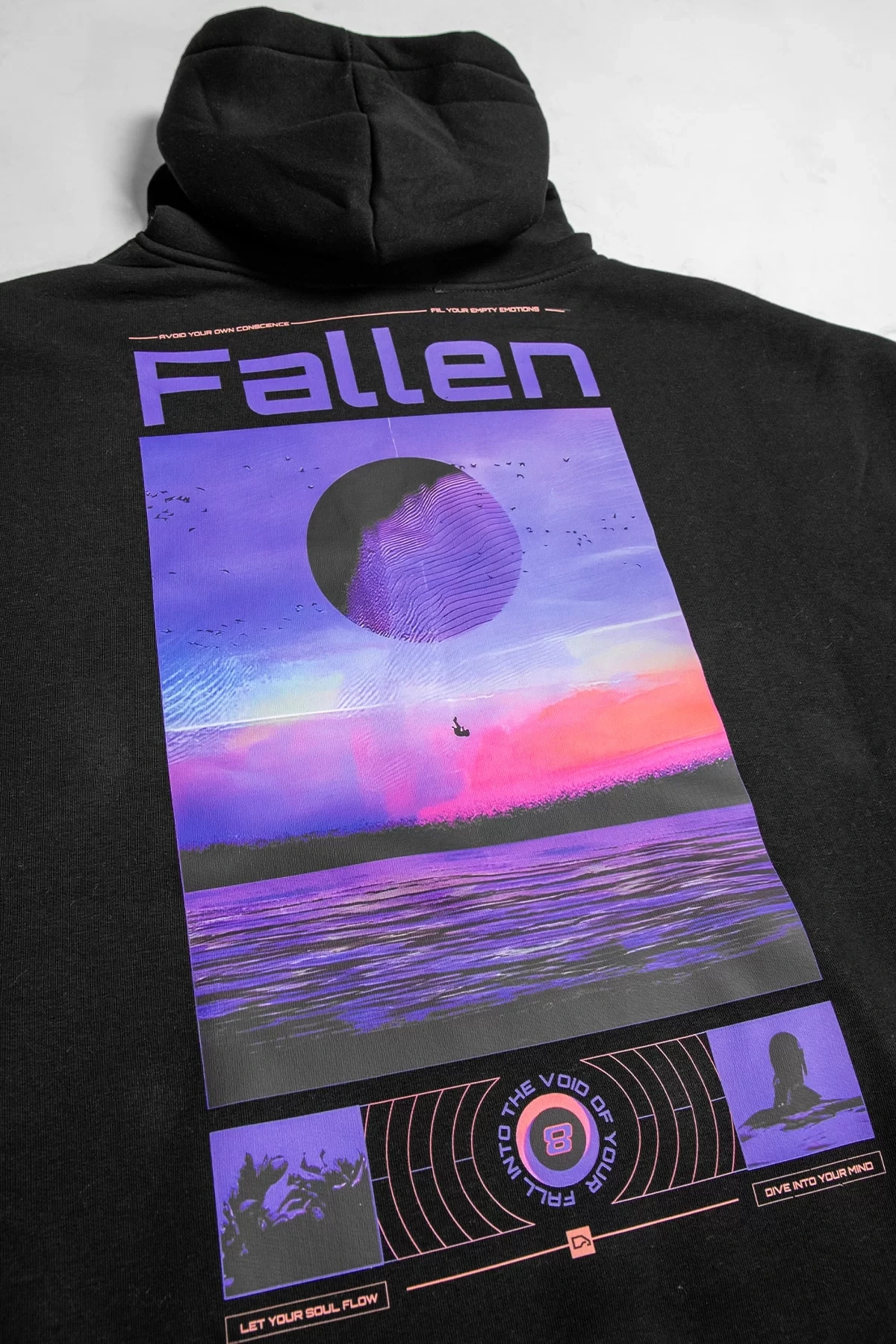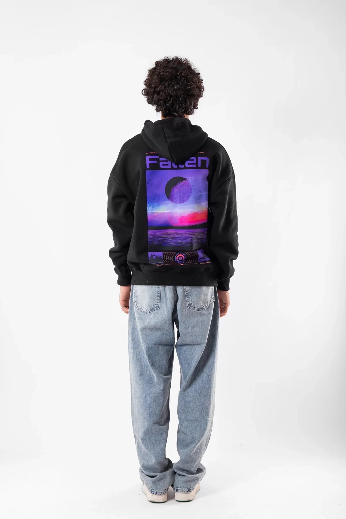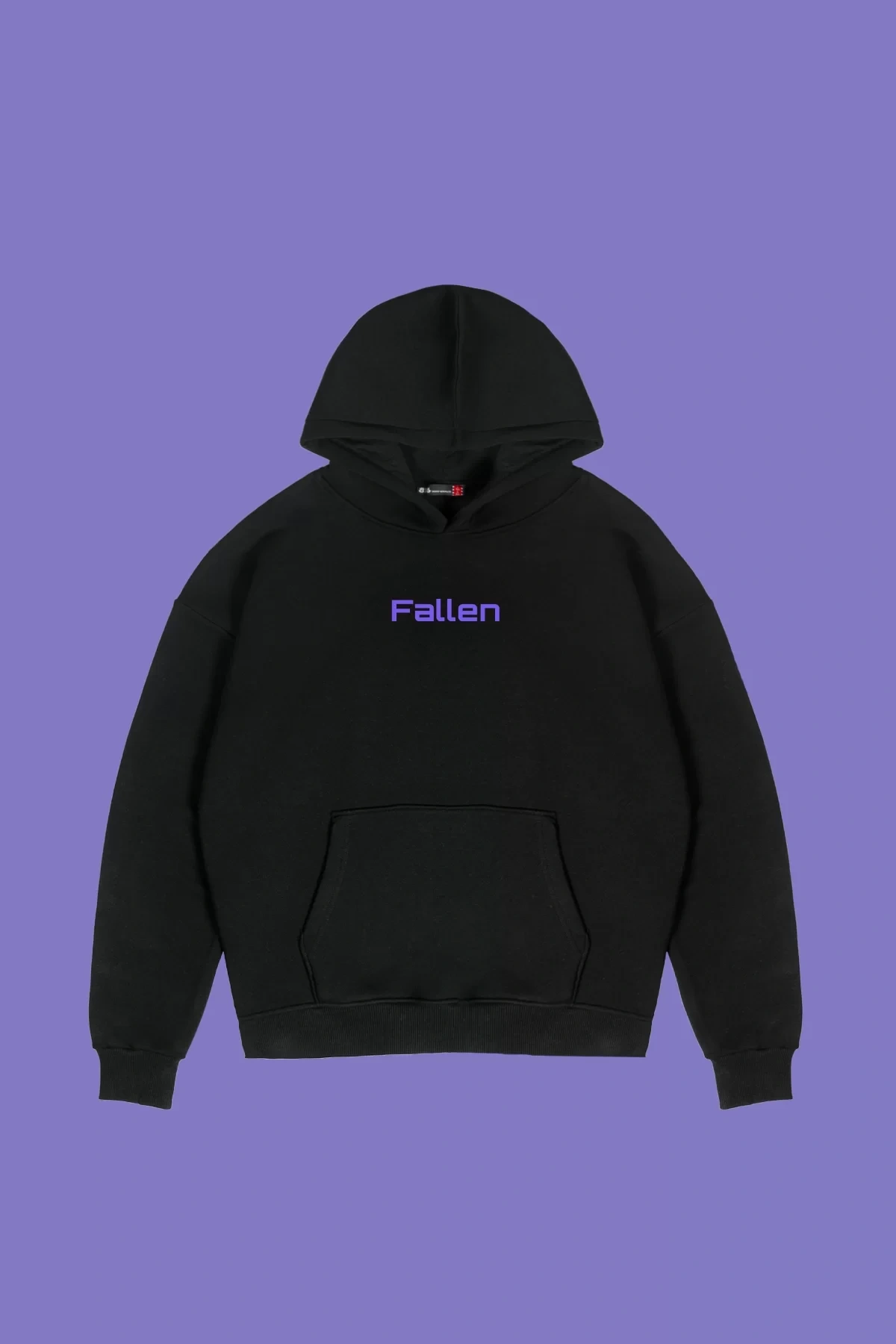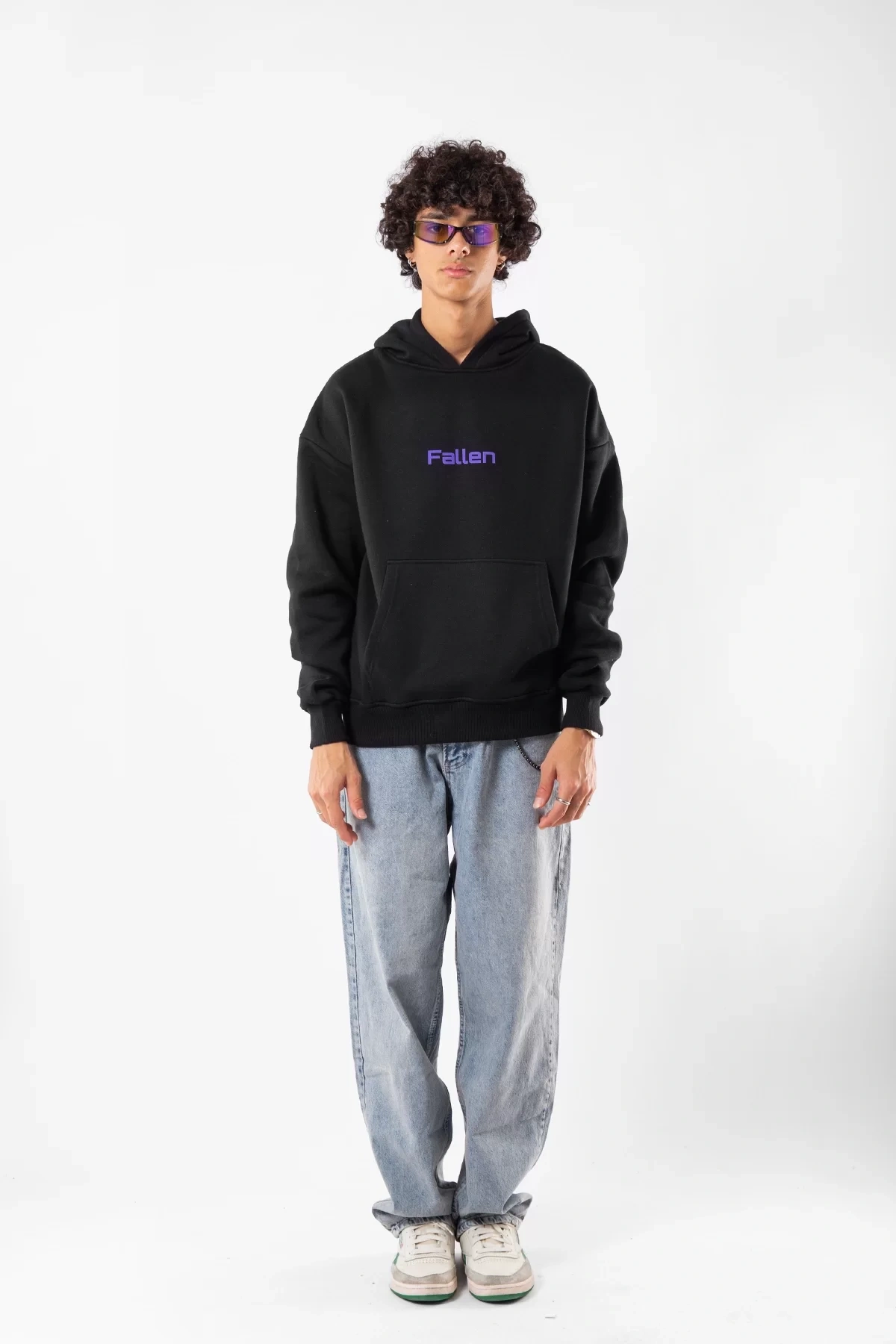 Fallen Baskılı Oversize Unisex Siyah Hoodie