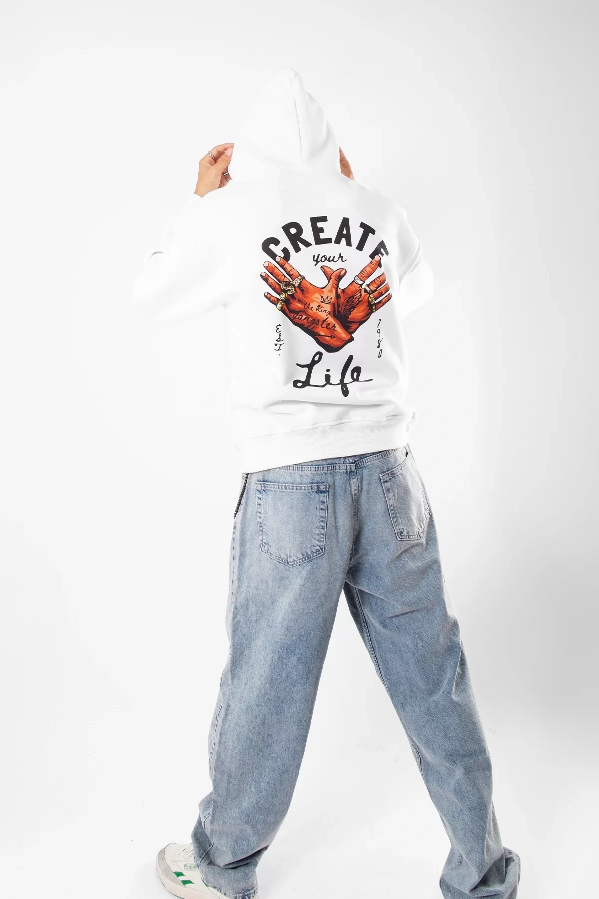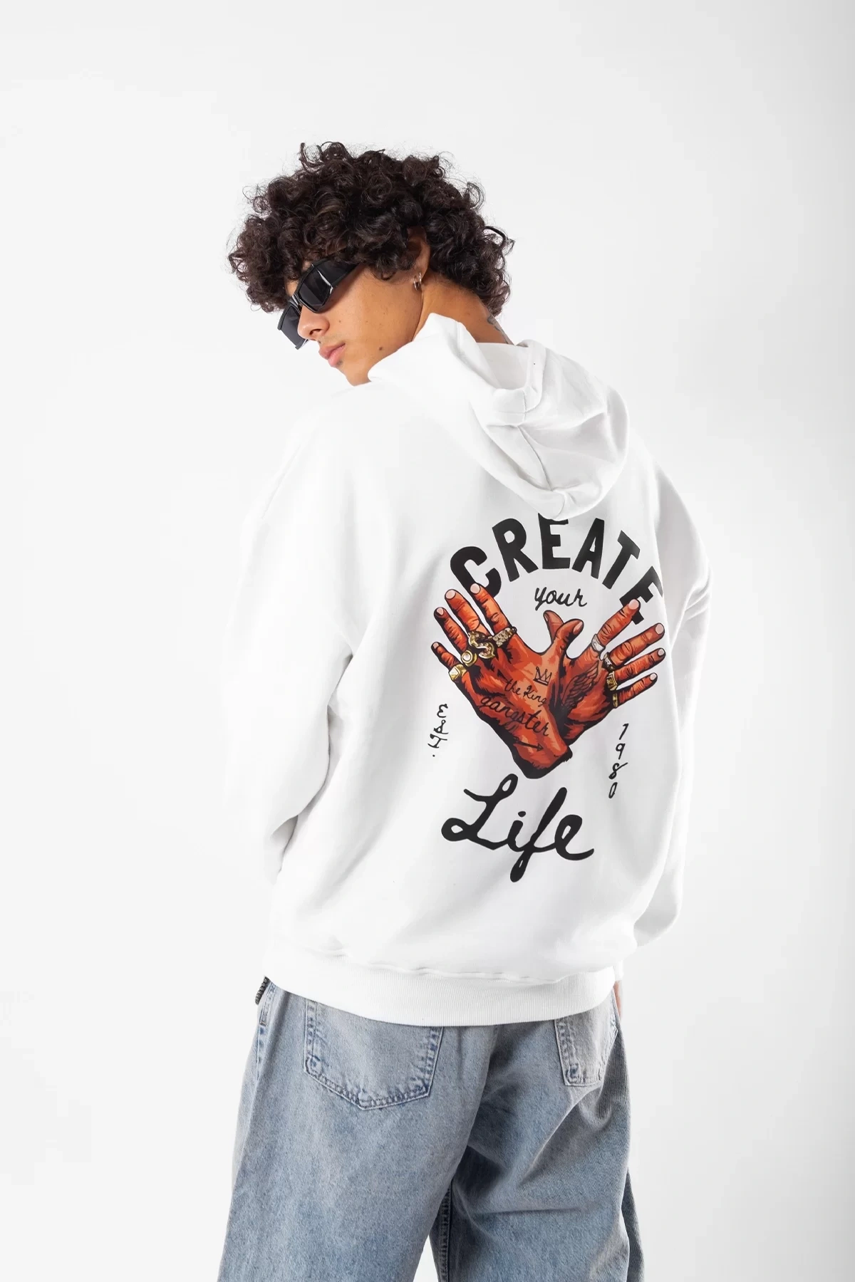 Eternal Text Baskılı Oversize Unisex Beyaz Hoodie