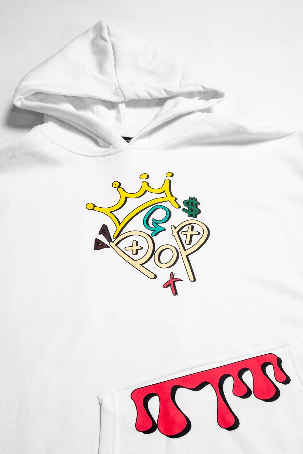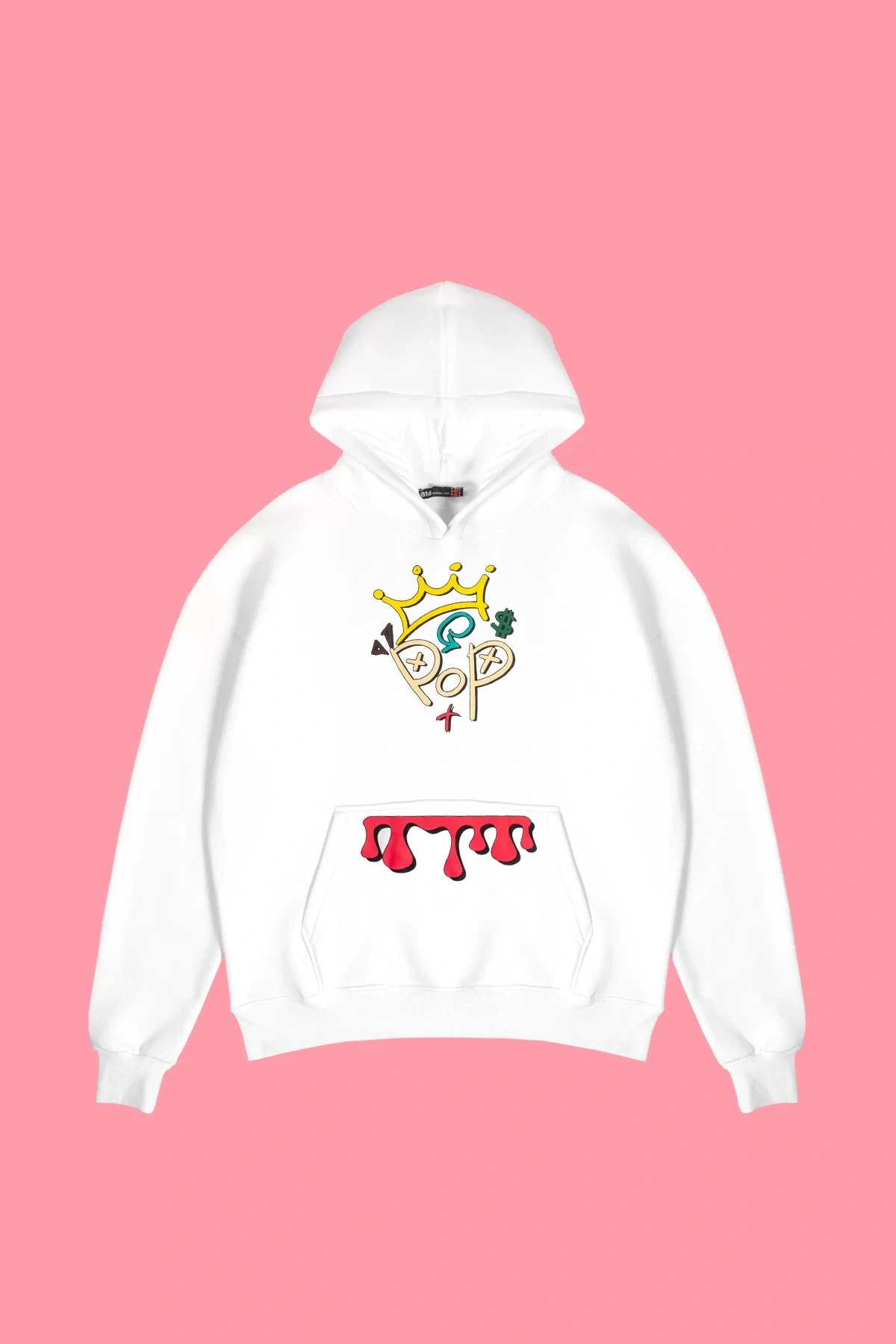 816 Stars Baskılı Oversize Unisex Beyaz Hoodie