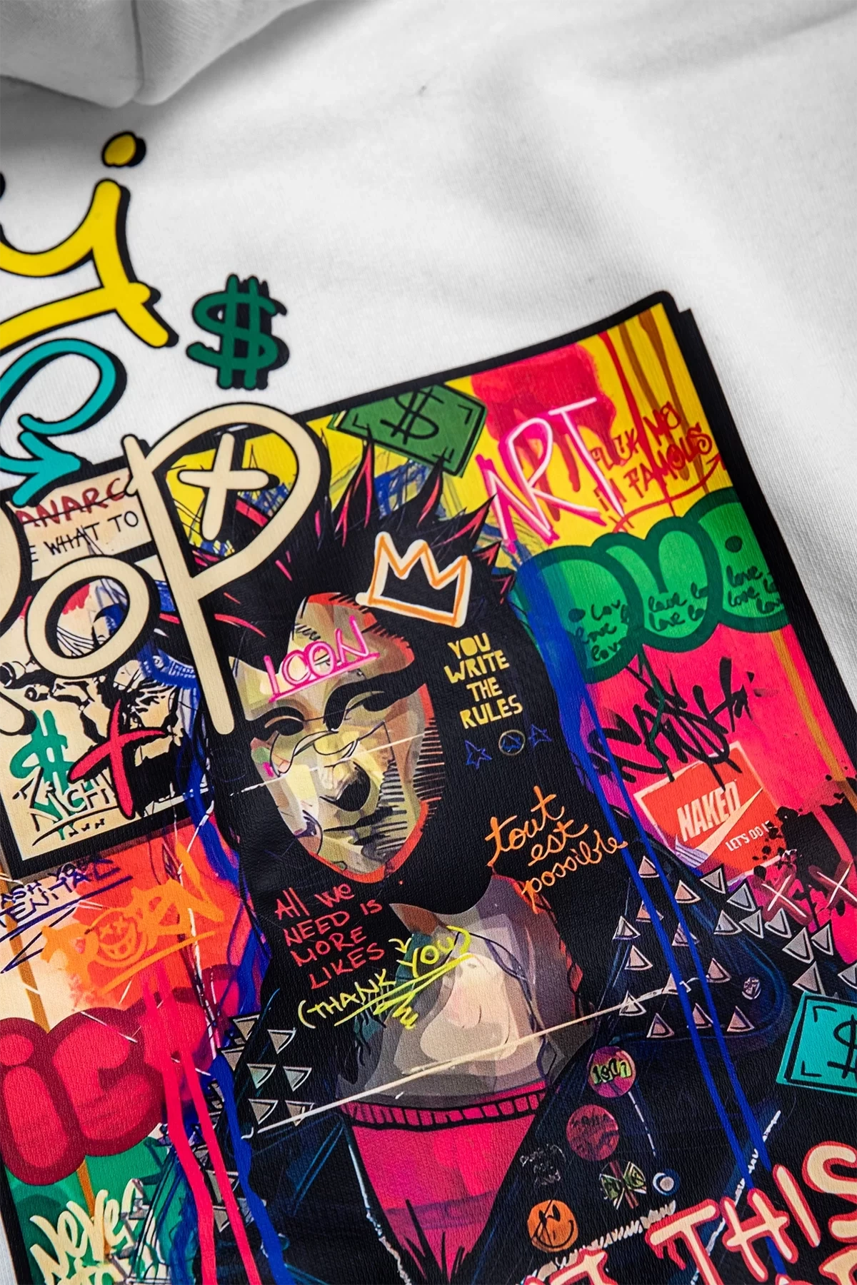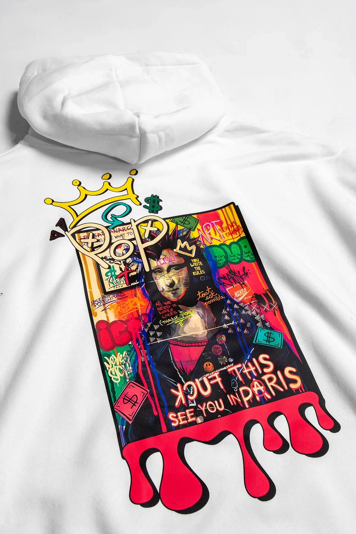 Mona Lisa Pop Art Baskılı Oversize Unisex Beyaz Hoodie