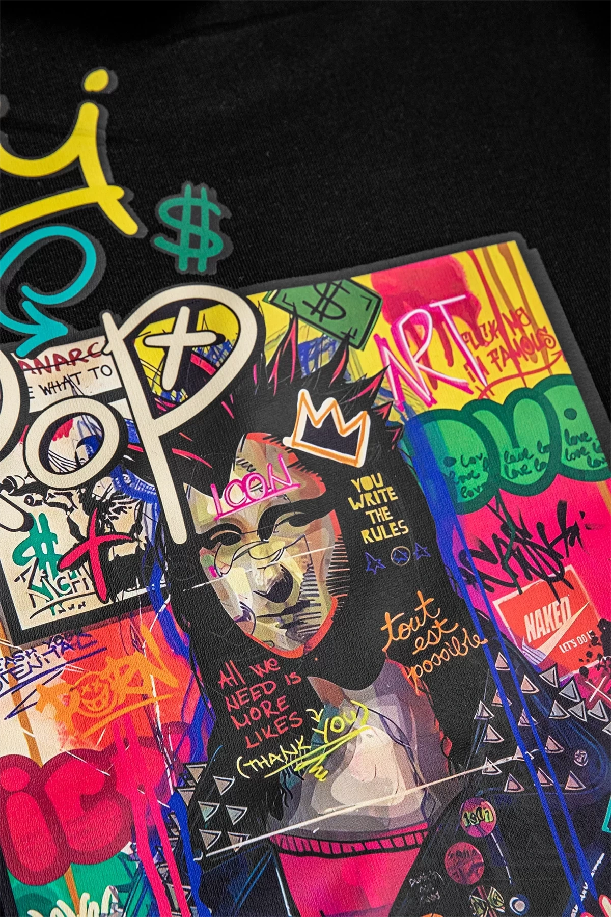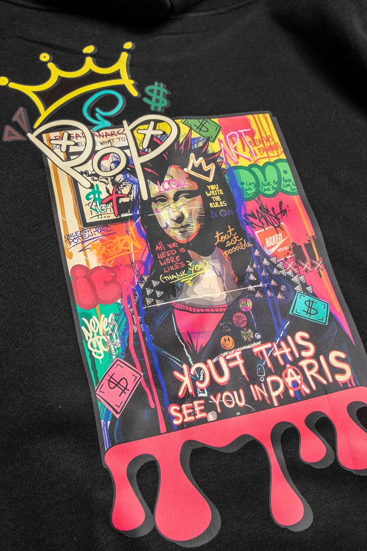 Mona Lisa Pop Art Baskılı Oversize Unisex Siyah Hoodie