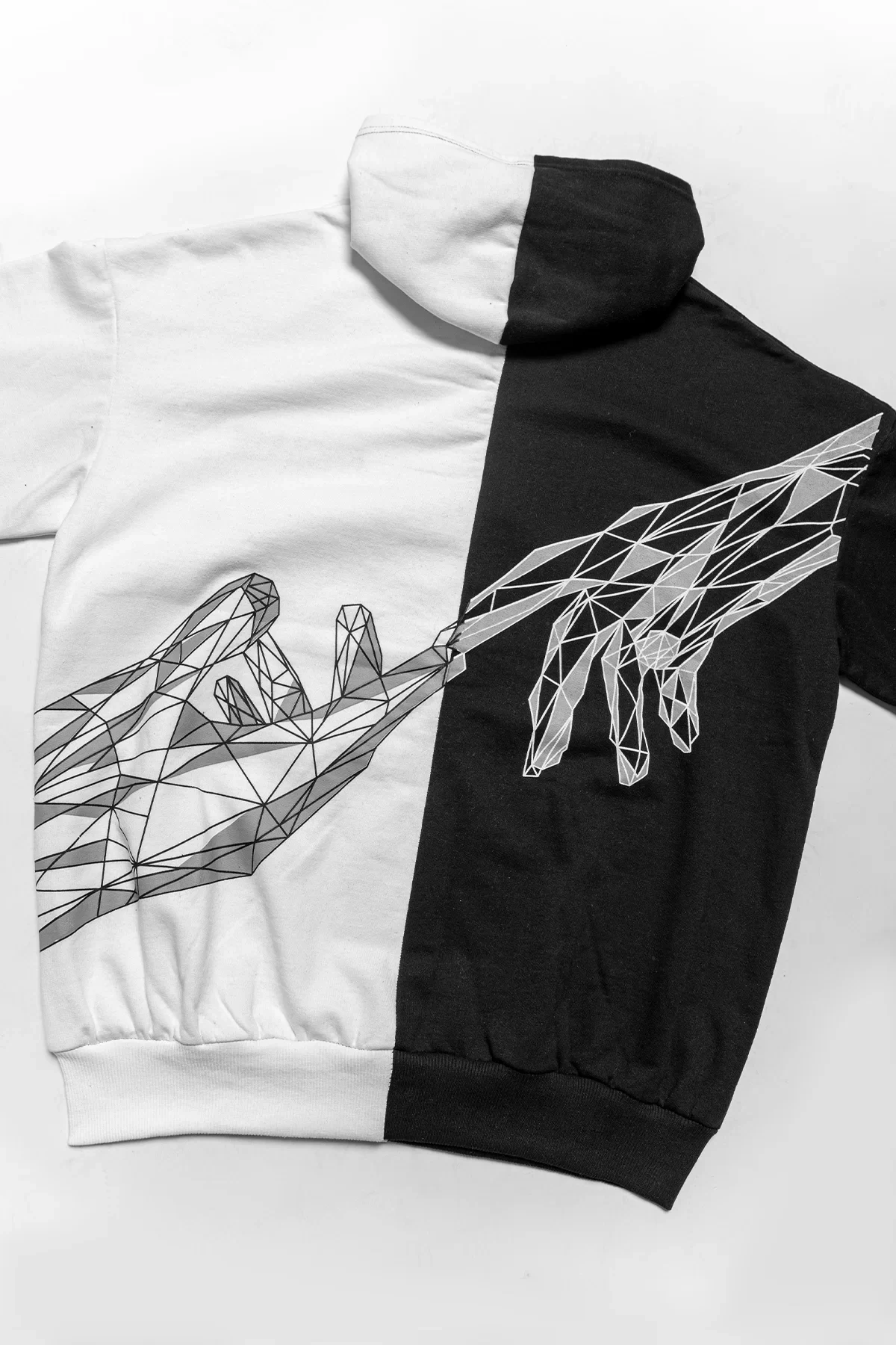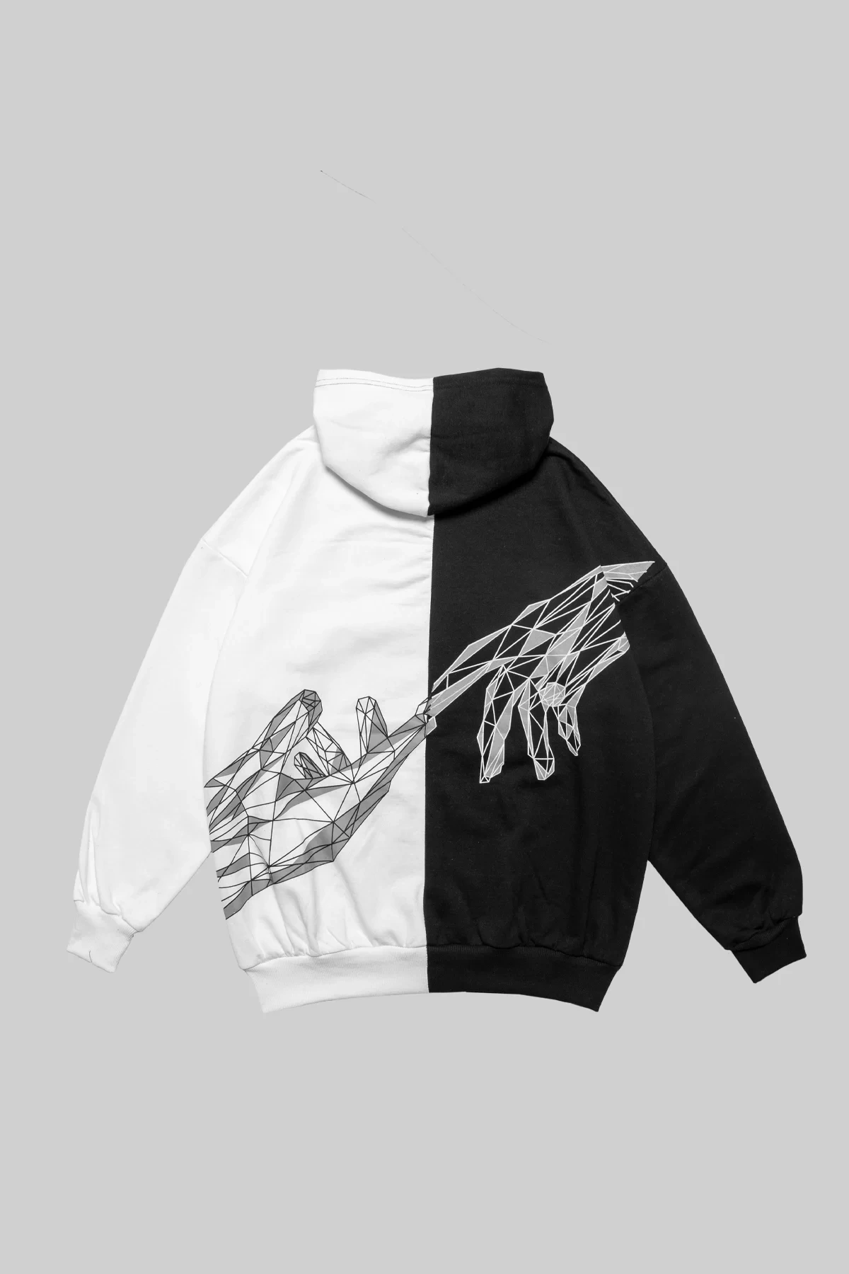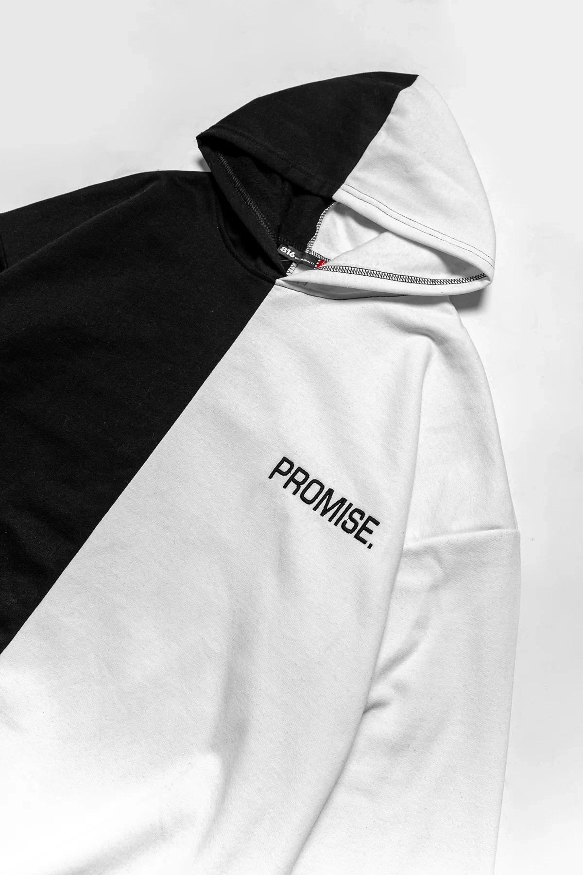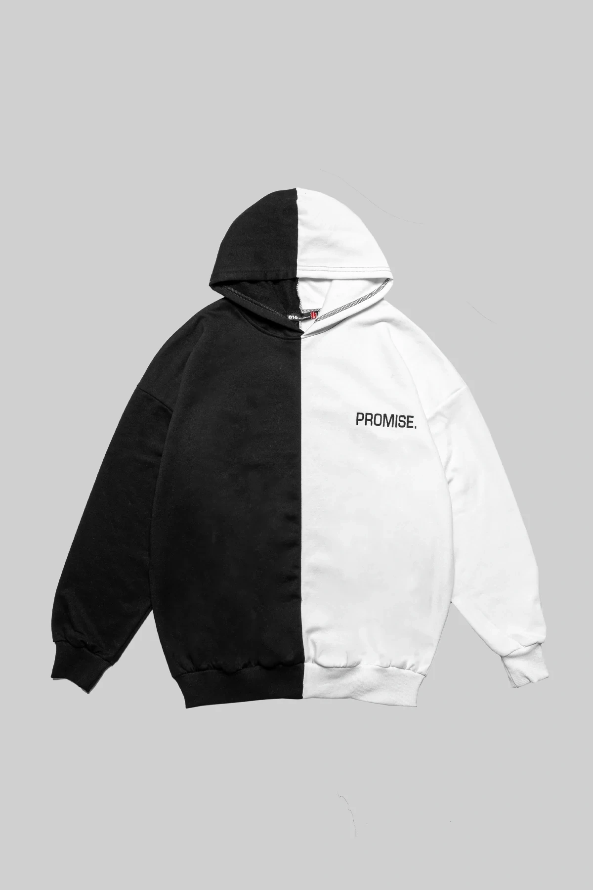 Parçalı Promise Sırt Baskılı Oversize Kapüşonlu Sweatshirt