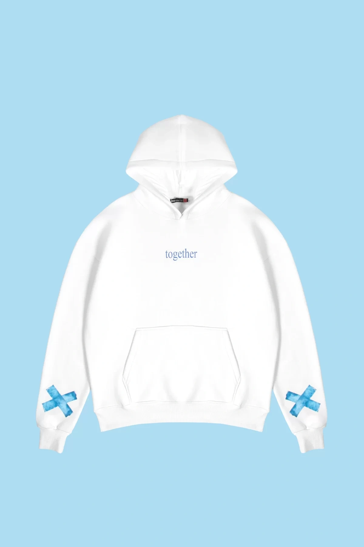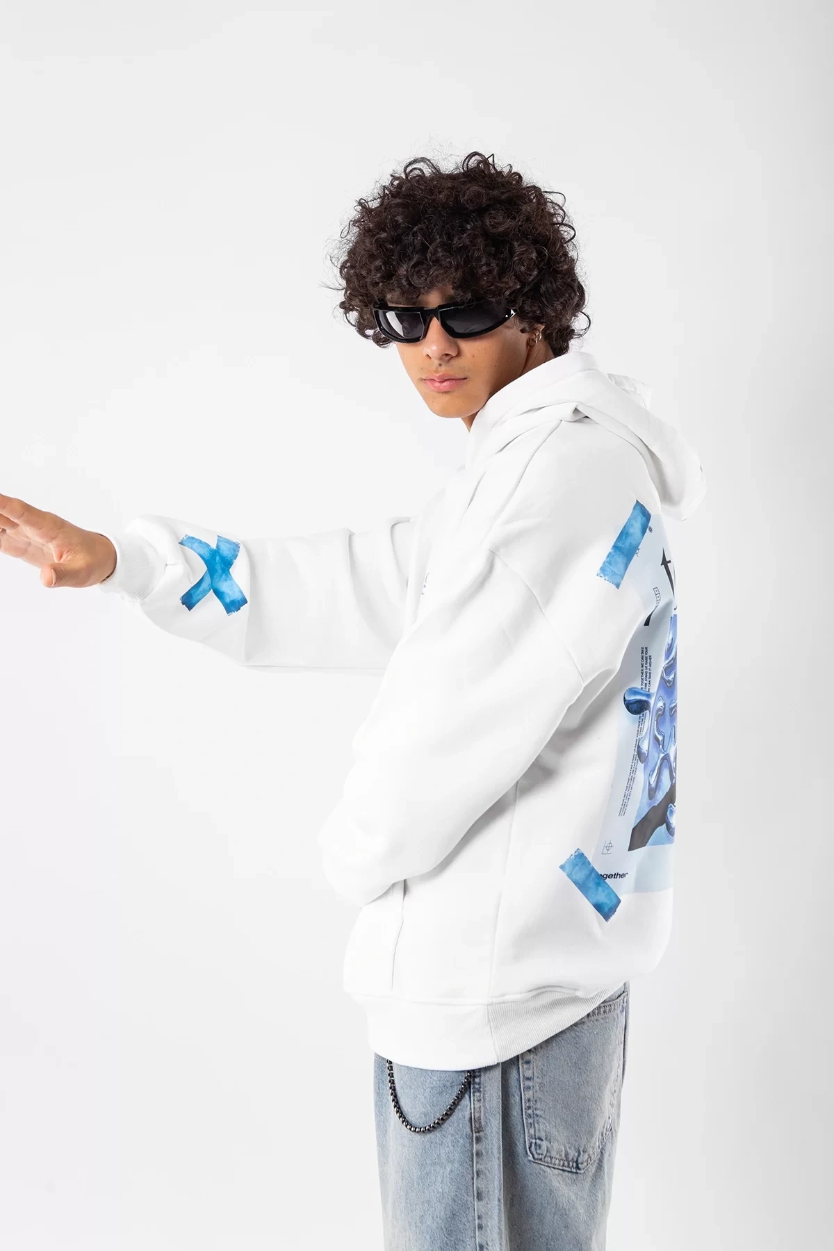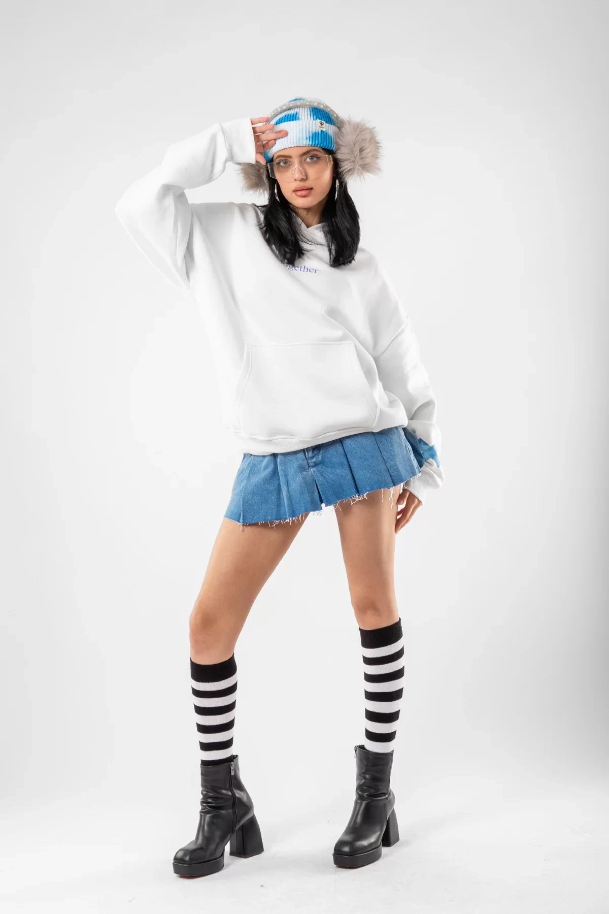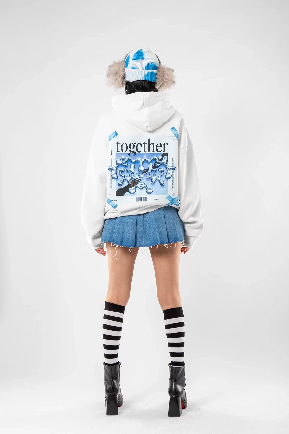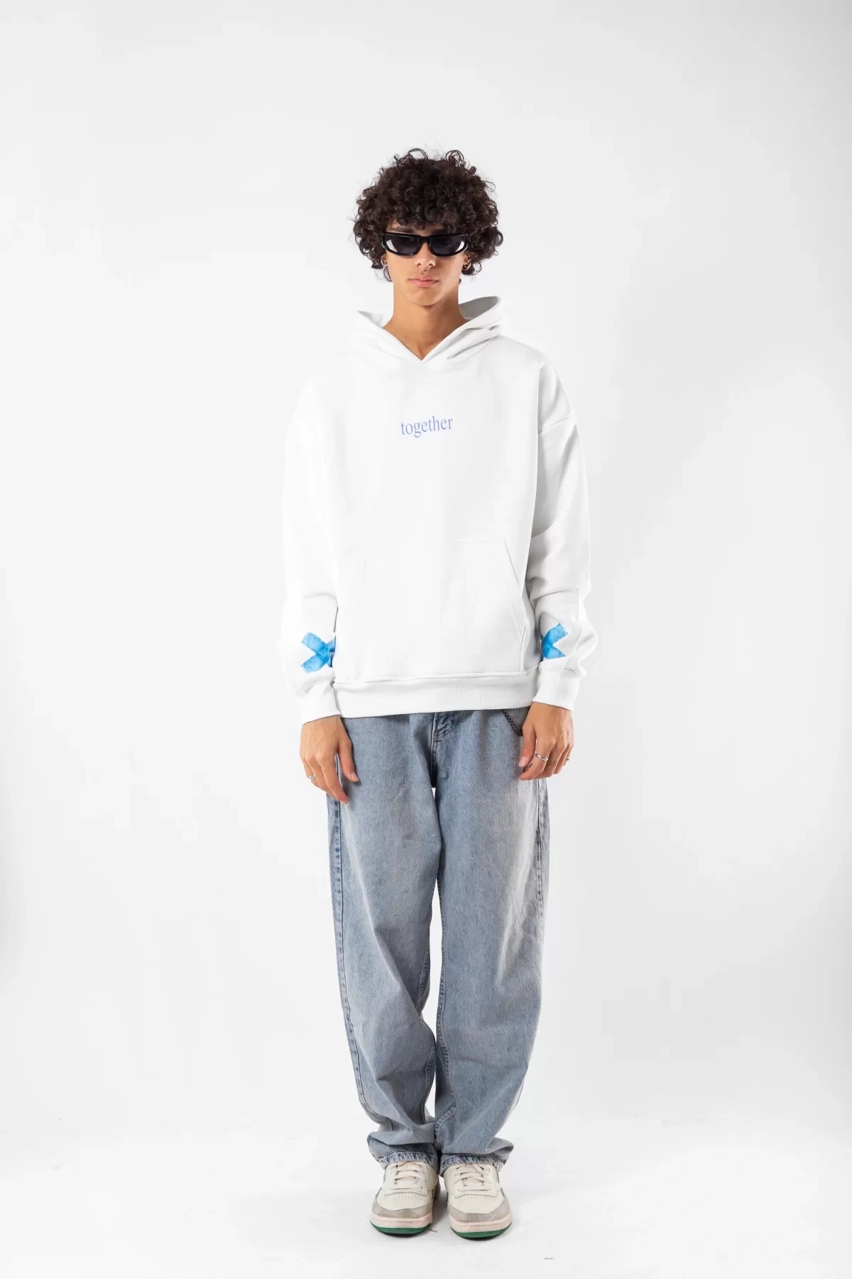 Together Baskılı Oversize Unisex Beyaz Hoodi