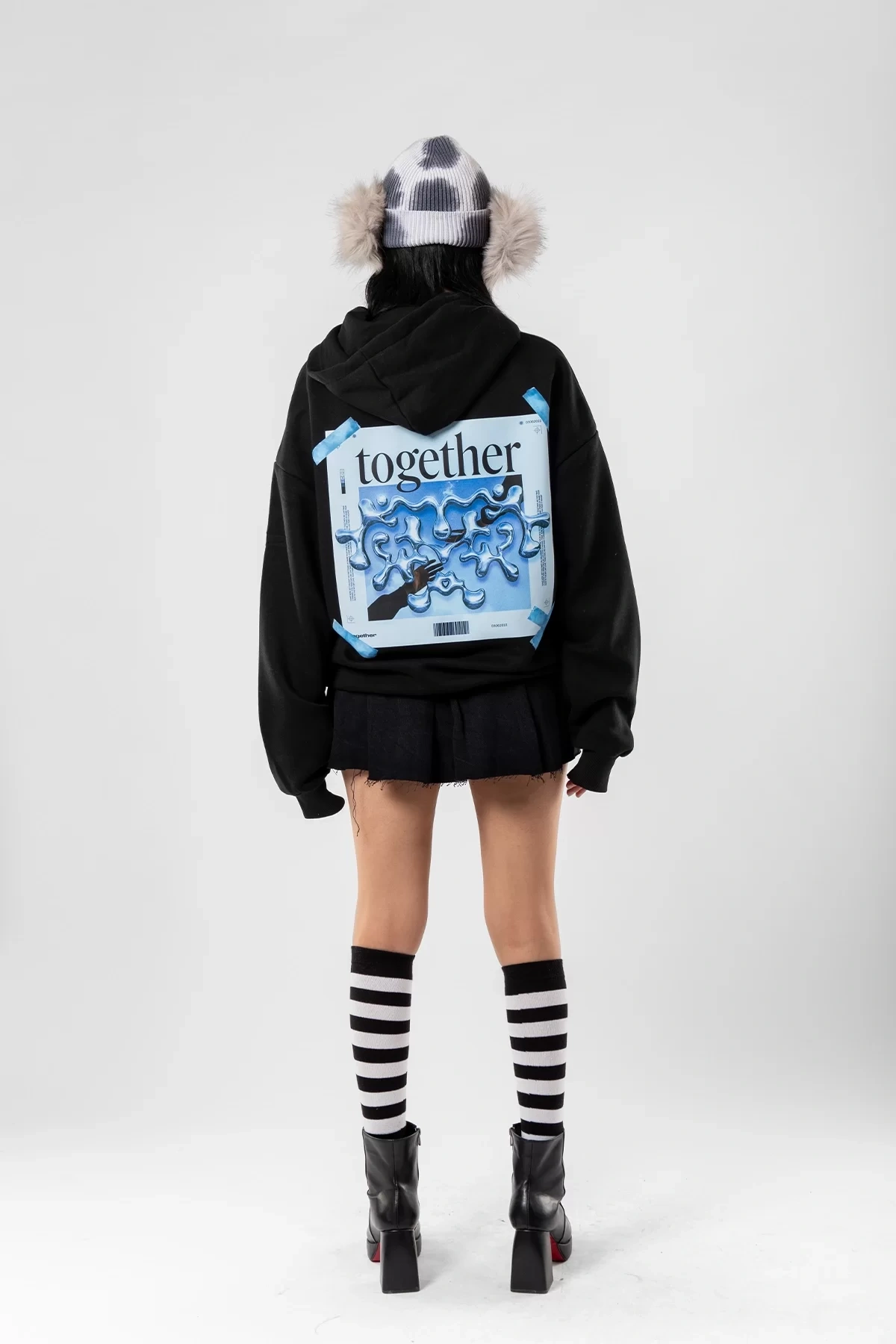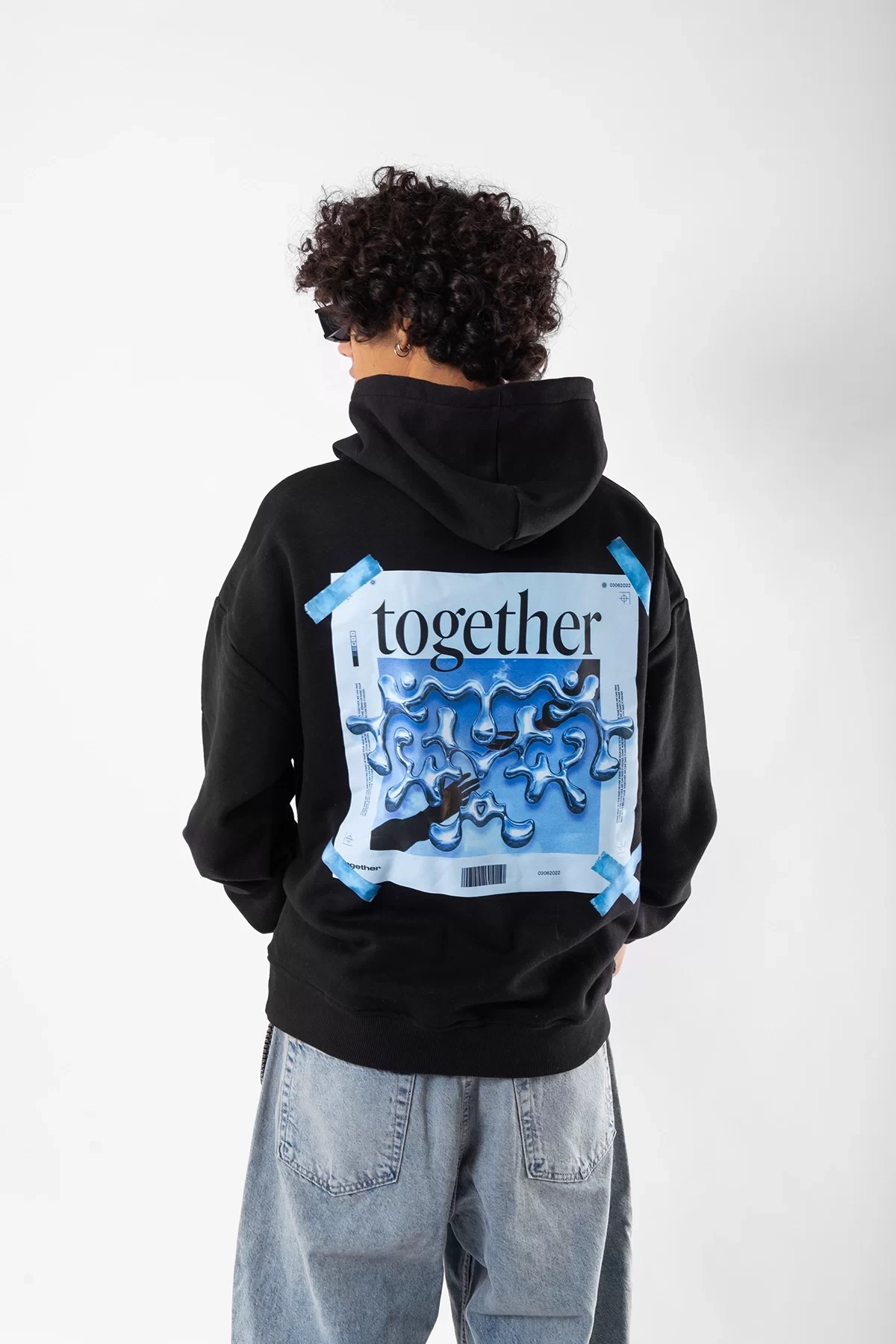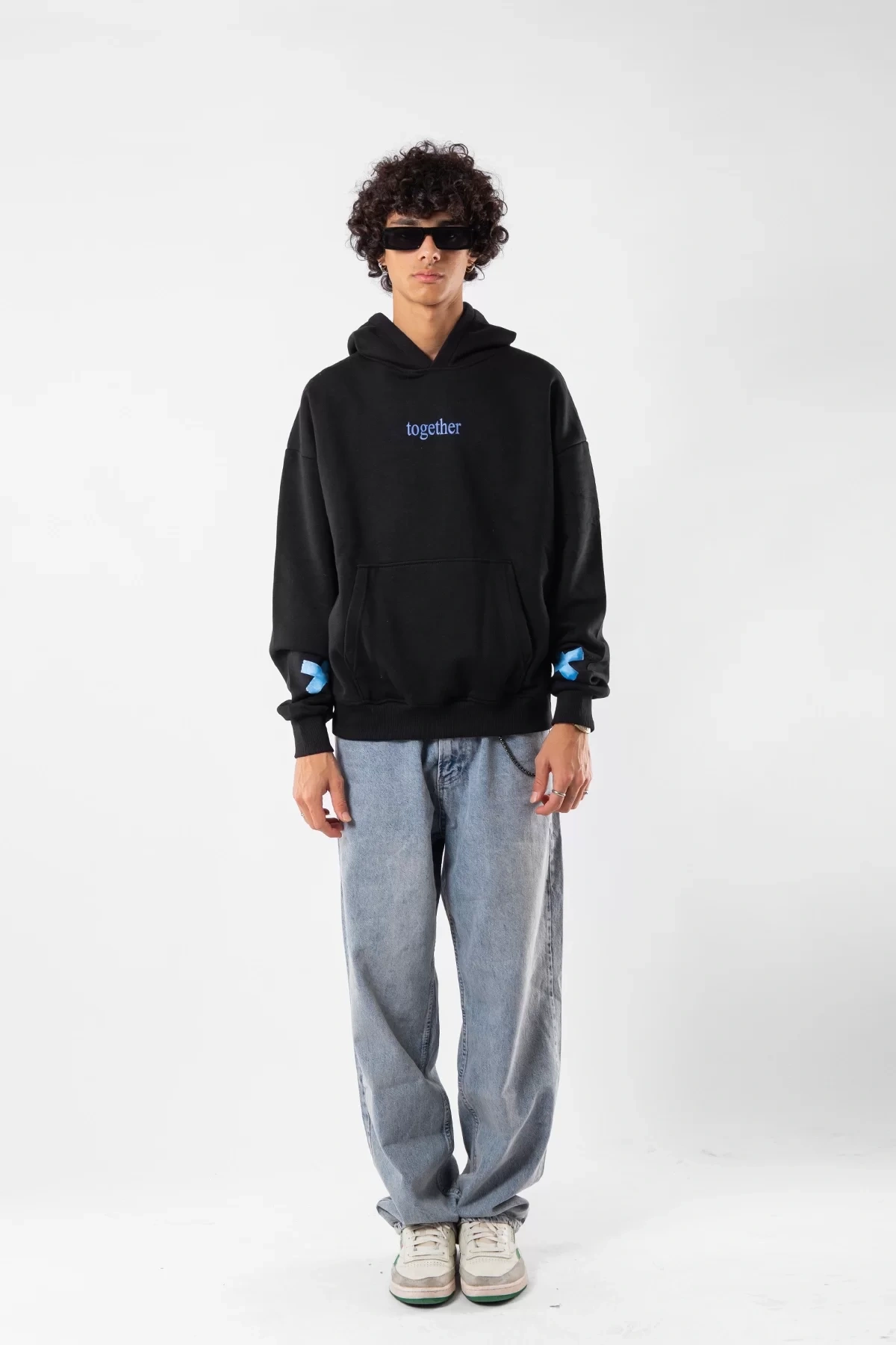 Together Baskılı Oversize Unisex Siyah Hoodie