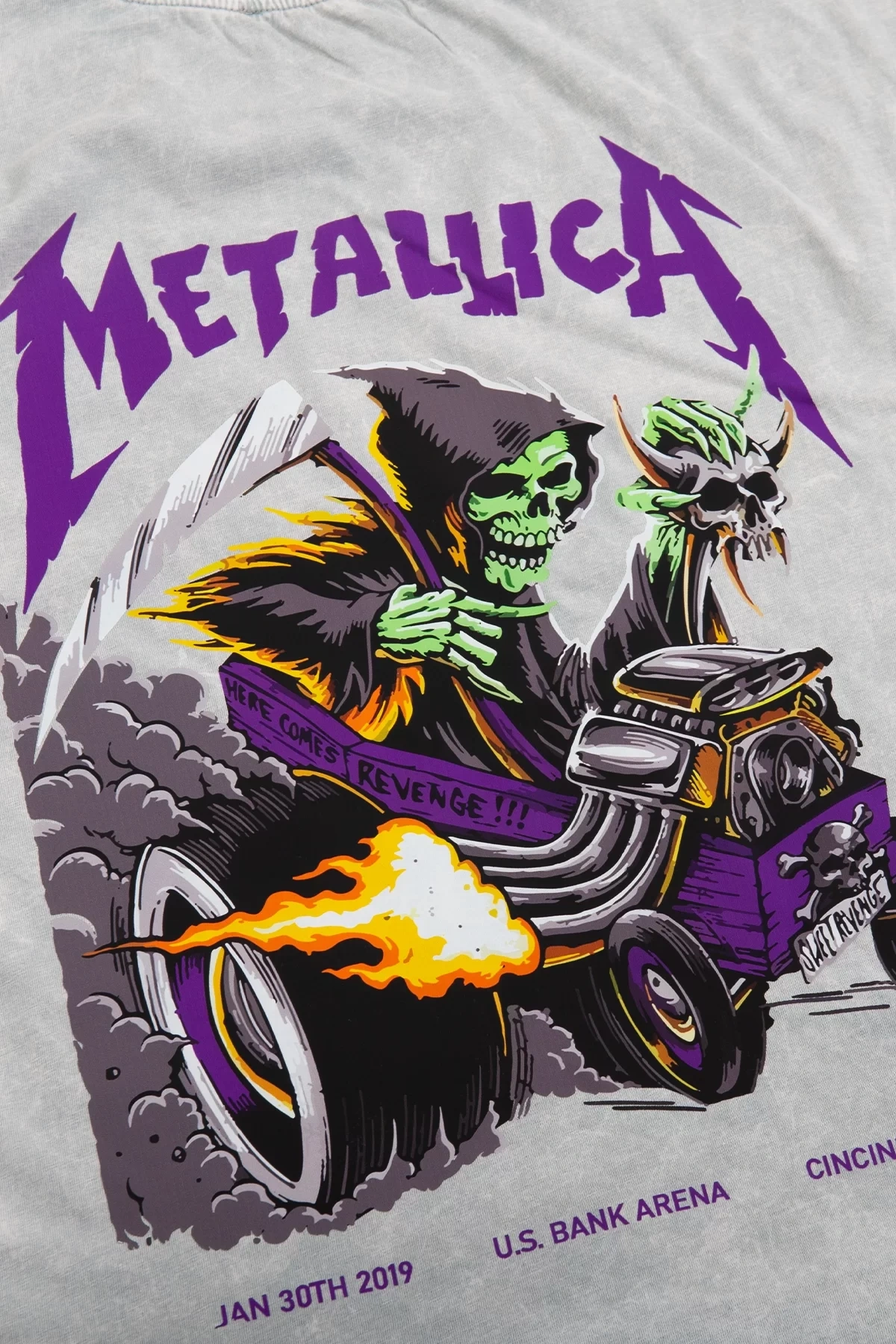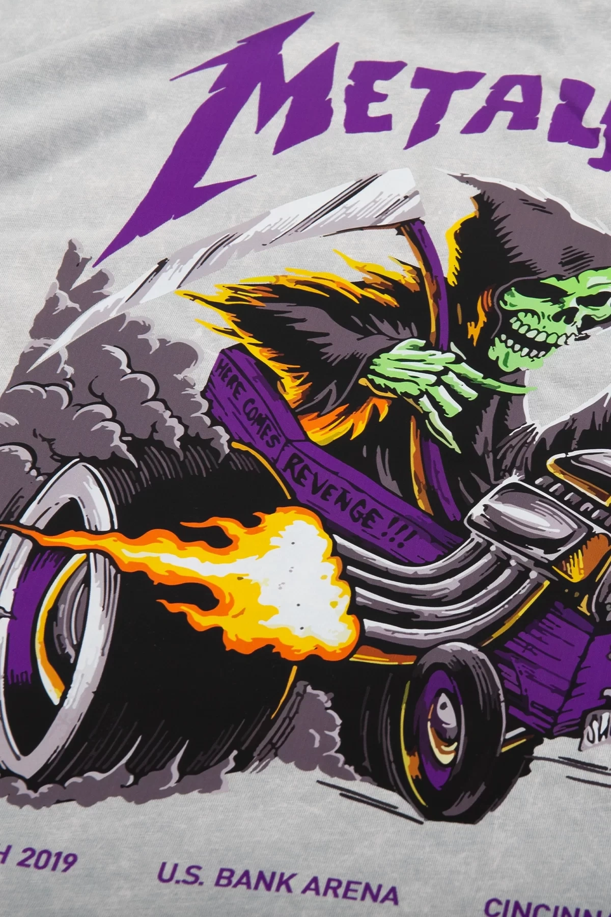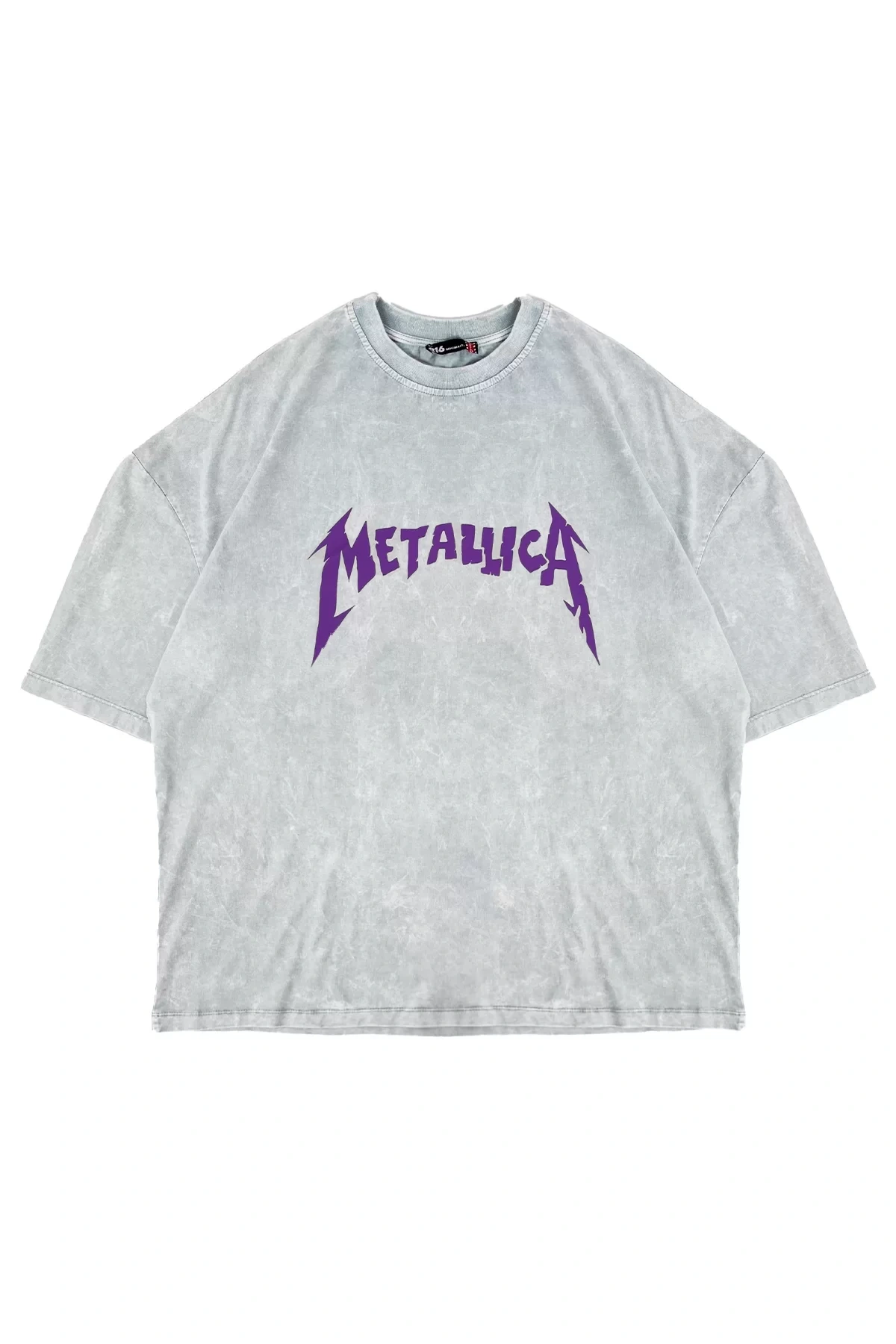 Yıkamalı Beyaz Metallica Mor Sırt Baskılı Beyaz Unisex Oversize Tshirt