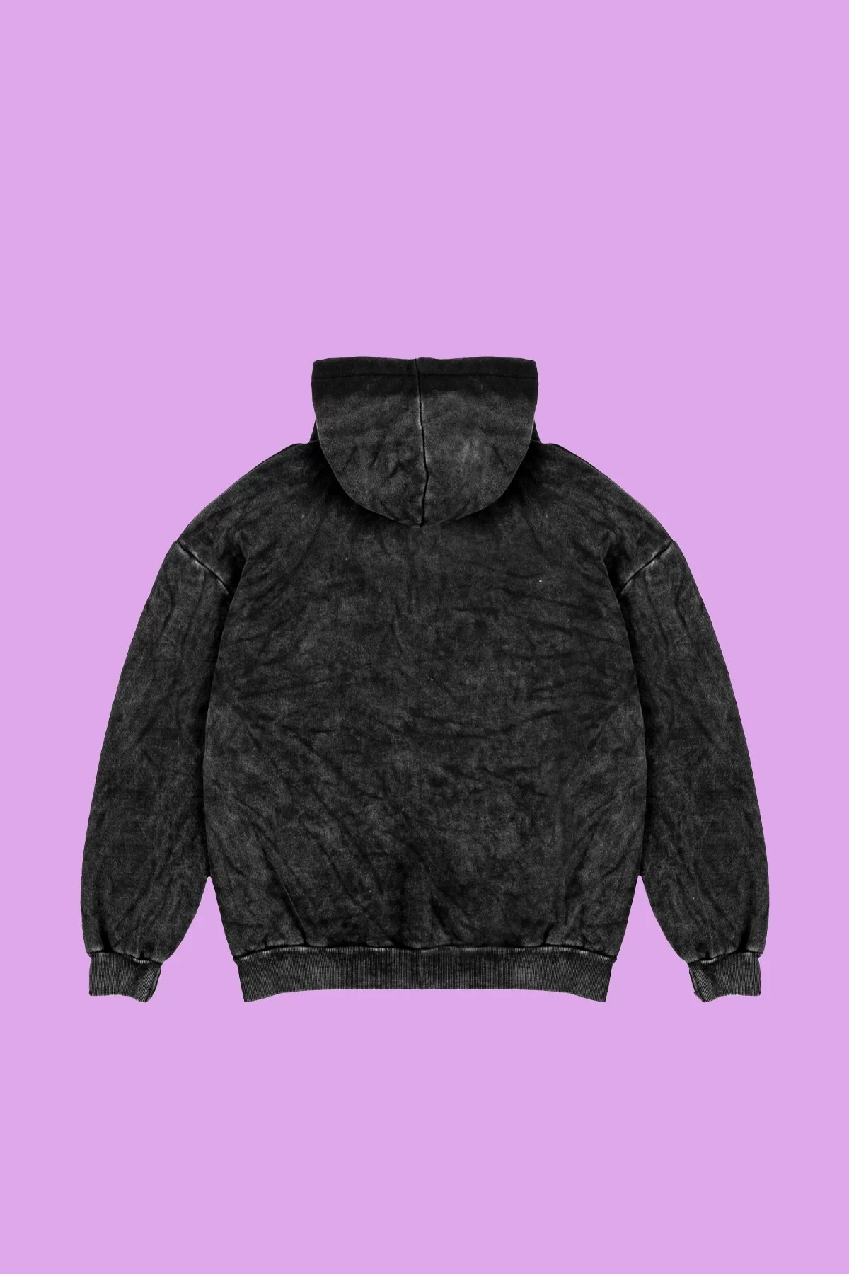 Yıkamalı Siyah Eternal Text Baskılı Oversize Unisex Hoodie