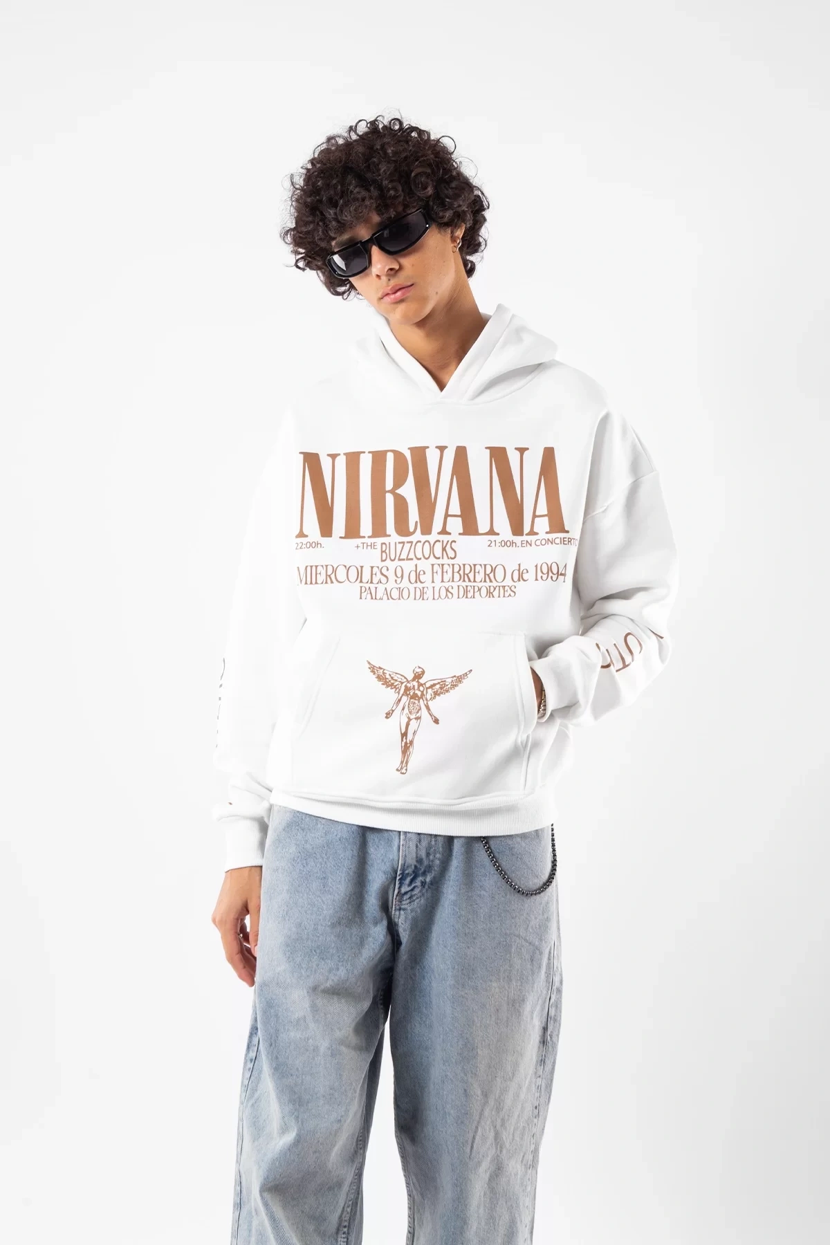 Nirvana Sırt Baskılı Unisex Oversize Beyaz Hoodie