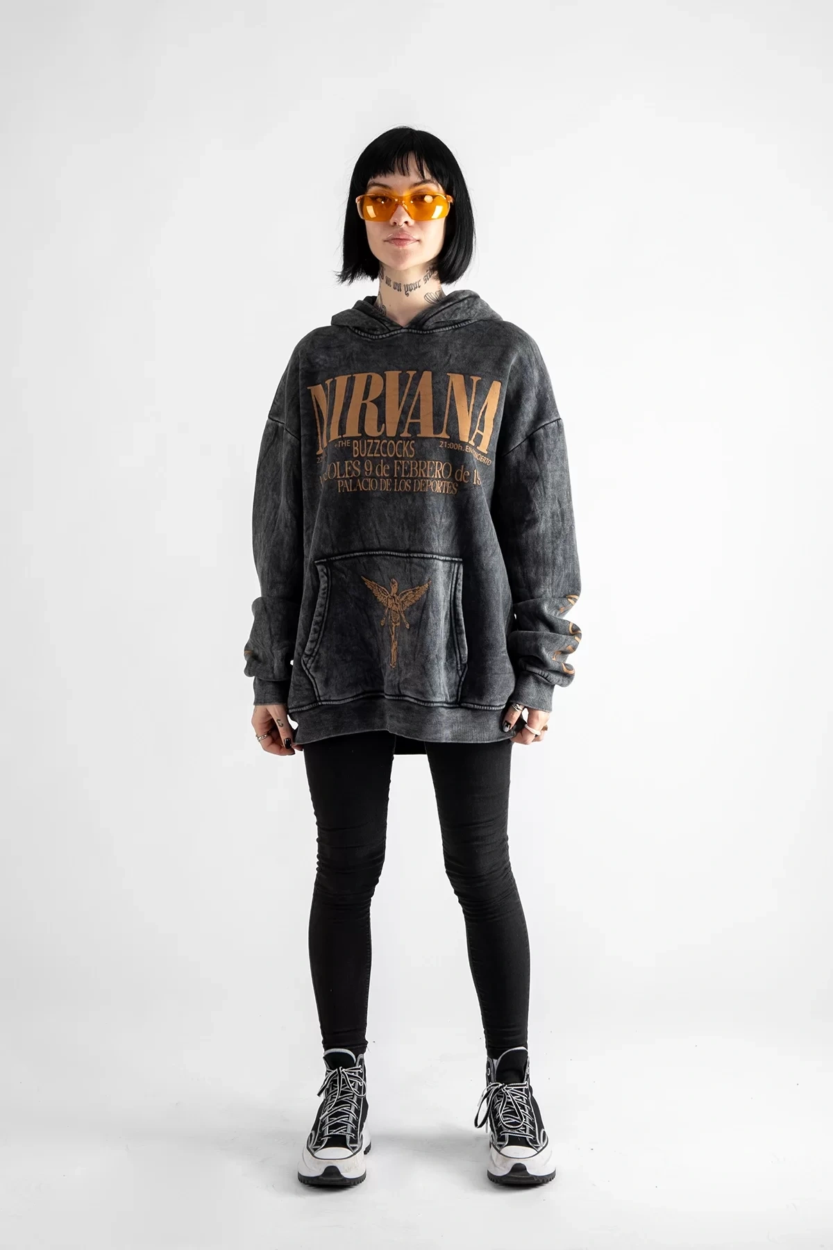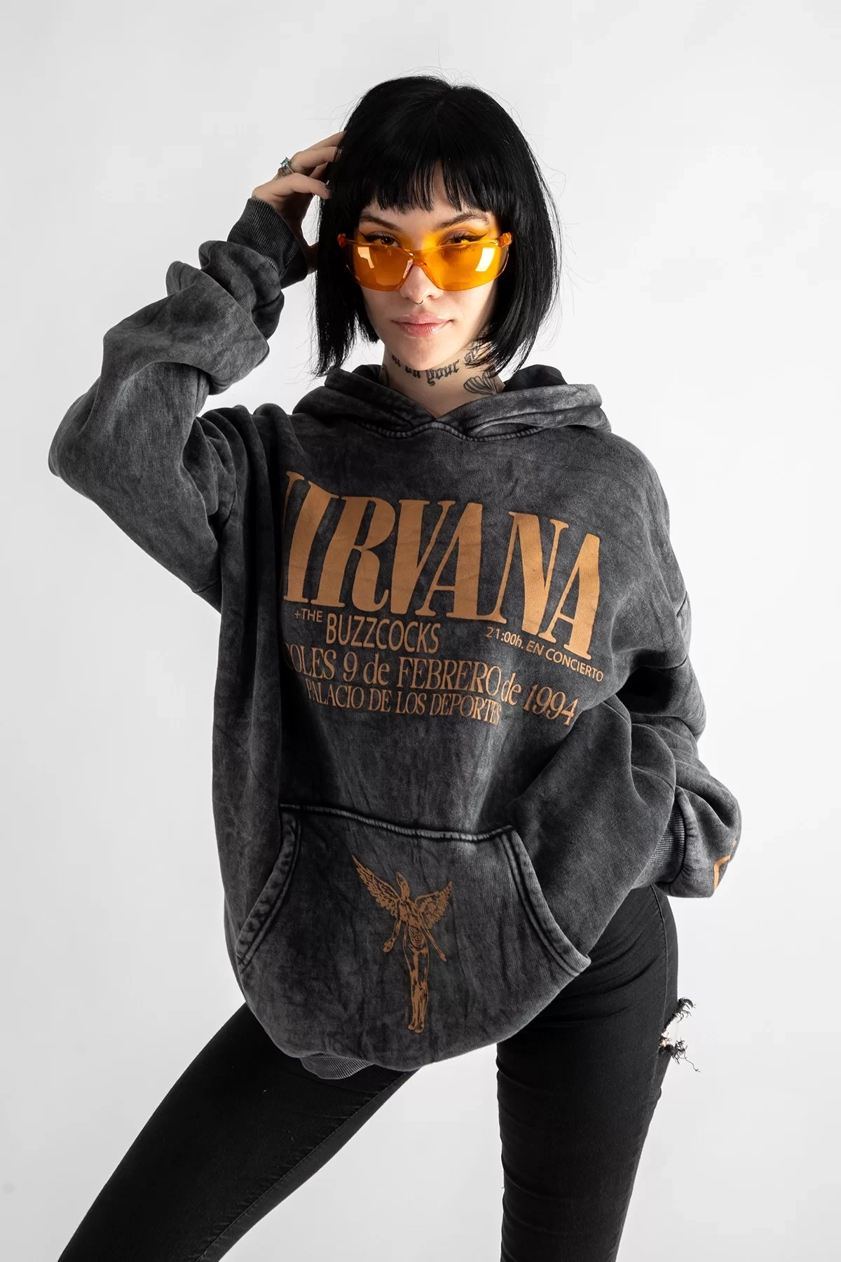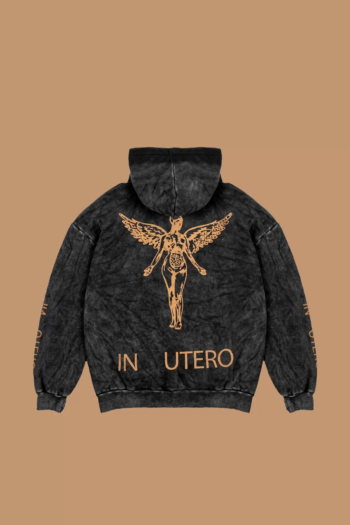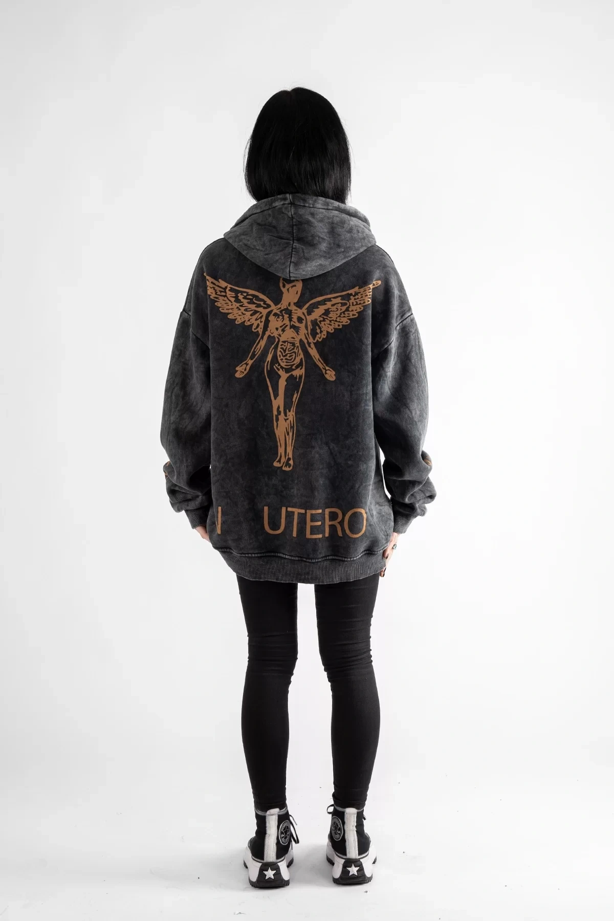 Yıkamalı Siyah Nirvana Sırt Baskılı Unisex Oversize Hoodie