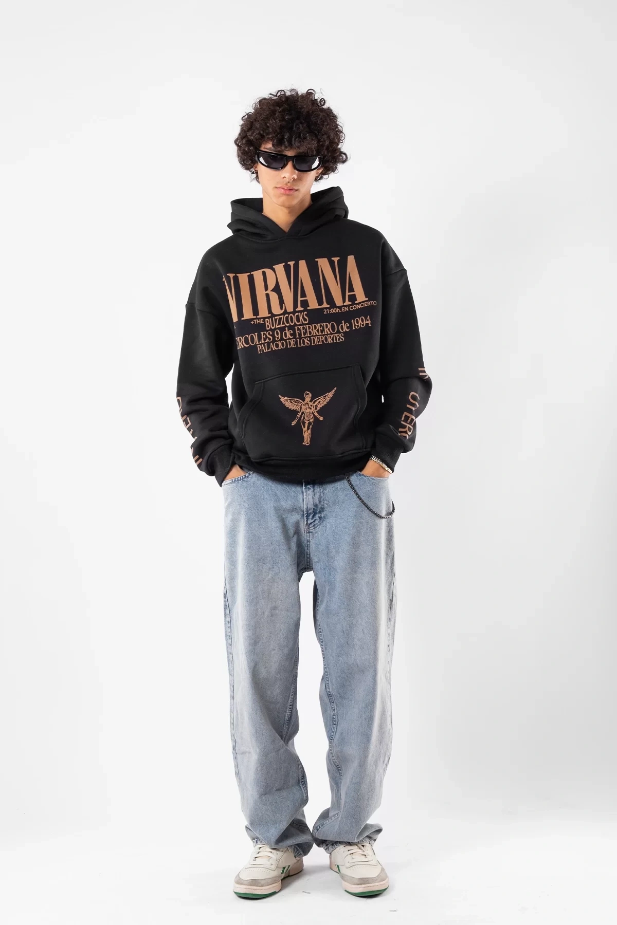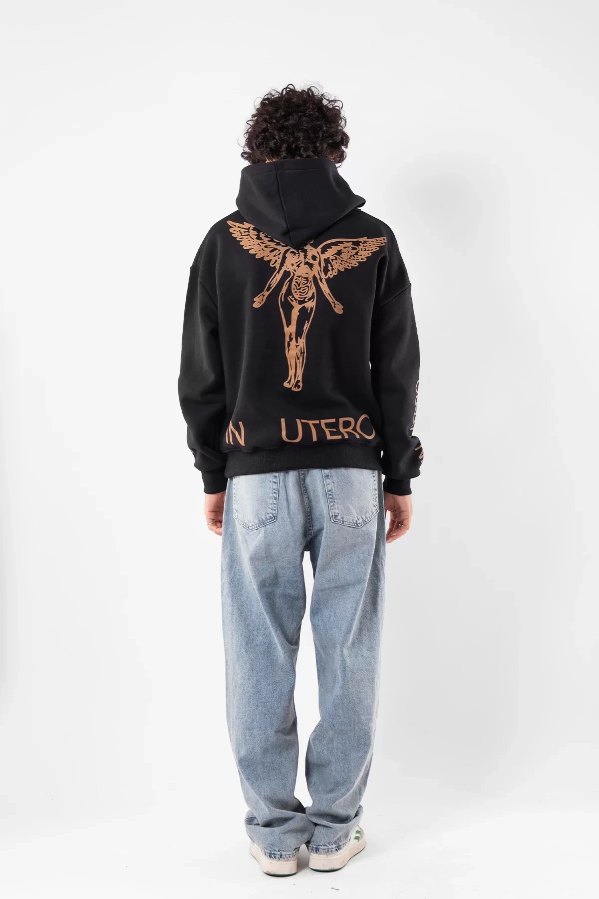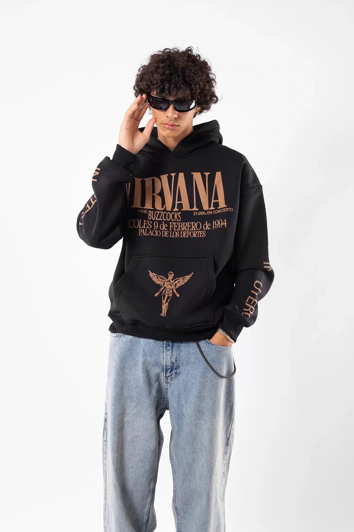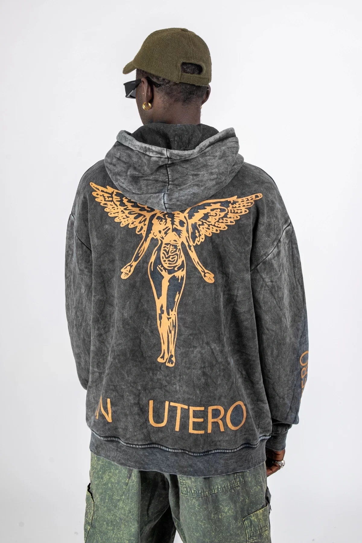 Yıkamalı Siyah Nirvana Sırt Baskılı Unisex Oversize Hoodie