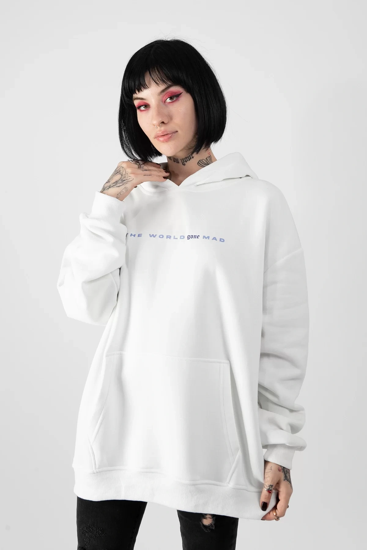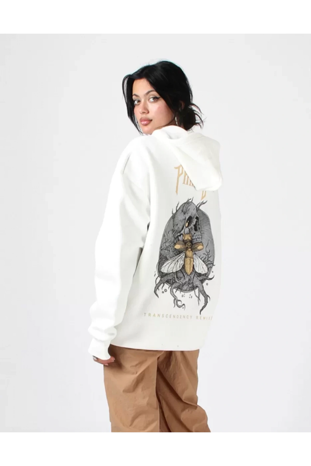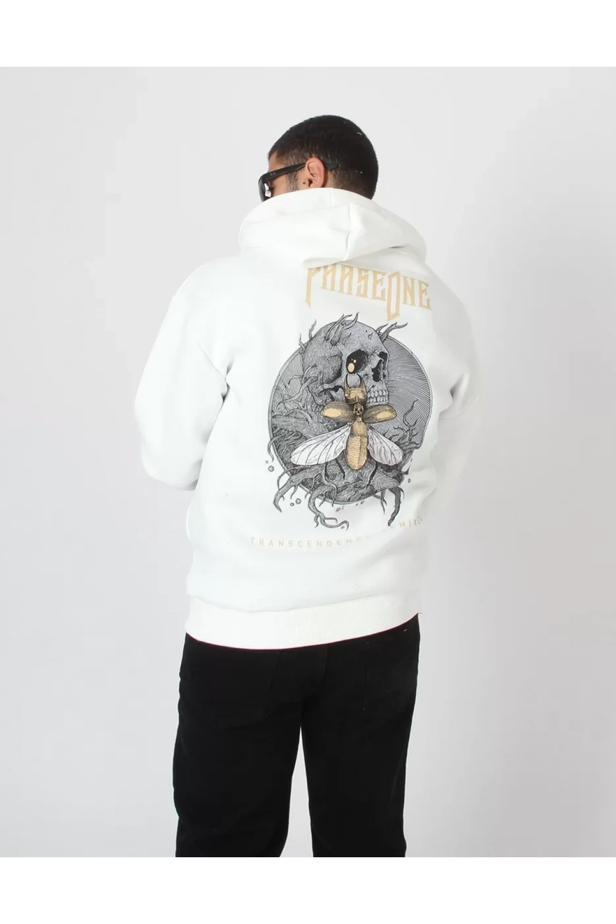 Phobia Sırt Baskılı Unisex Oversize Beyaz Hoodie