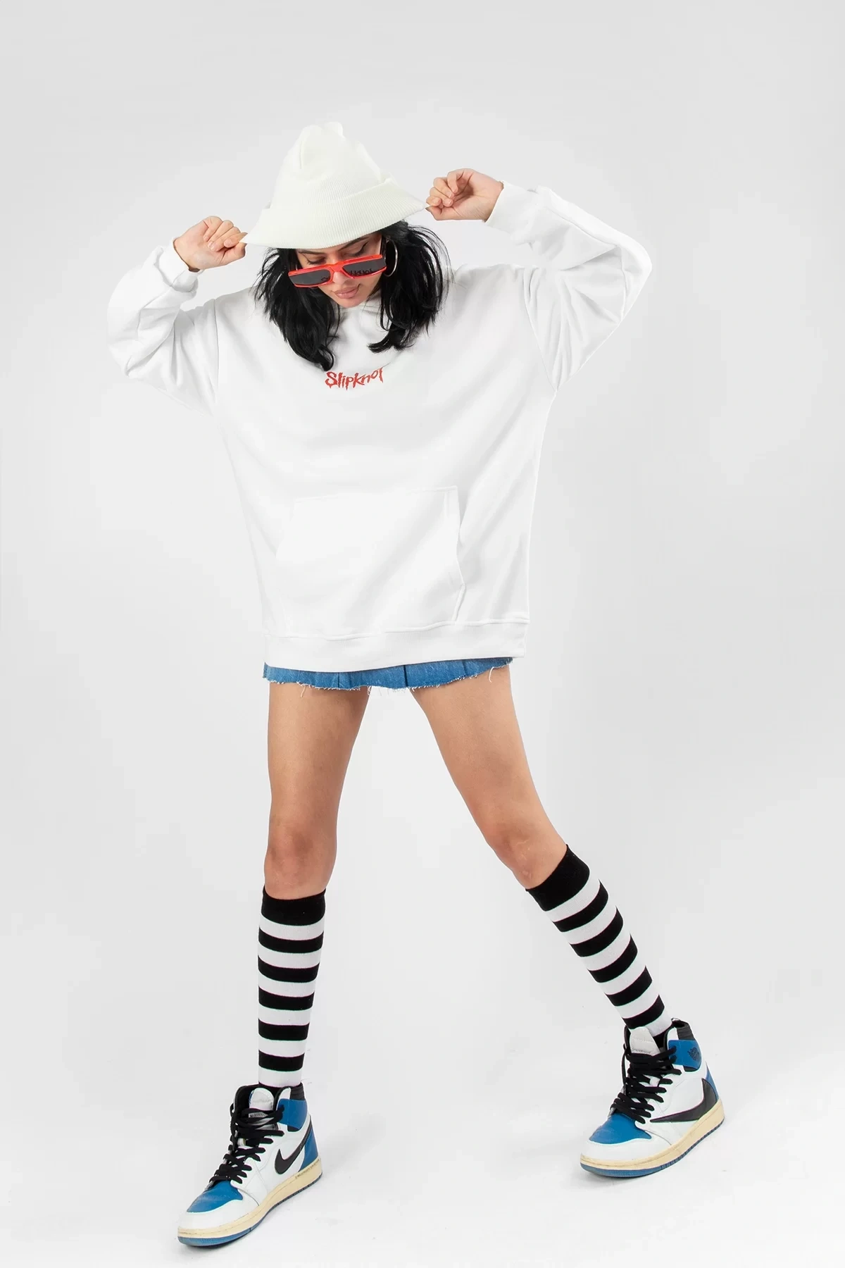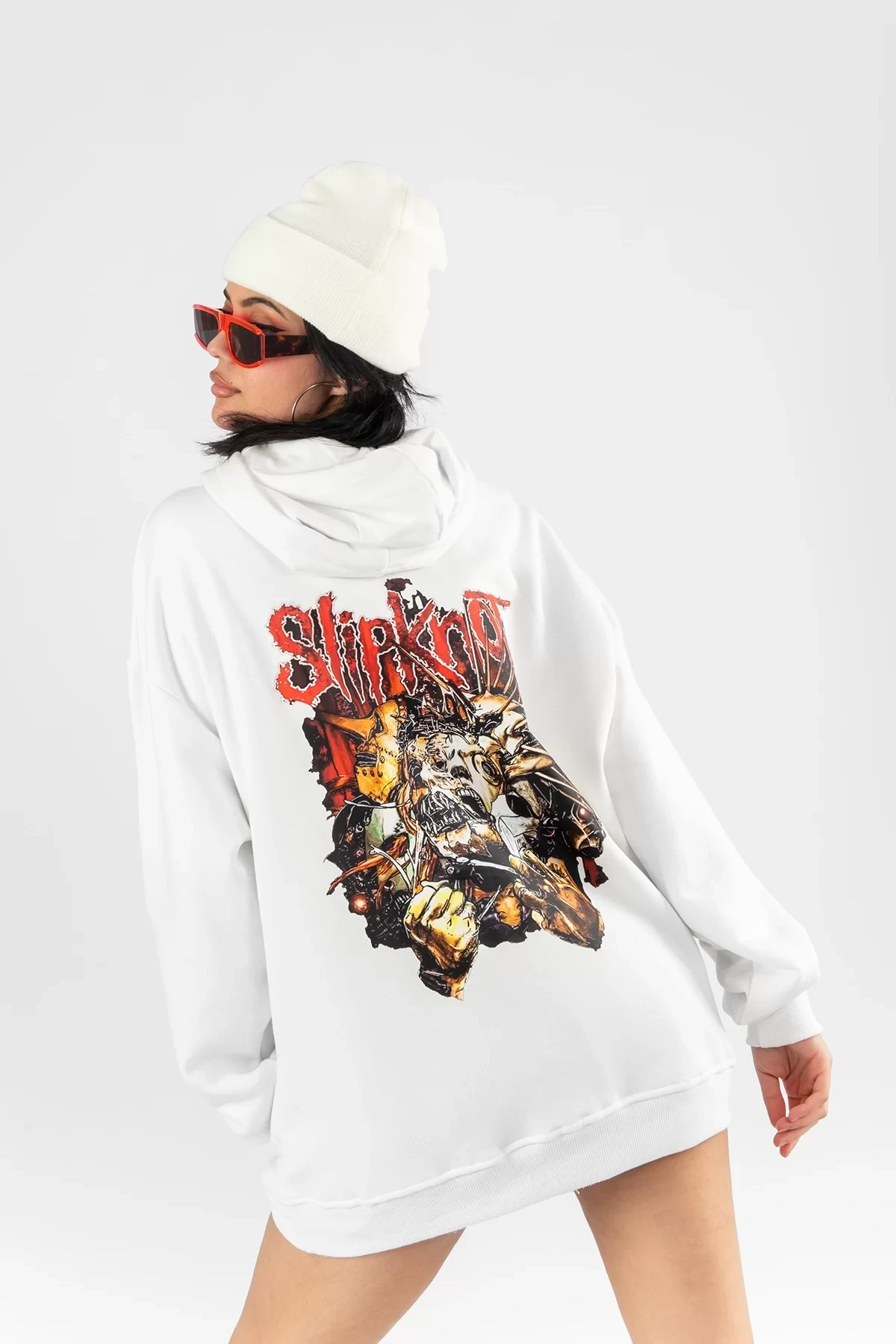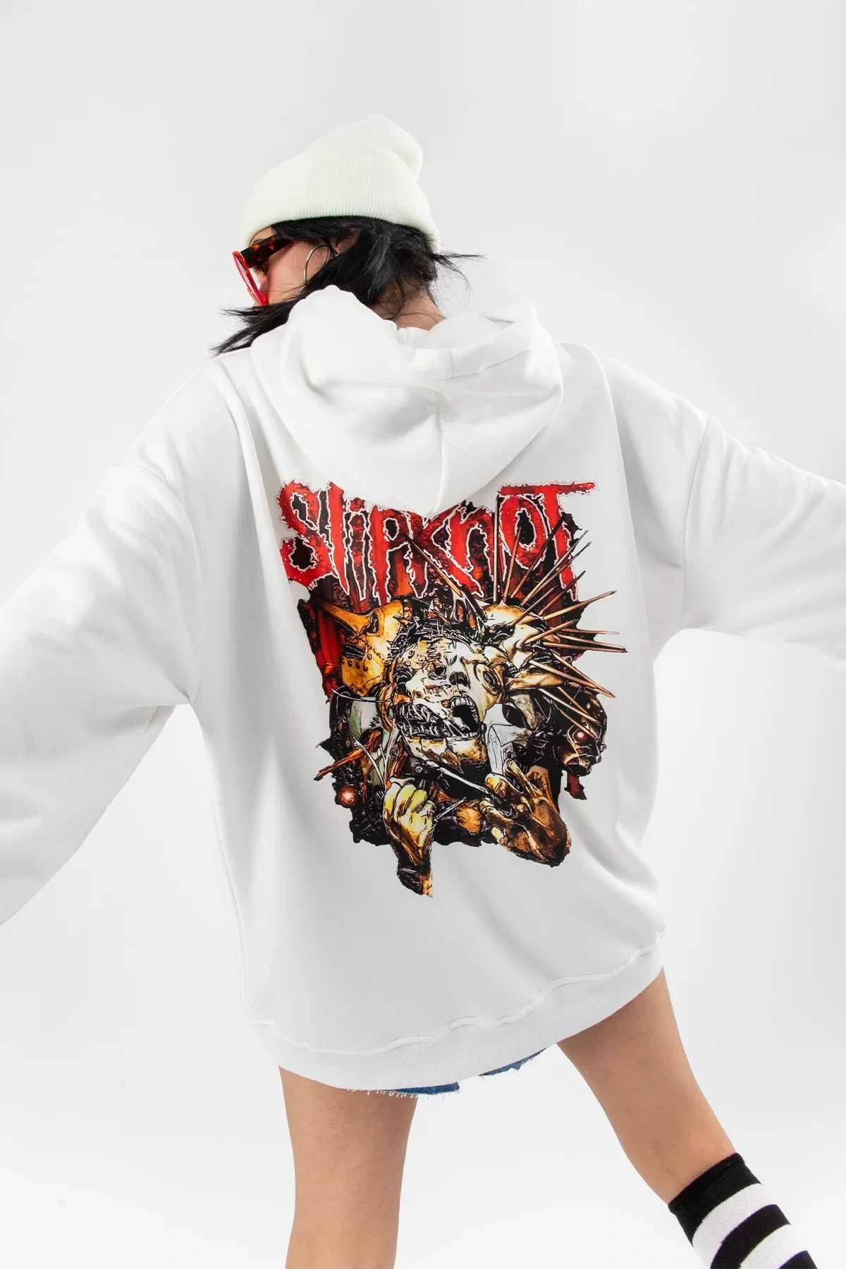 Slipknot Sırt Baskılı Beyaz Oversize Unisex Hoodie