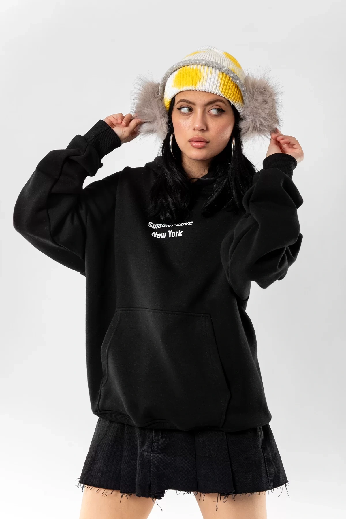Summer Love Sırt Baskılı Oversize Unisex Siyah Hoodie