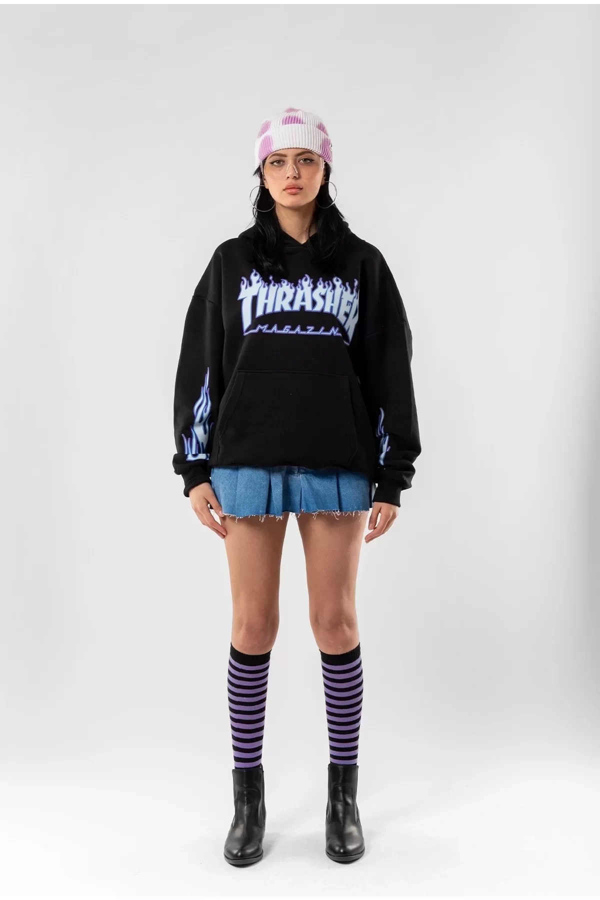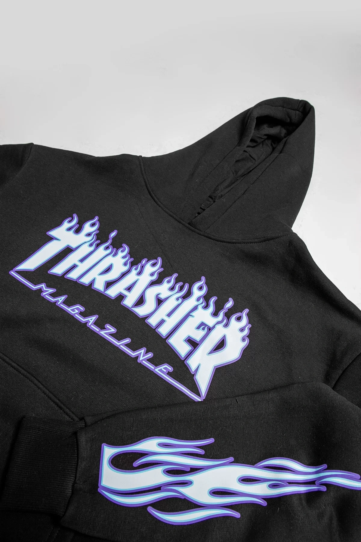 Thrasher Flam Baskılı Oversize Unisex Siyah Hoodie