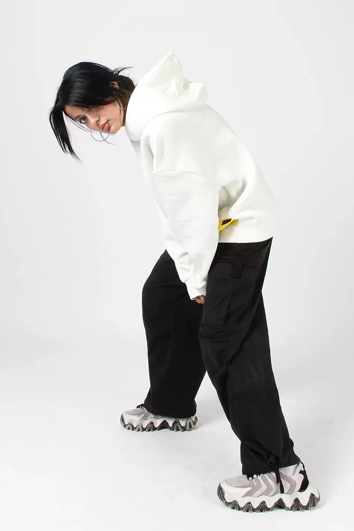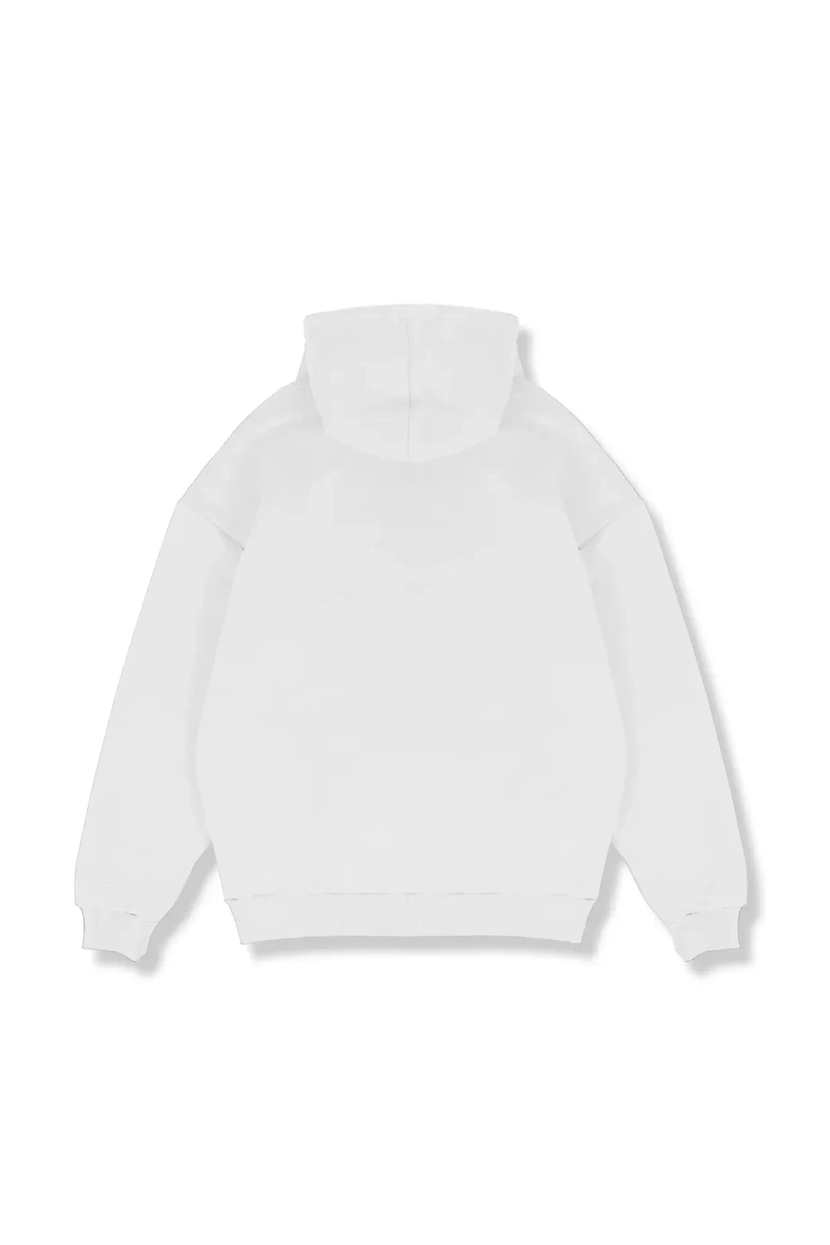 Yıkamalı Beyaz Basic Oversize Unisex Hoodie